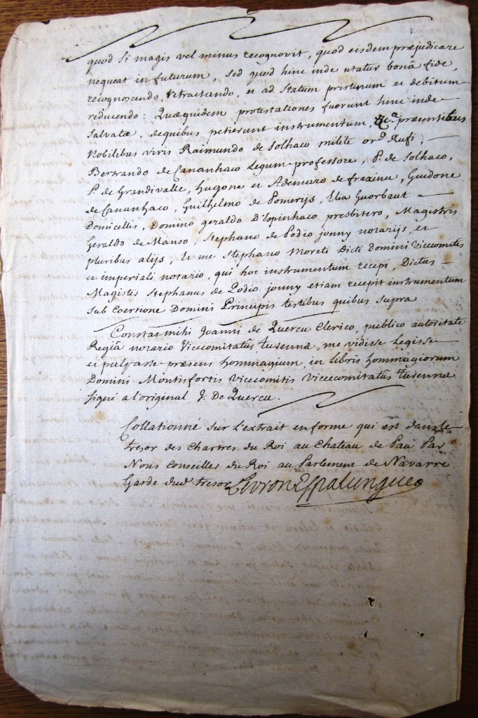 Hommage de Hugues de la Roche, abbé de Terrasson, à Renaud de Pons (1363)