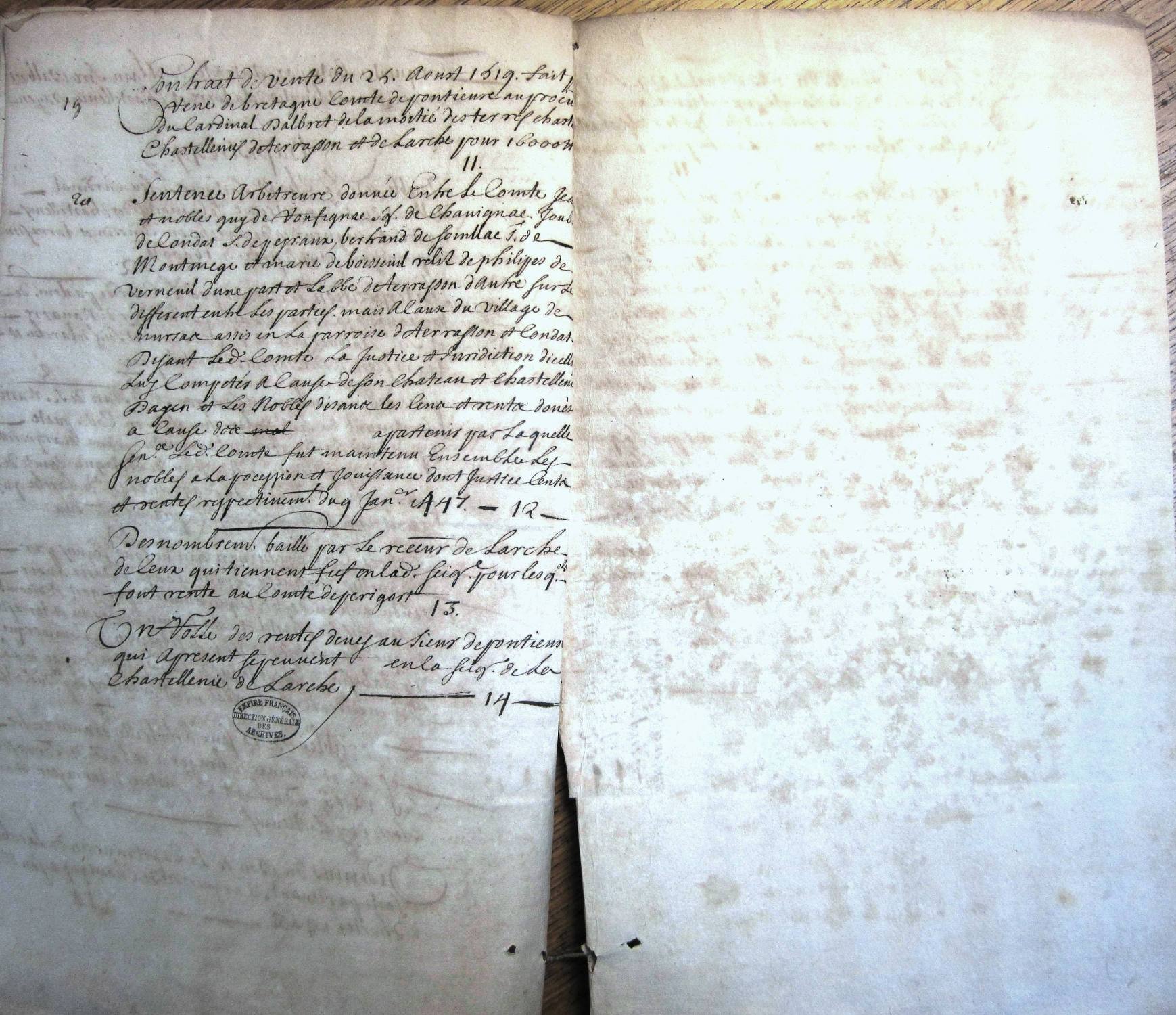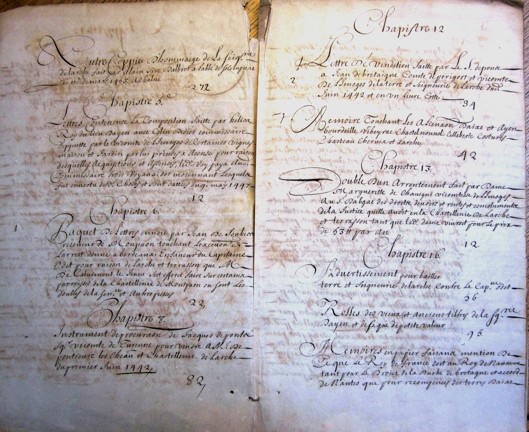 Inventaire au chateau de Navarre des titres concernant les châtellenies d'Ayen et de Larche pour M. le duc de Noailles.