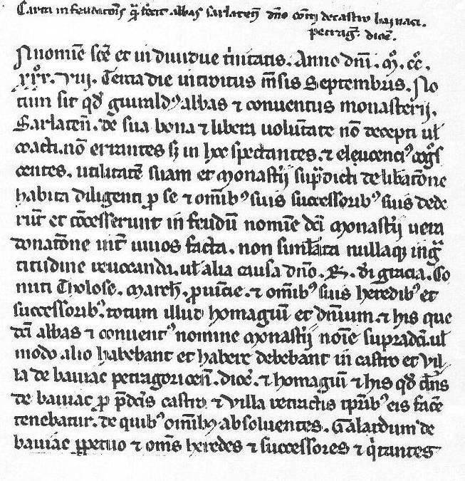 Carta infeudationis quam fecit abbas Sarlatensis domino Comiti de castro Bainaci (Petrag. dioces.)