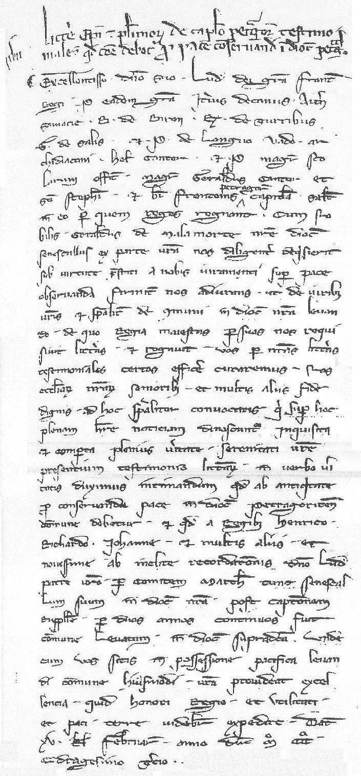 Richardo, Johanne et multis aliis et / novissime ab inclite recordationis domino Ludovico / parte vestra per comitem Marchiae tunc senescal- / -lum suum in diocese nostra post captionem /