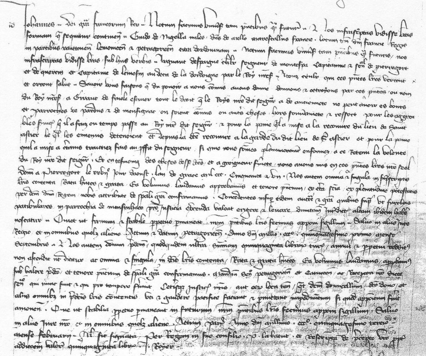 regio in omnibus quolibet alieno. Actum et datum Petragoricens., anno domini millesimo CCC° quinquagesimo primo mense