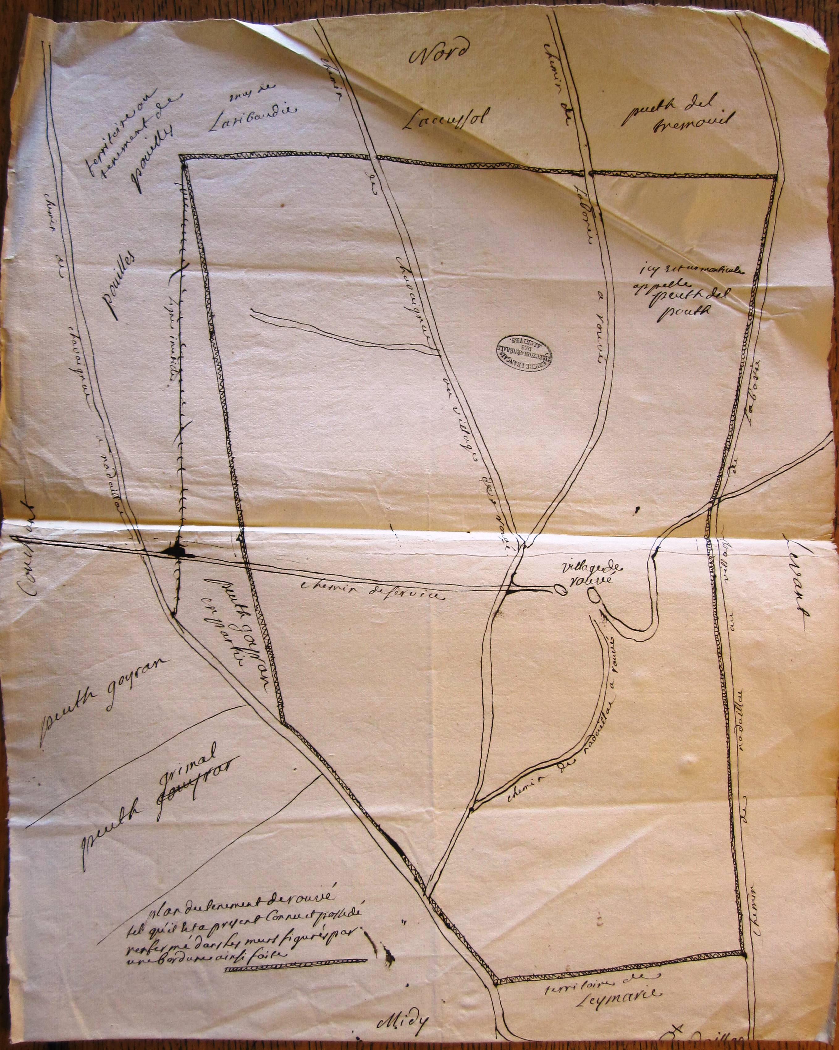 N. B. : seule la carte suivante est reproduite ici, sans les documents qui l'accompagnent. Nous prions le lecteur de se reporter au dossier des Arrchives Nationales pour consultation de ces documents.