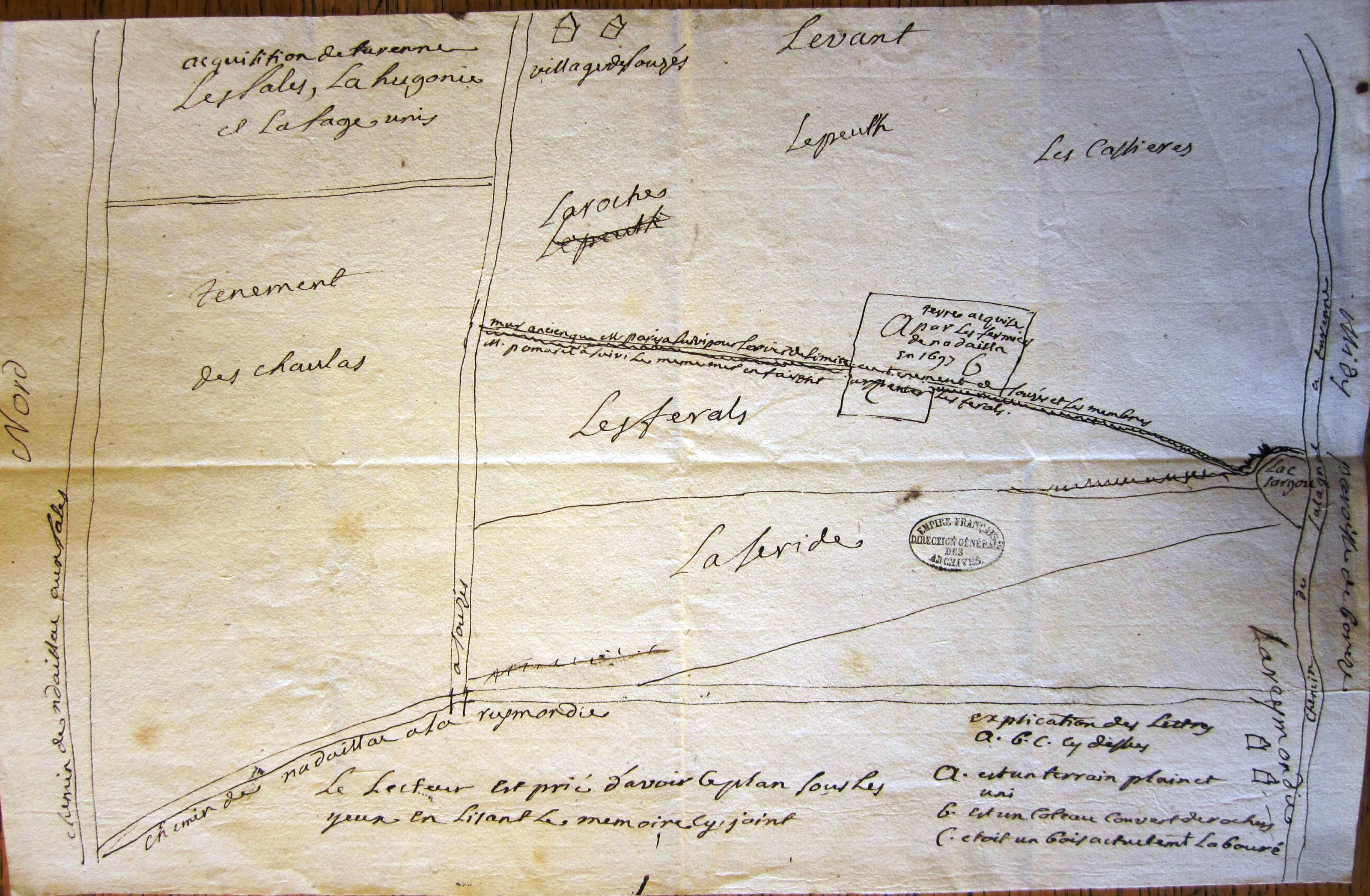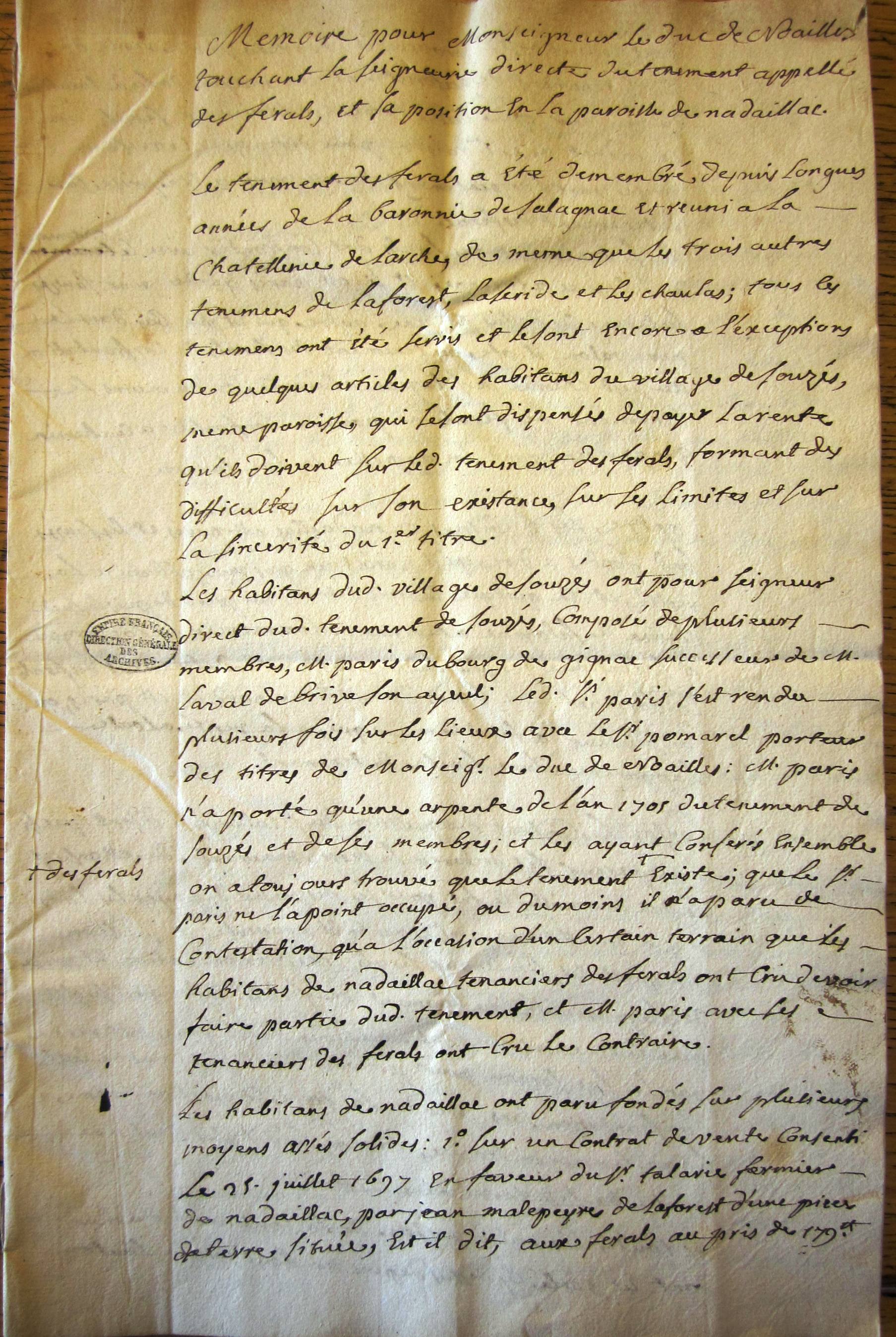 Mémoire (18ème - avec carte) sur le ténement des Ferals dans la parroisse de Nadaillac.