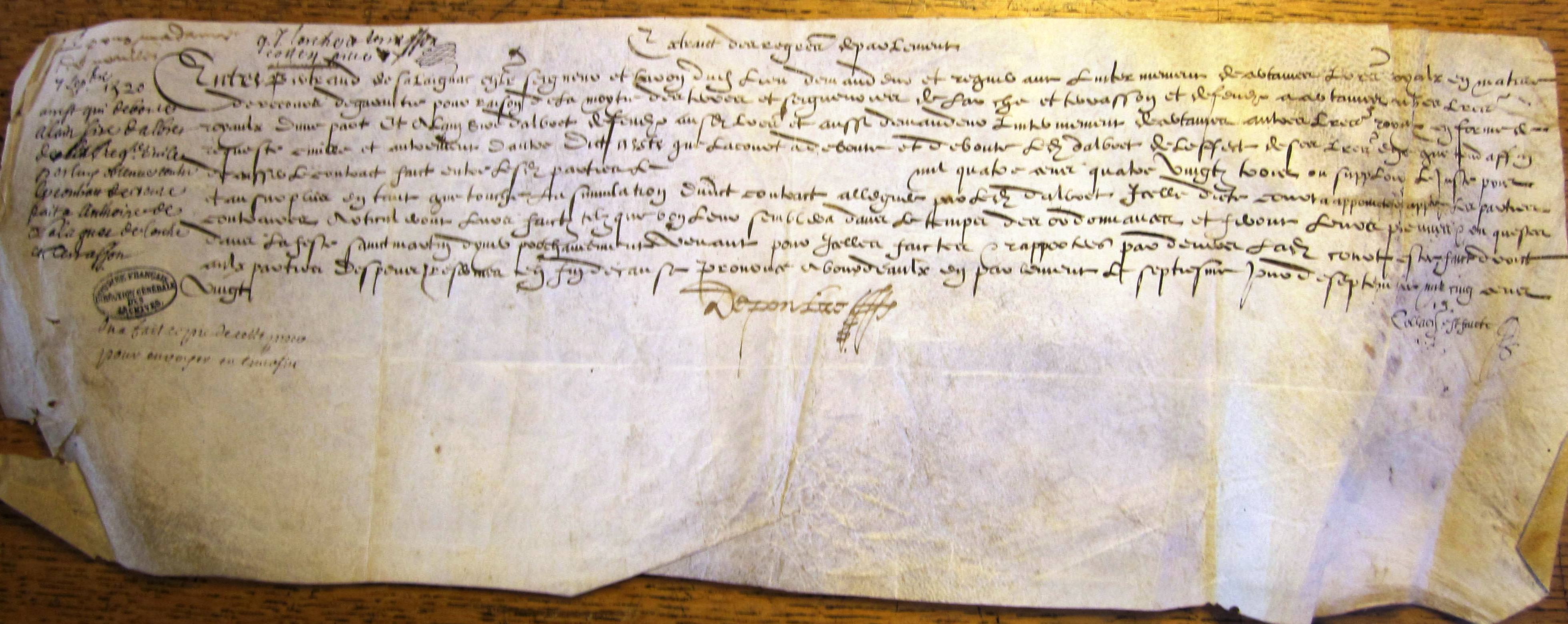 Arrêt du Parlement de Bordeaux en faveur de Bertrand de Salaignac contre Alain d'Albret (7 sept. 1520).