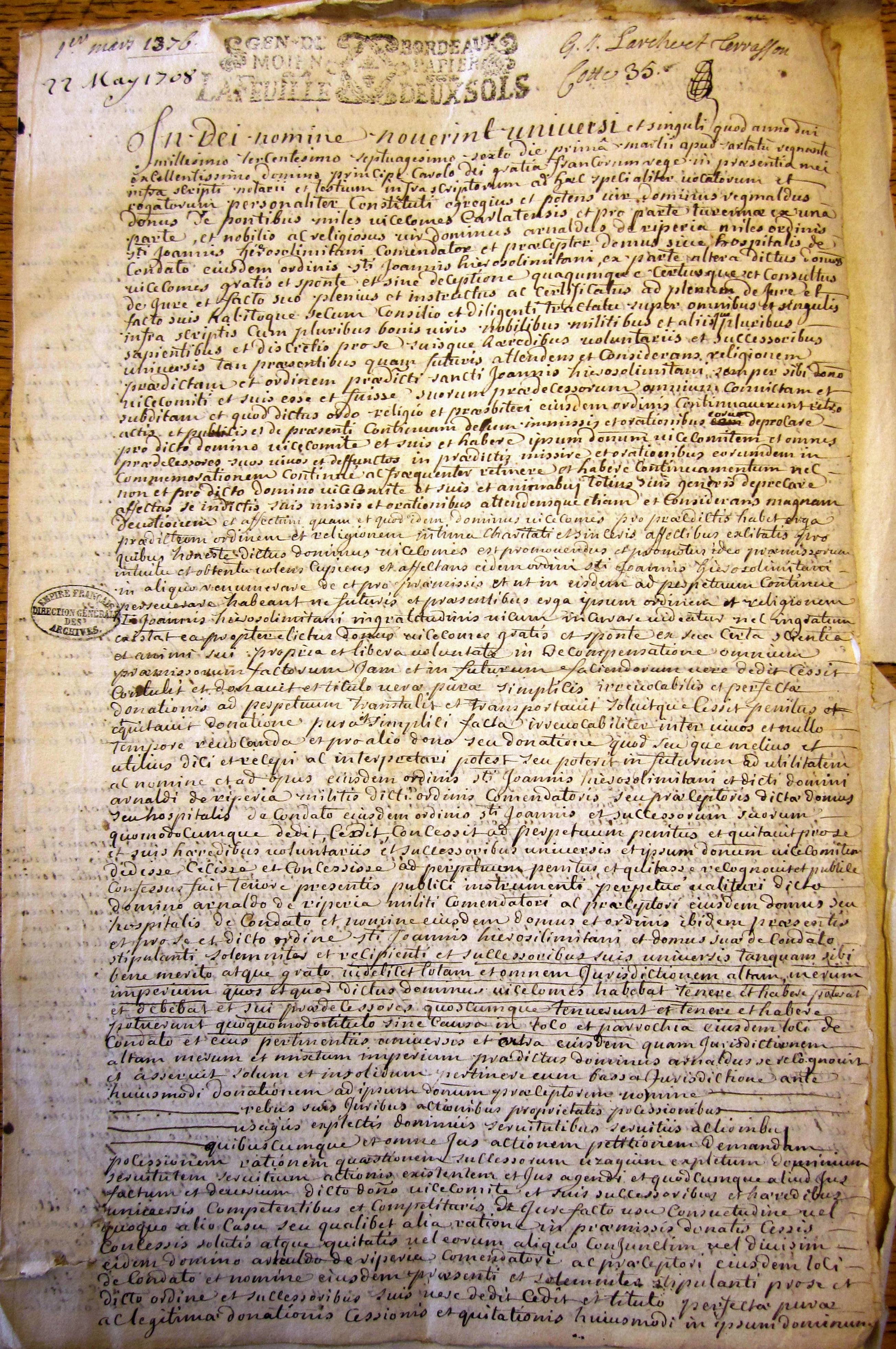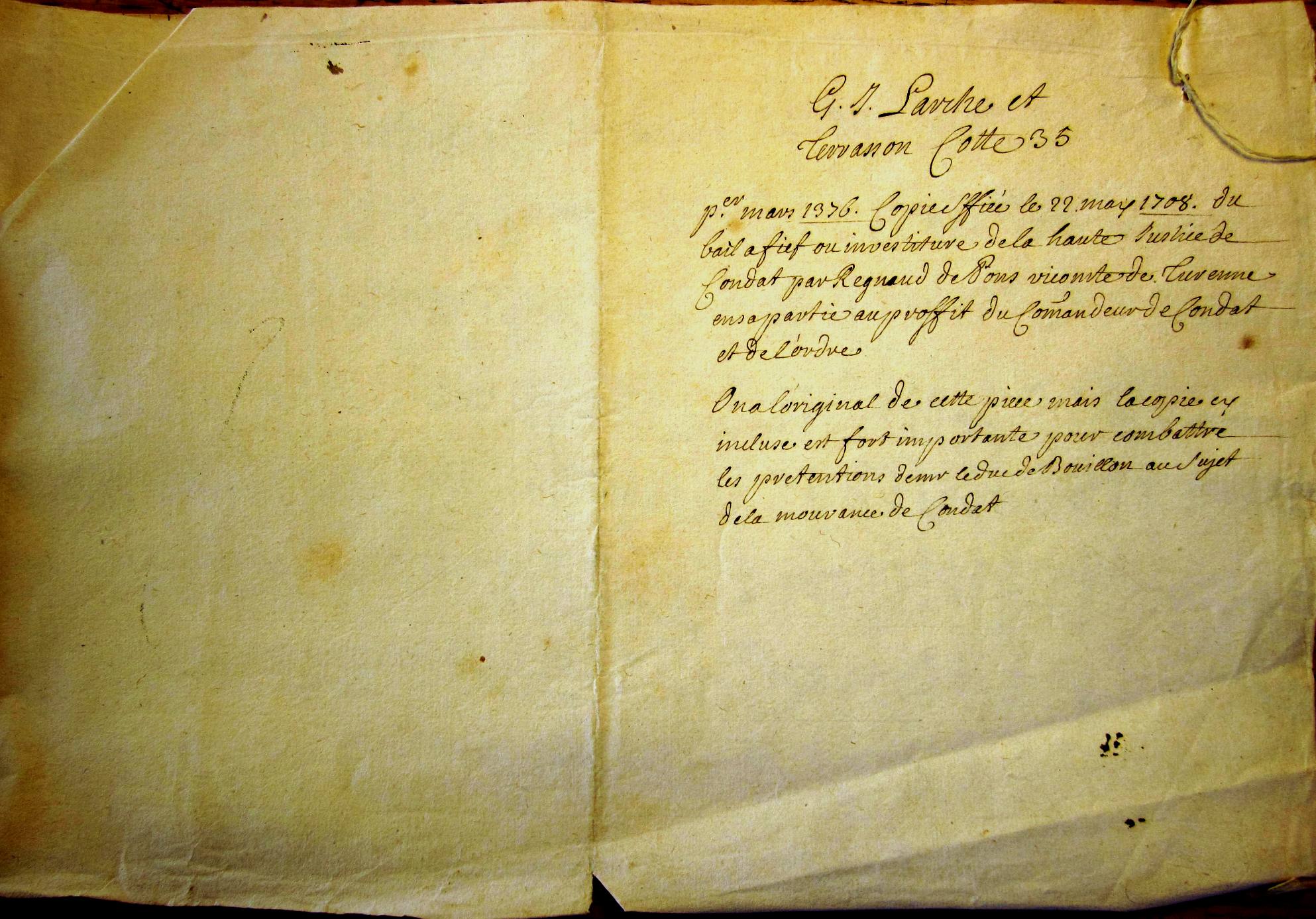 Bail à fief de la haute justice de Condat accordé par Renaud VI de Pons en faveur du commandeur de Condat (1376)