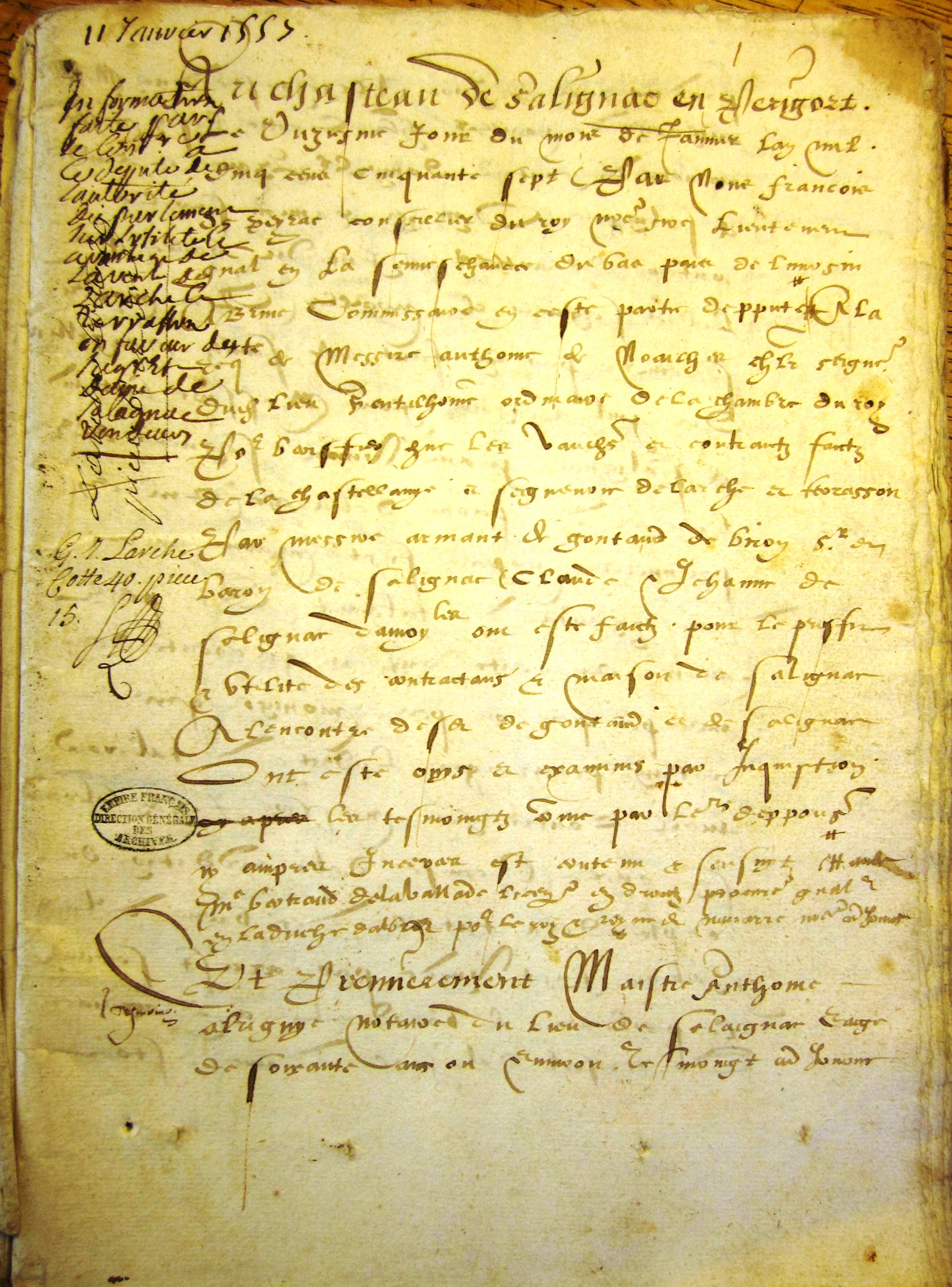 Information du Parlement de Bordeaux sur la vente de Larche et Terrasson (11 janvier 1557 (v. st.))