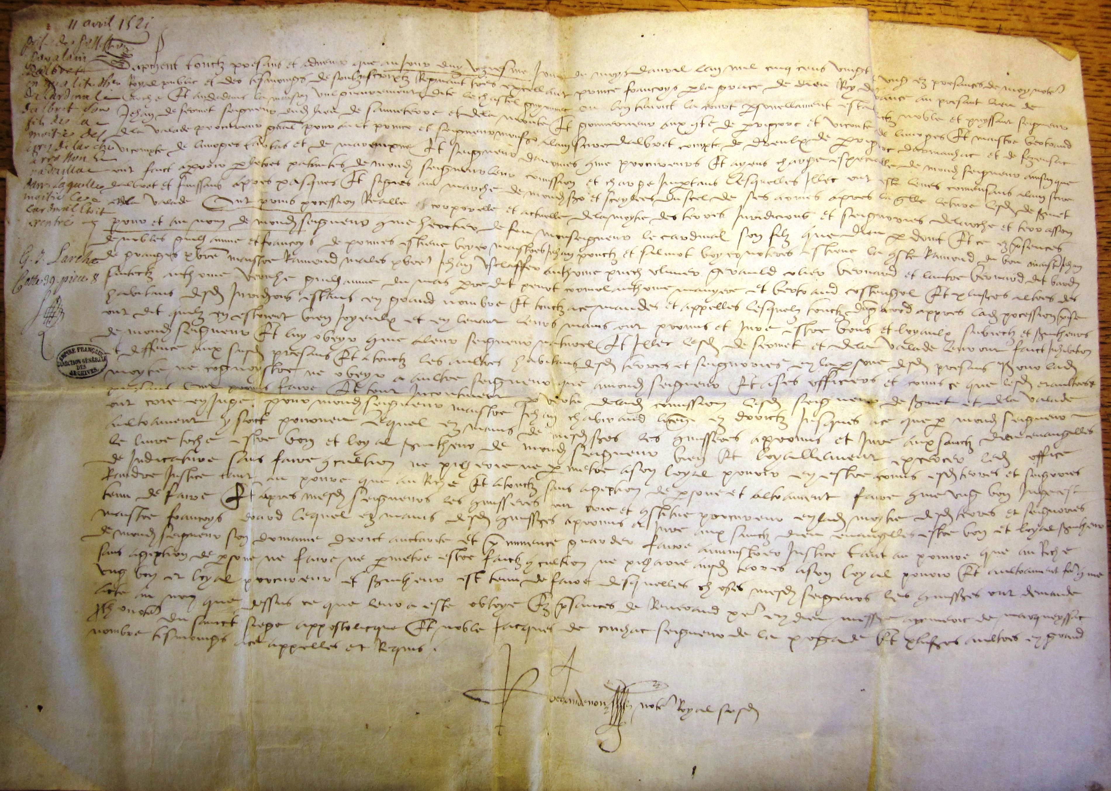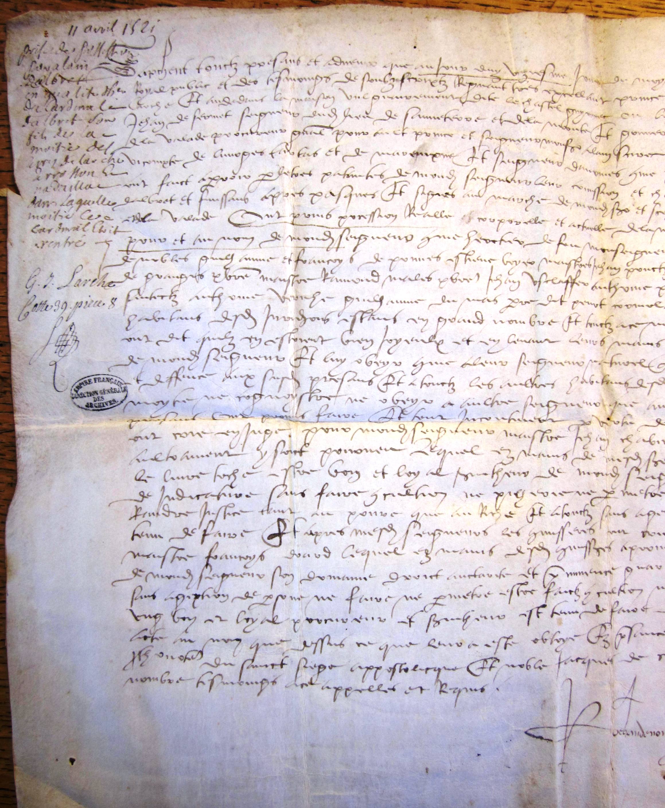 Acte de prise de possession de la portion de la terre de Larche par le Alain d'Albret (11 avril 1521)