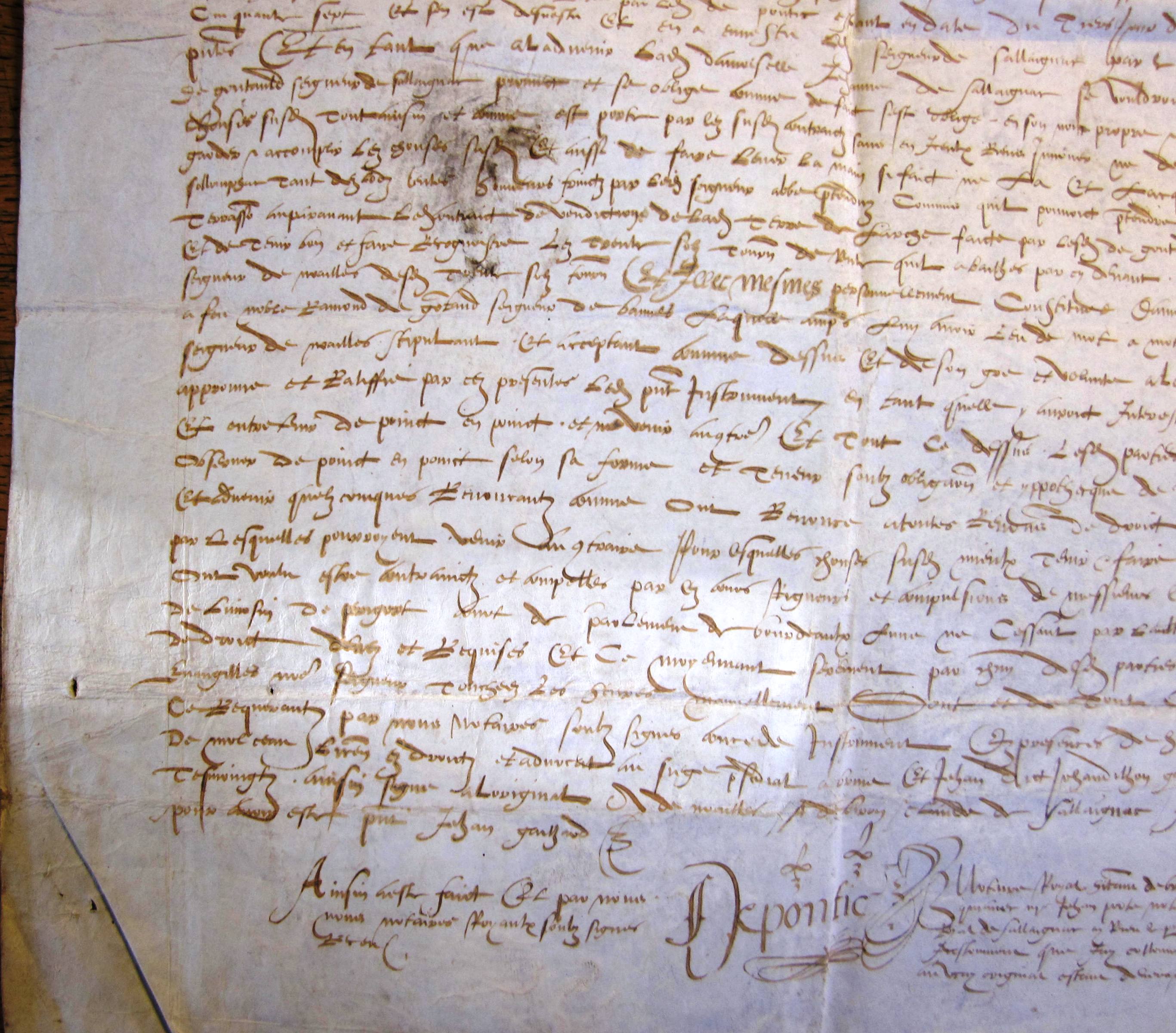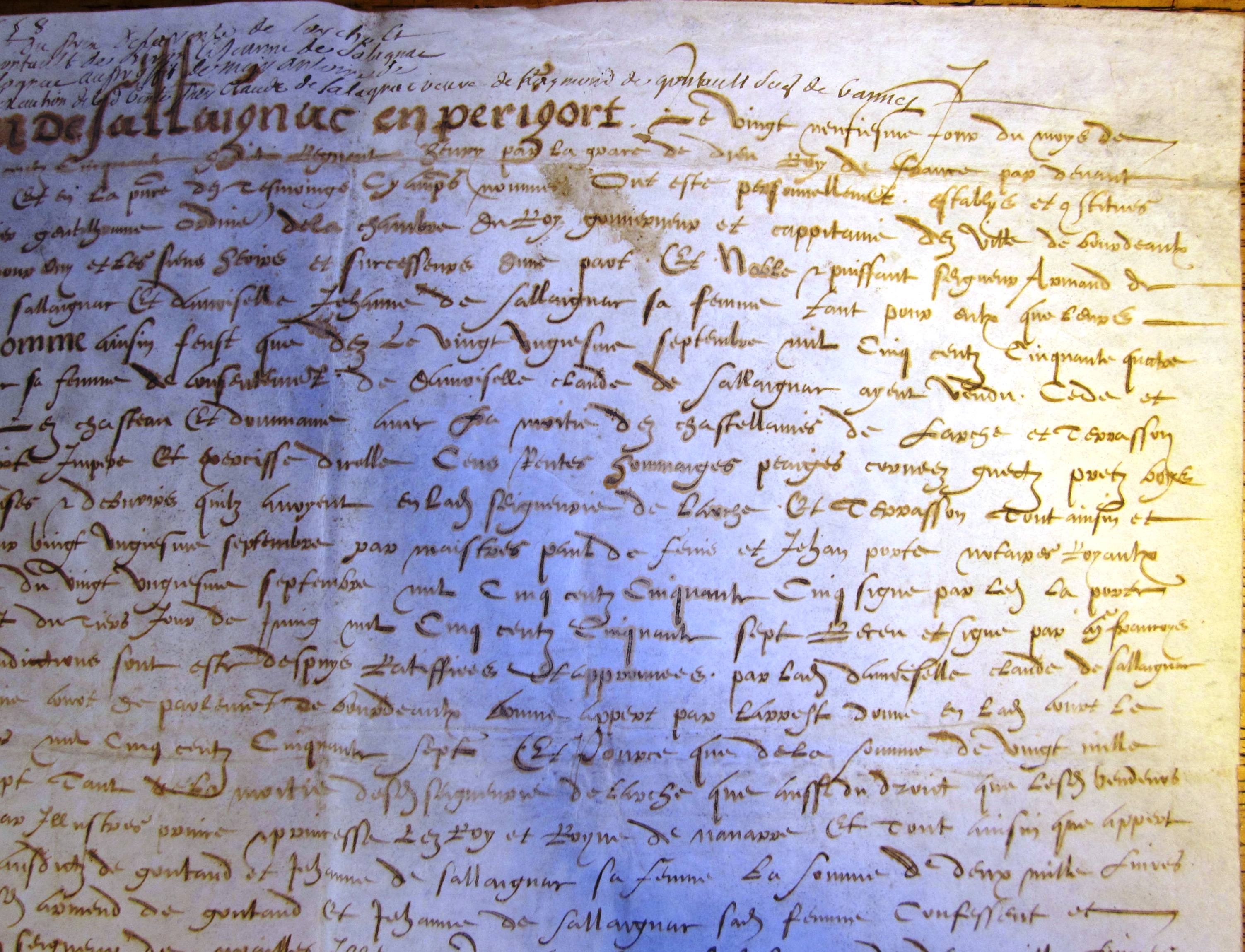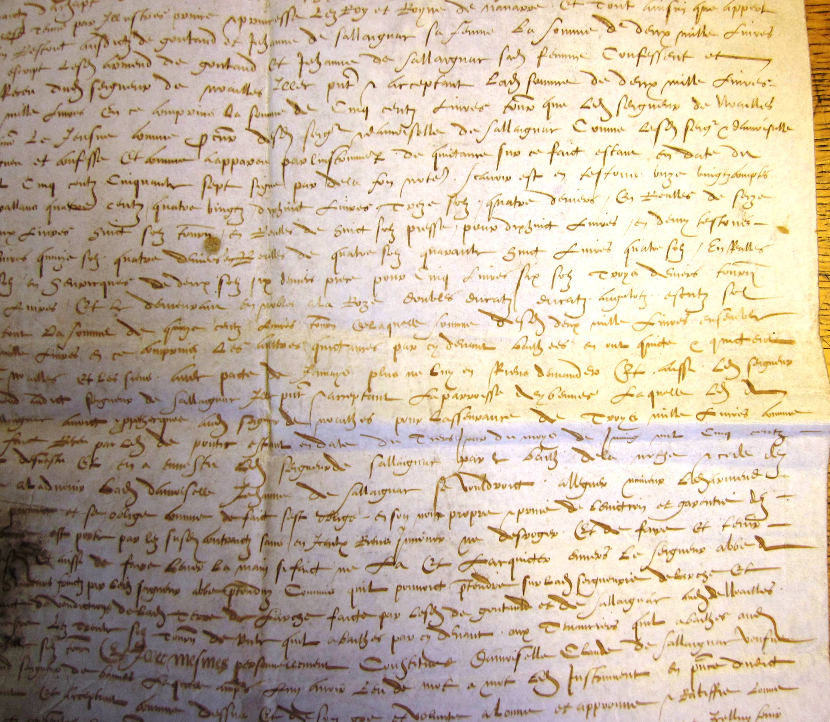 Quittance générale des 20.000 livres payées par Antoine de Noailles pour le prix de l'acquisition de Larche (29 mars 1558) (mss. original, parchemin)