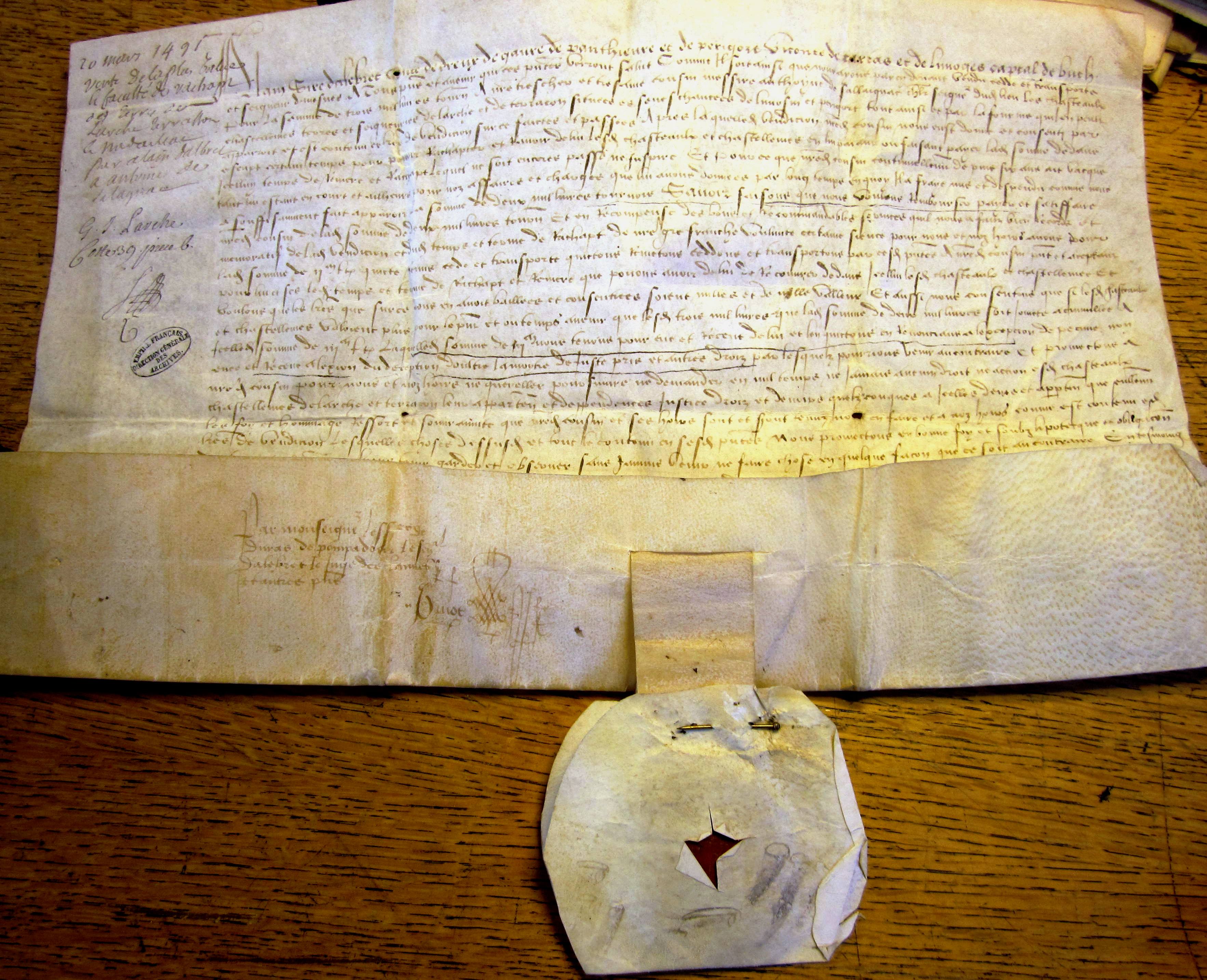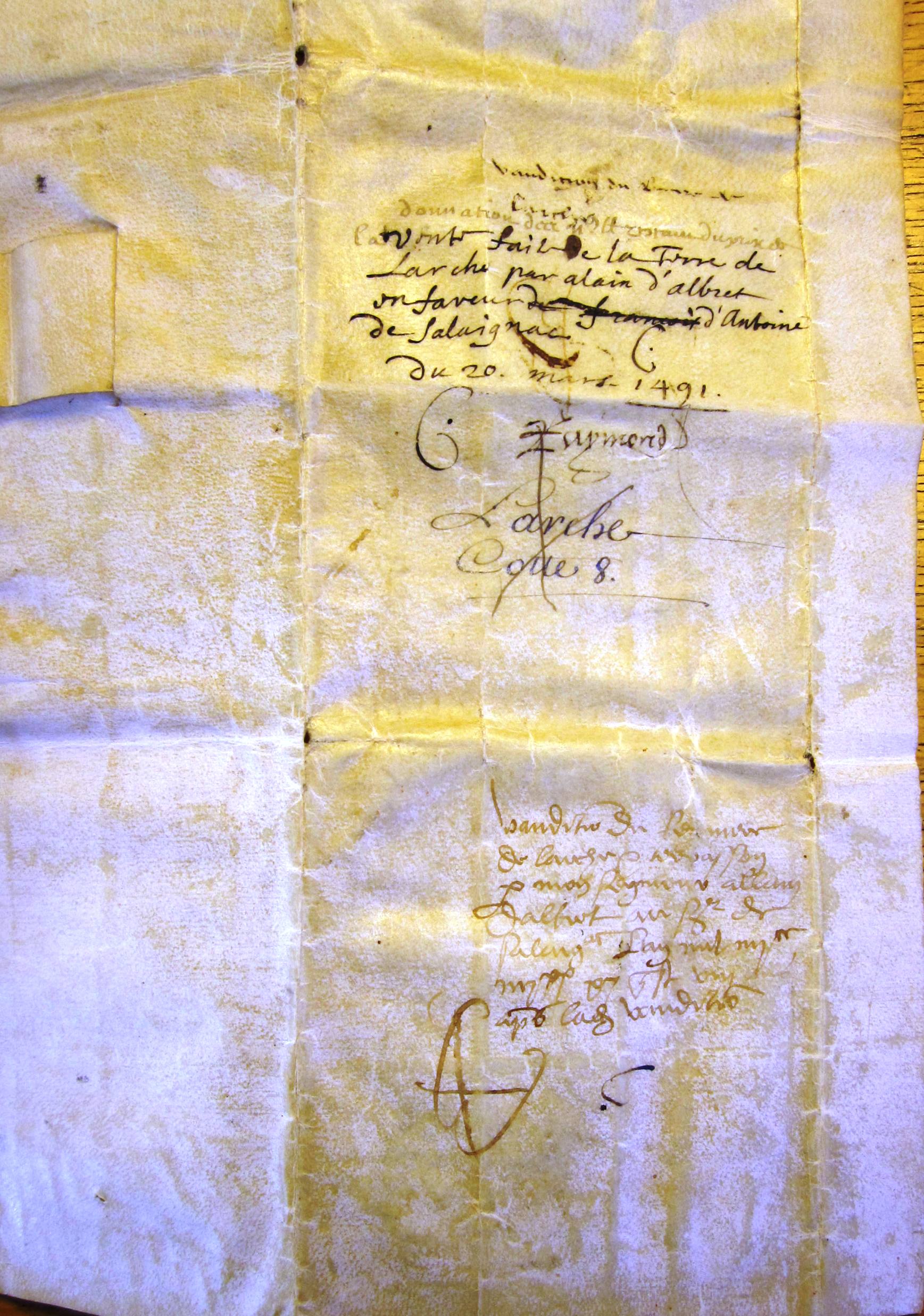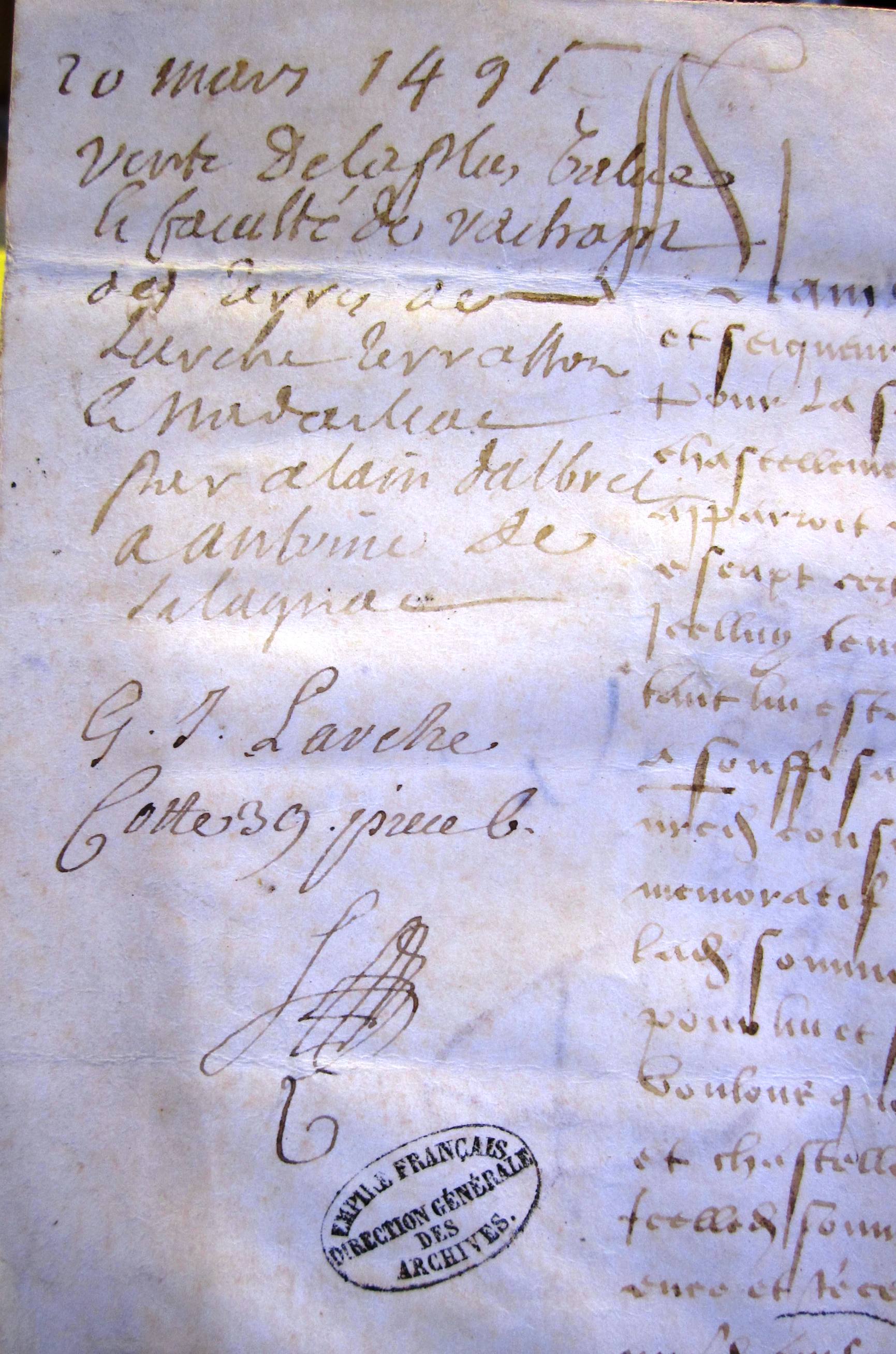 Renonciation par Alain d'Albret à sa faculté de réméré sur la terre de Larche, moyennant 2.000 livres (20 mars 1491)
