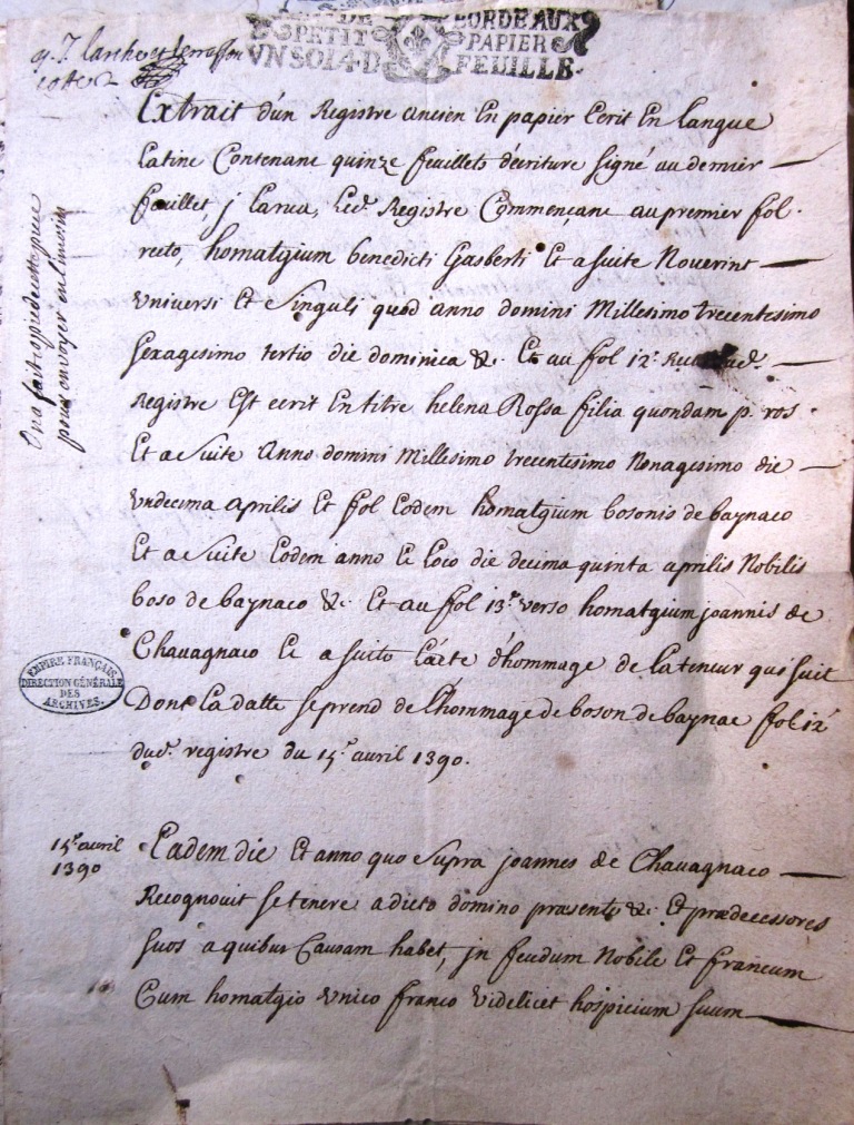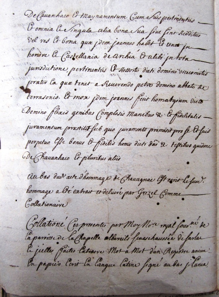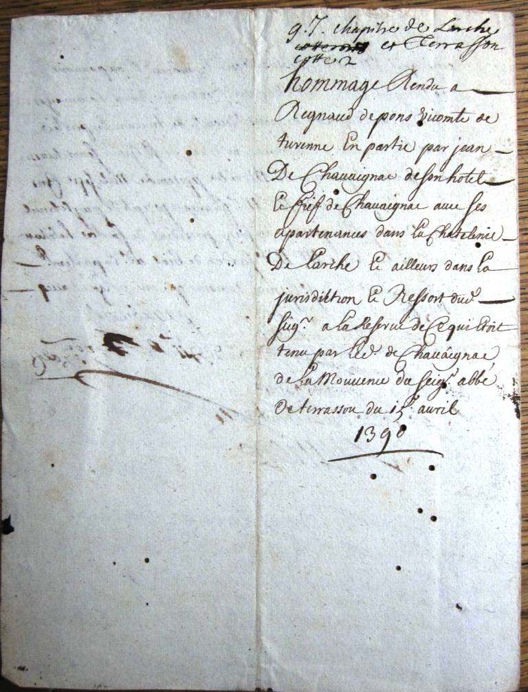 Hommage de Jean de Chavagnac à l'abbé de Terrasson (1390)