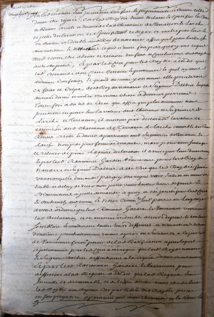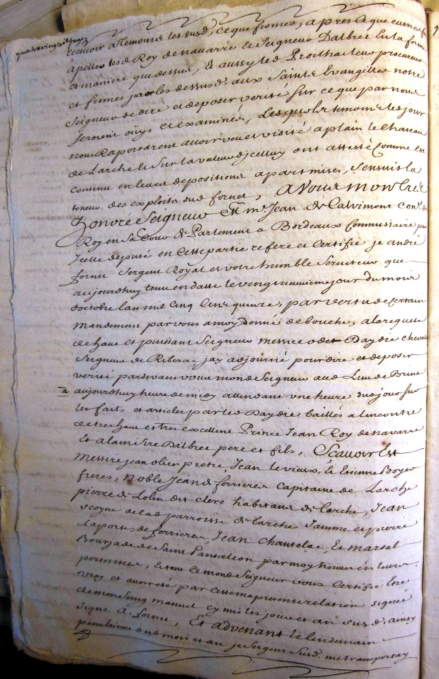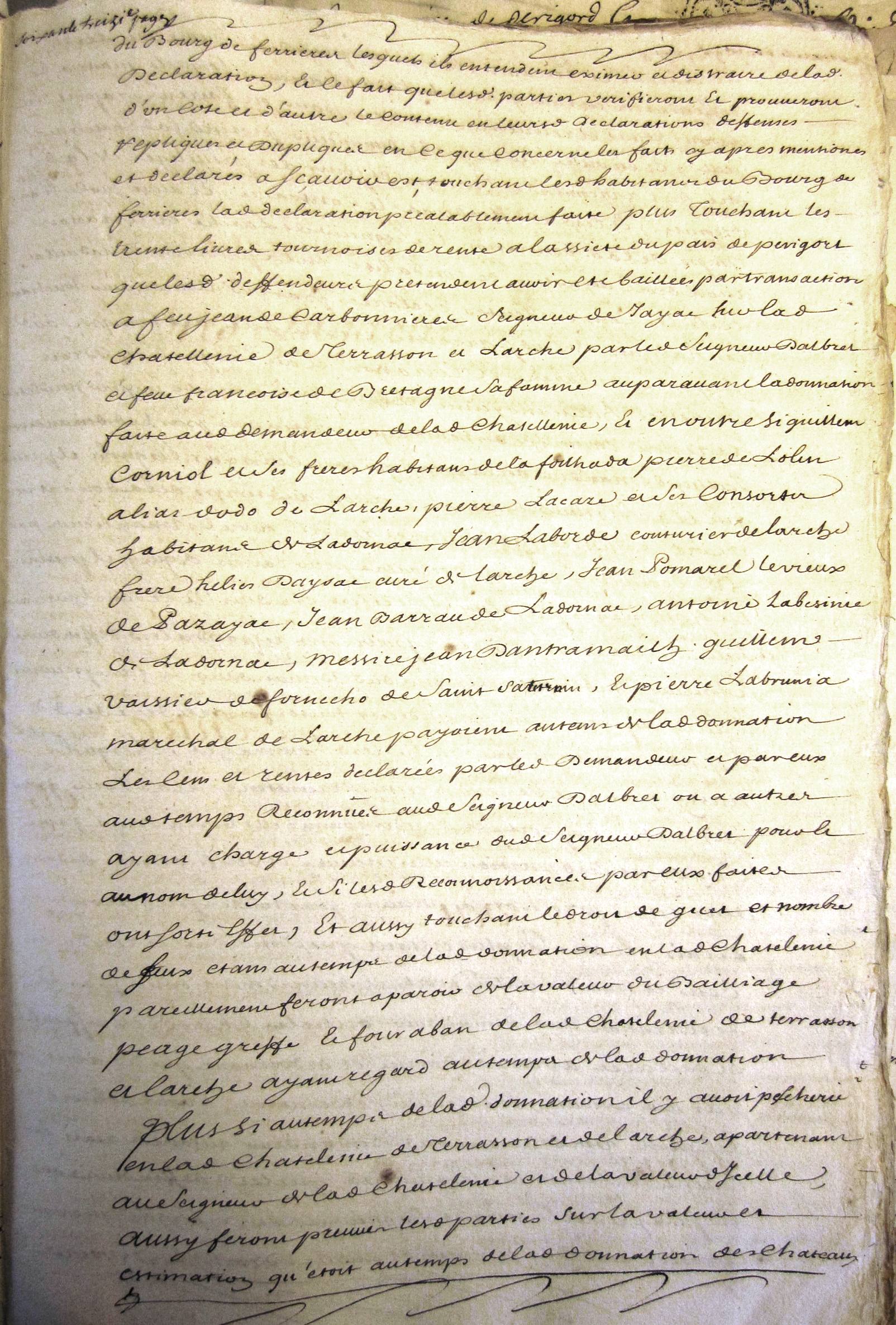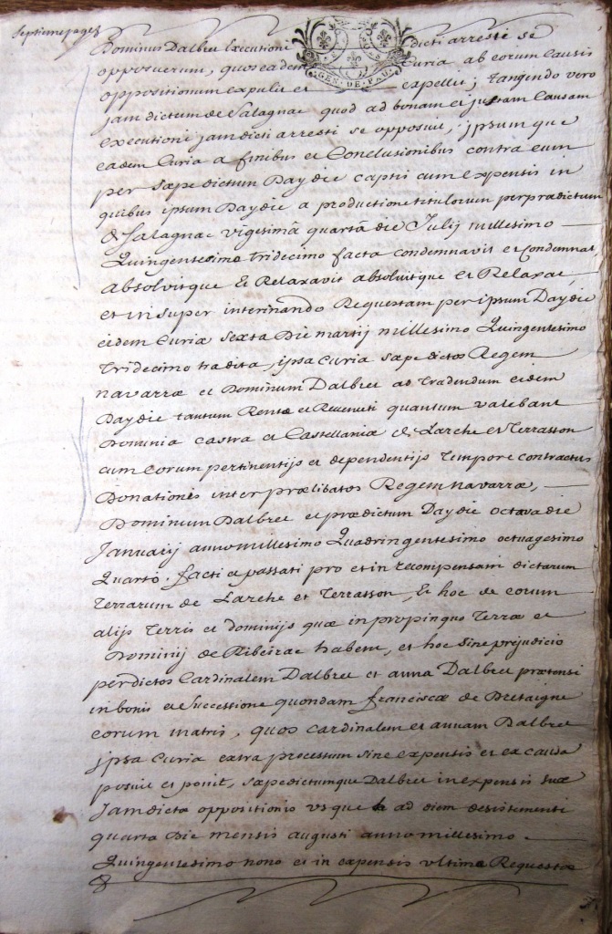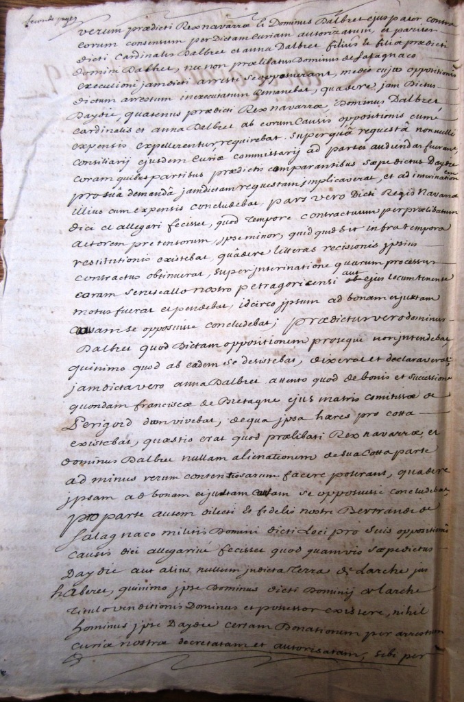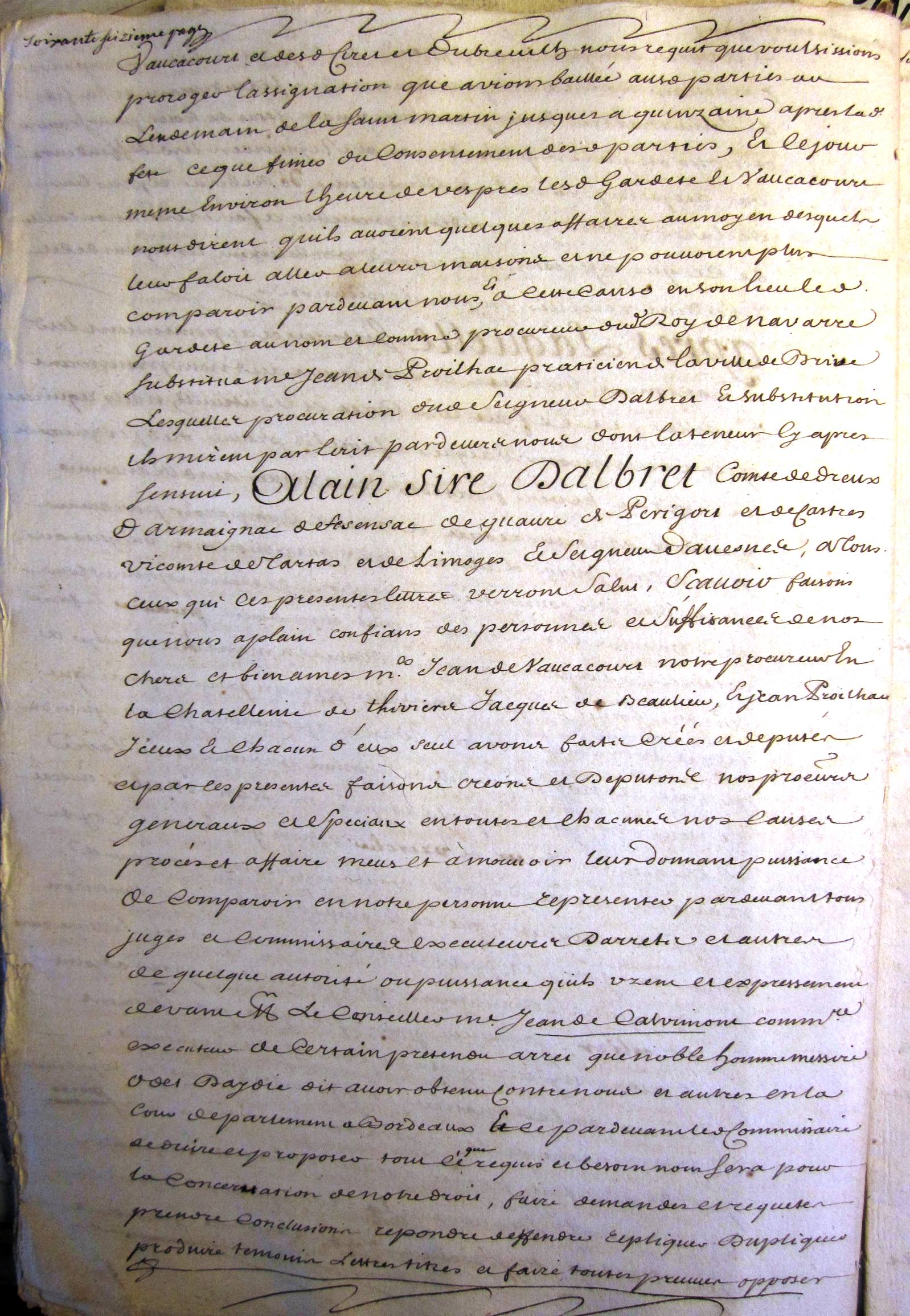 Procès-verbal d'exécution d'un arrêt rendu par le Parlement de Bordeaux entre Odet d'Aydie, seigneur de Ribérac, et Jean, roi de Navarre