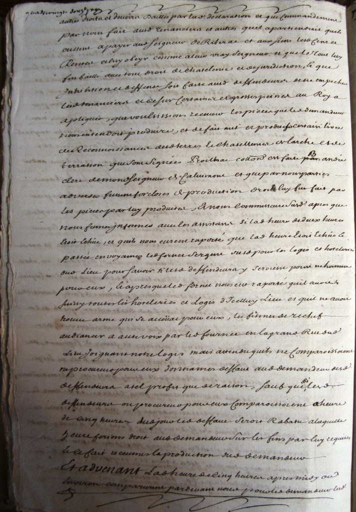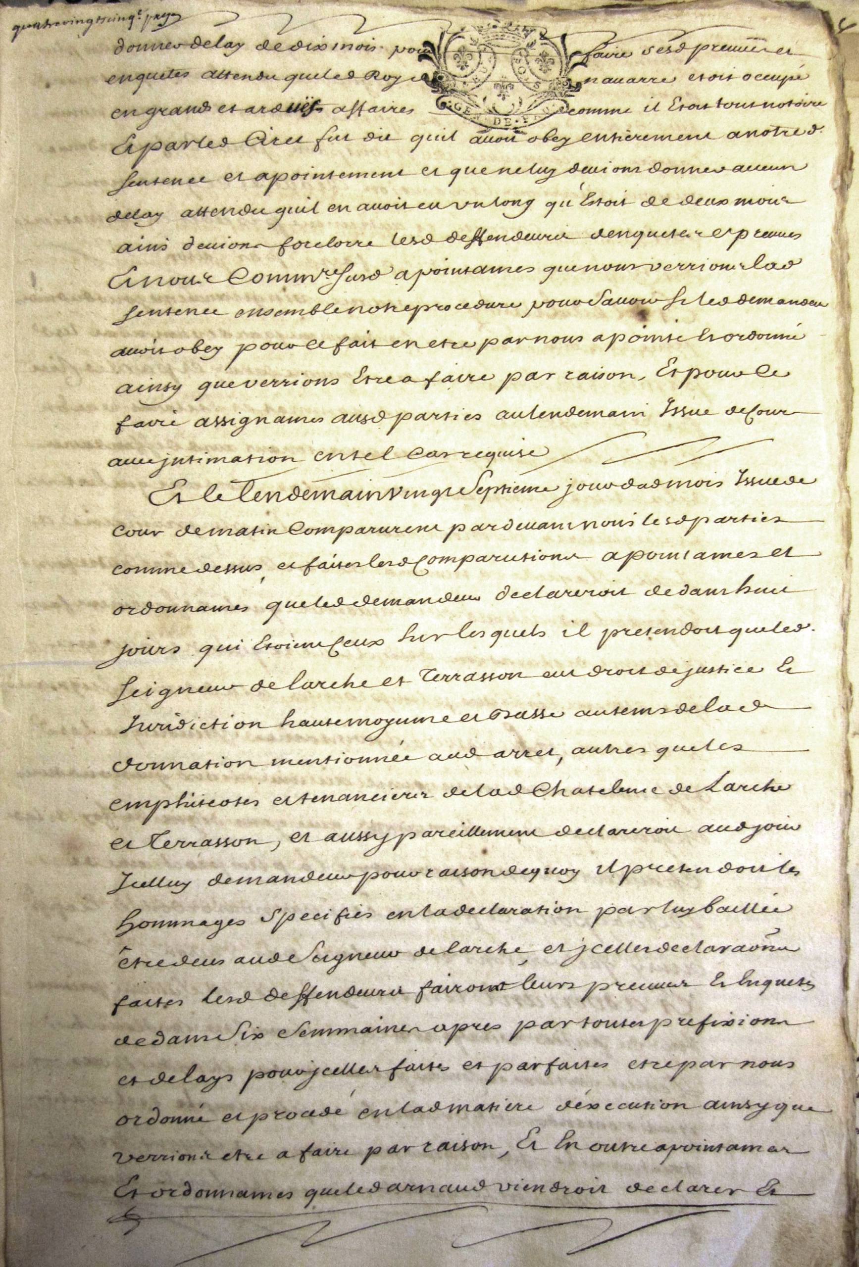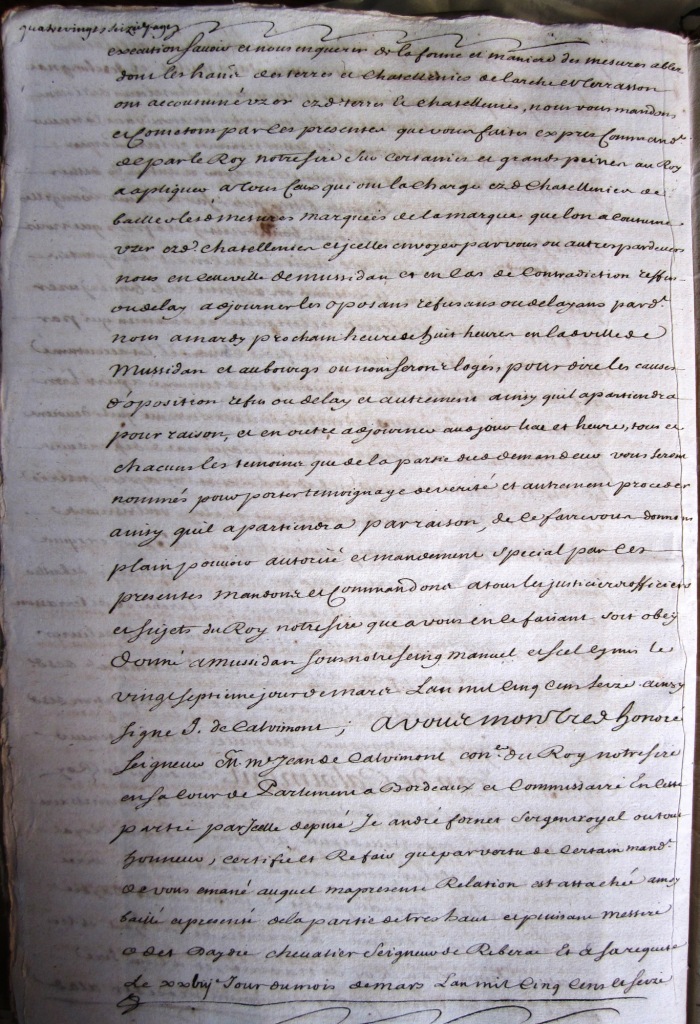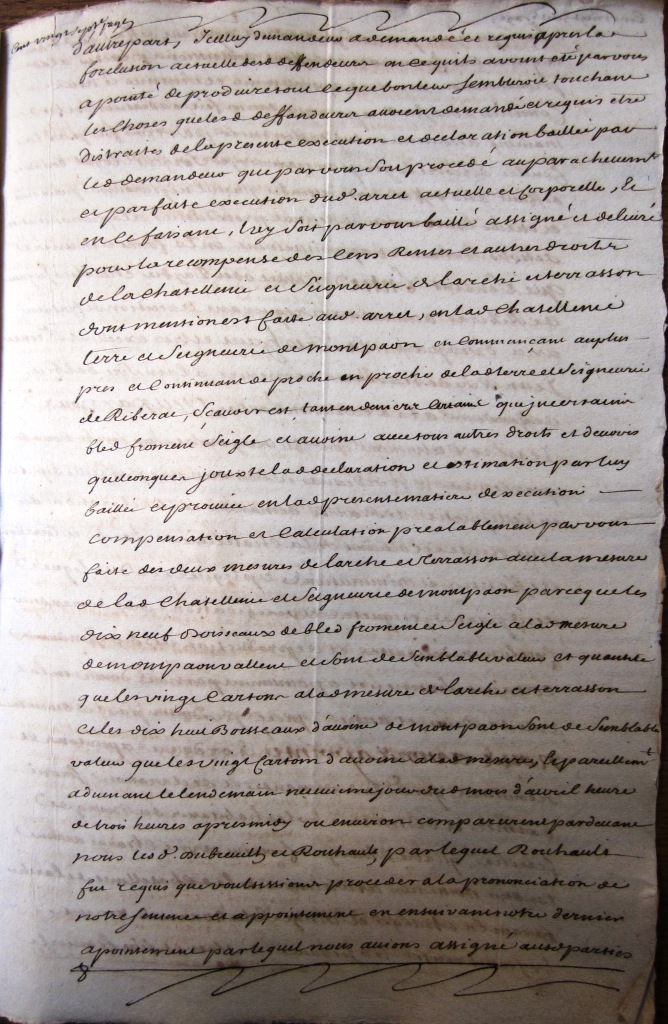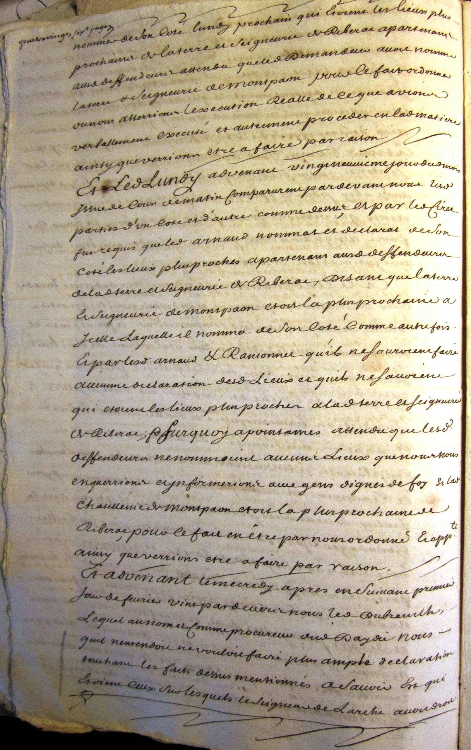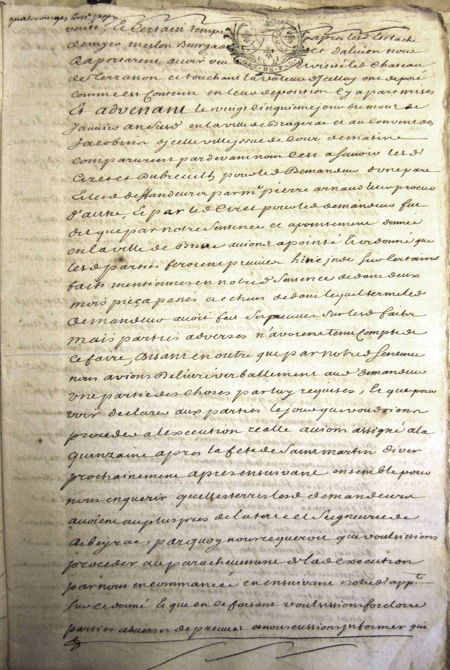 Procès-verbal d'exécution d'un arrêt rendu par le Parlement de Bordeaux entre Odet d'Aydie, seigneur de Ribérac, et Jean, roi de Navarre