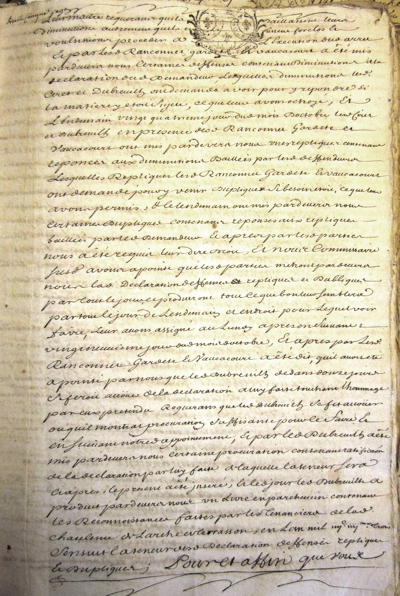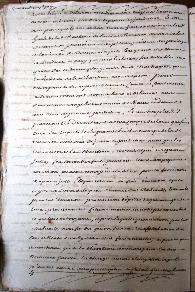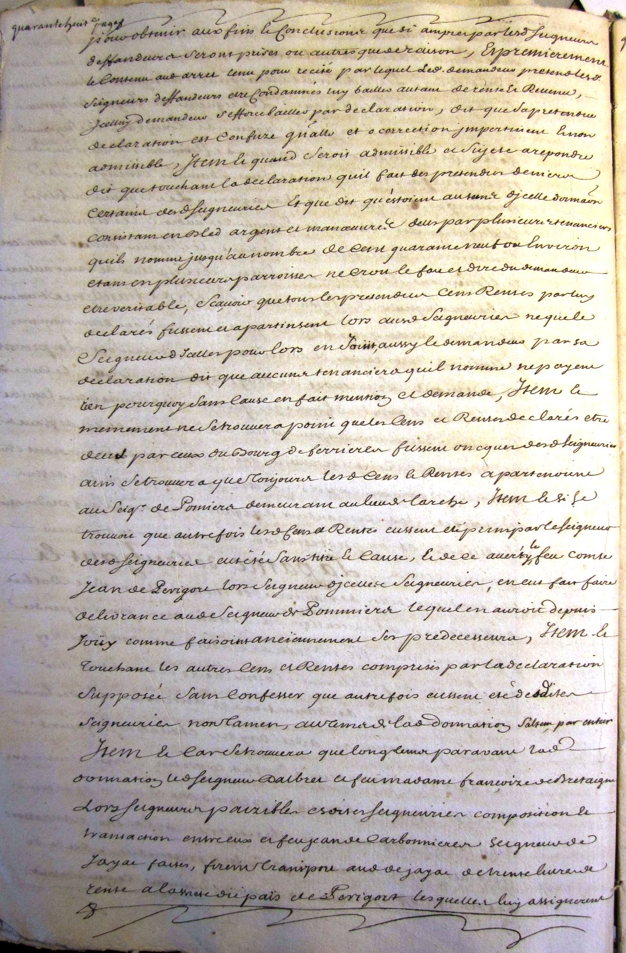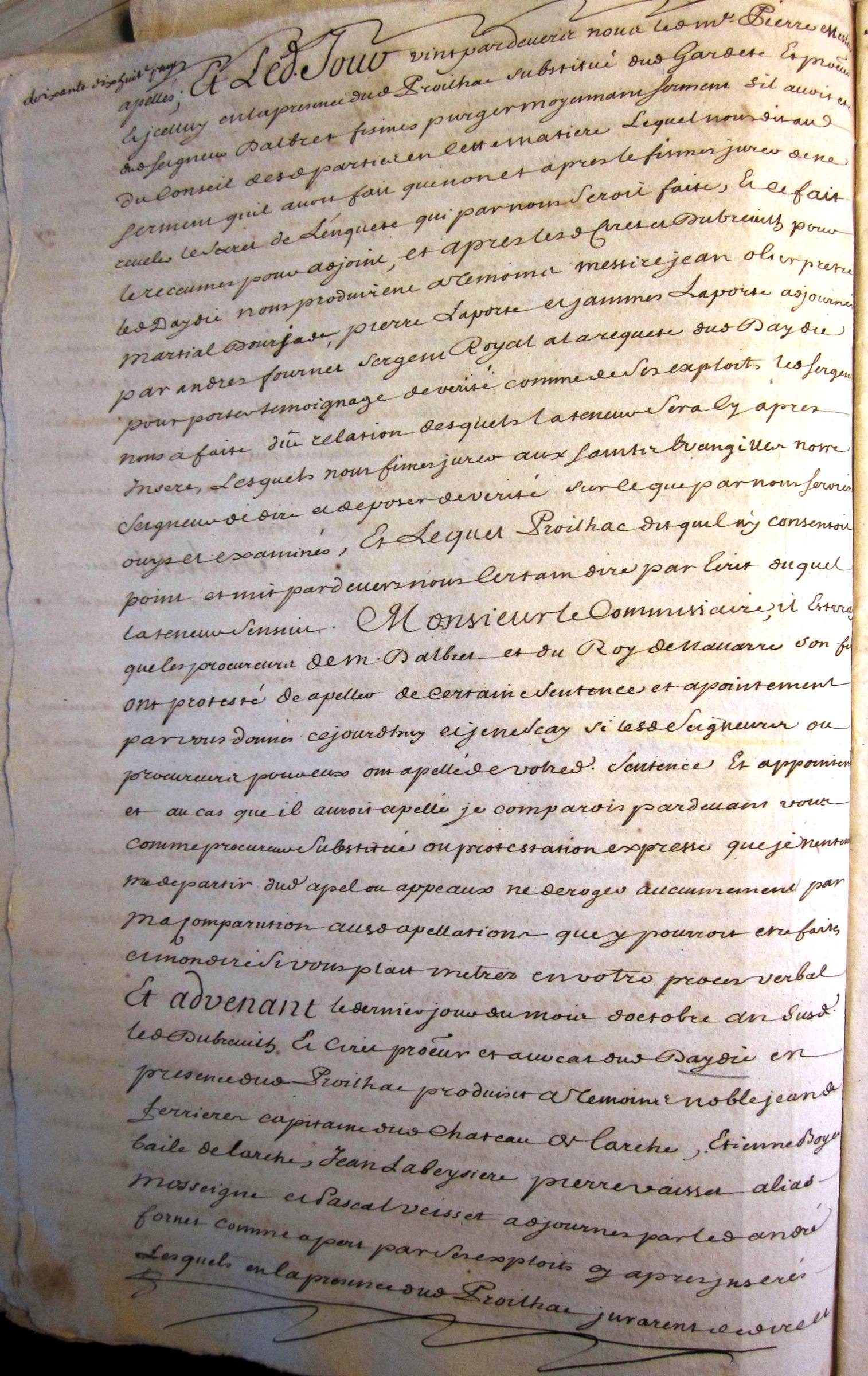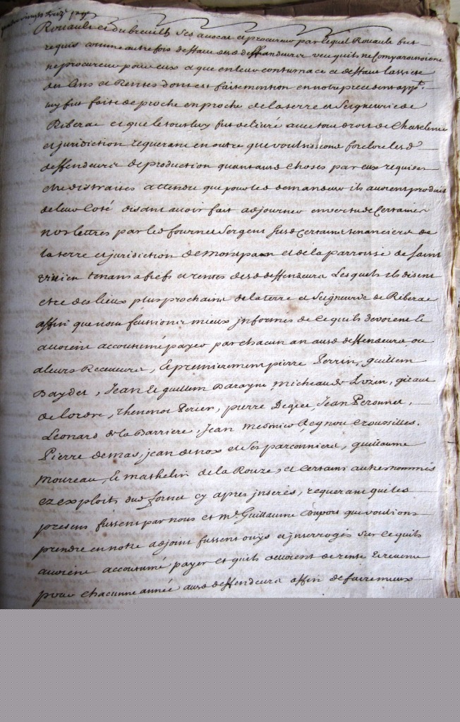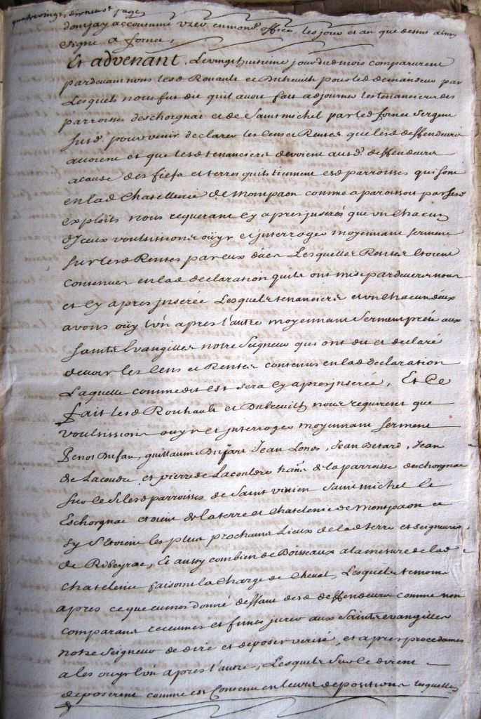 Procès-verbal d'exécution d'un arrêt rendu par le Parlement de Bordeaux entre Odet d'Aydie, seigneur de Ribérac, et Jean, roi de Navarre