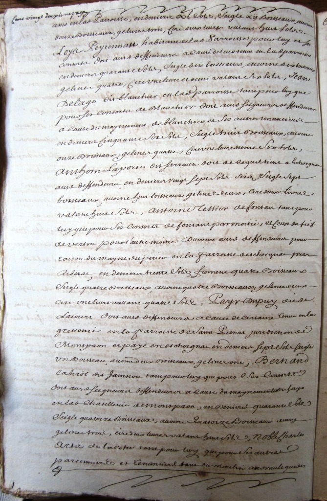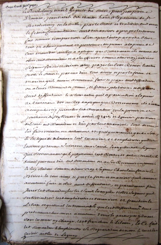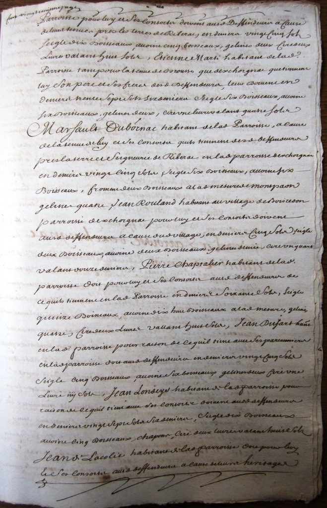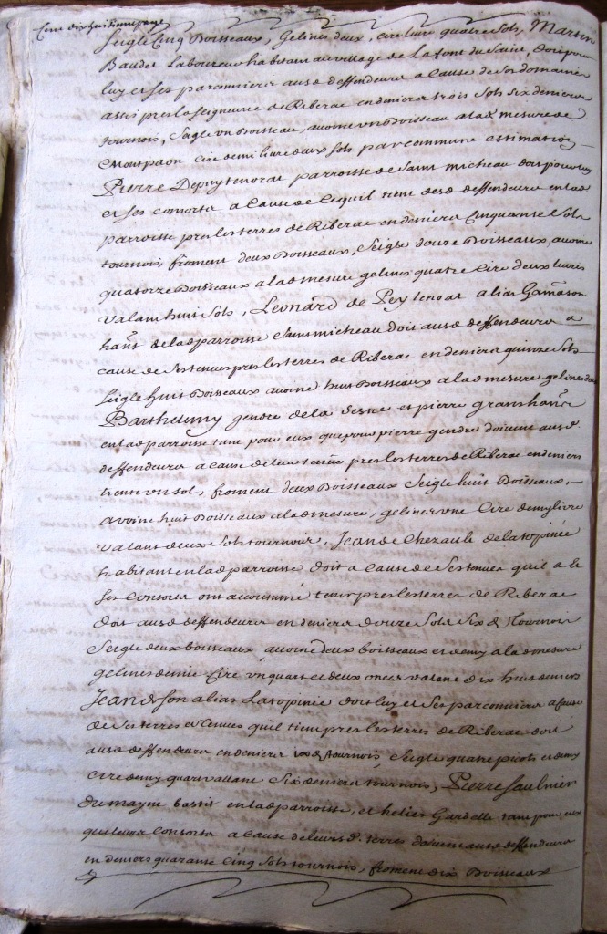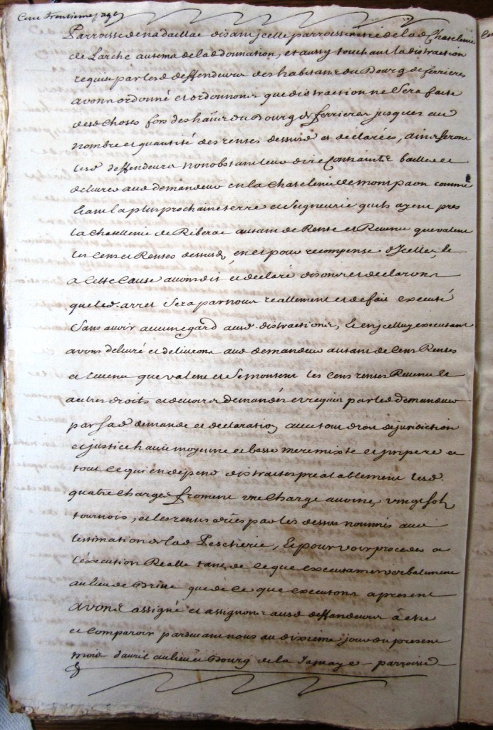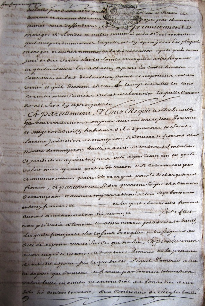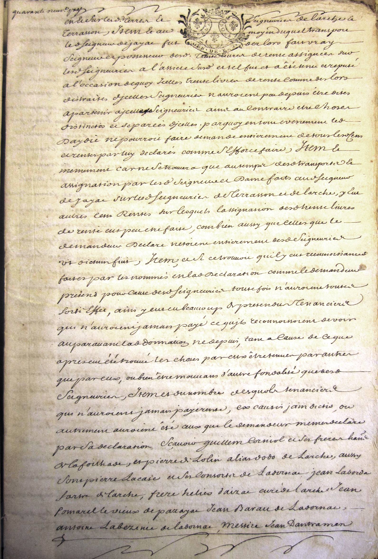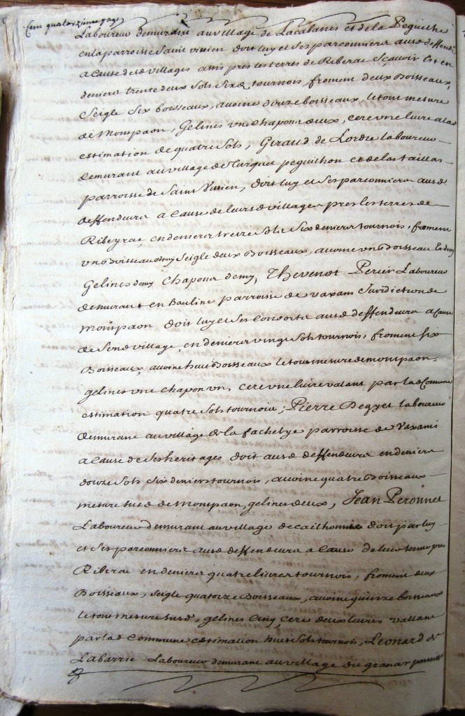 Procès-verbal d'exécution d'un arrêt rendu par le Parlement de Bordeaux entre Odet d'Aydie, seigneur de Ribérac, et Jean, roi de Navarre
