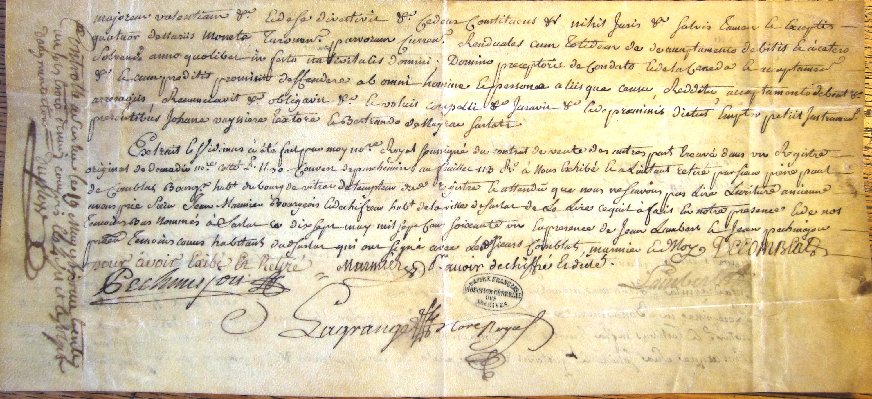 Cession de la douzième partie d'un moulin à Vitrac (1481) (vidimus de 1760).