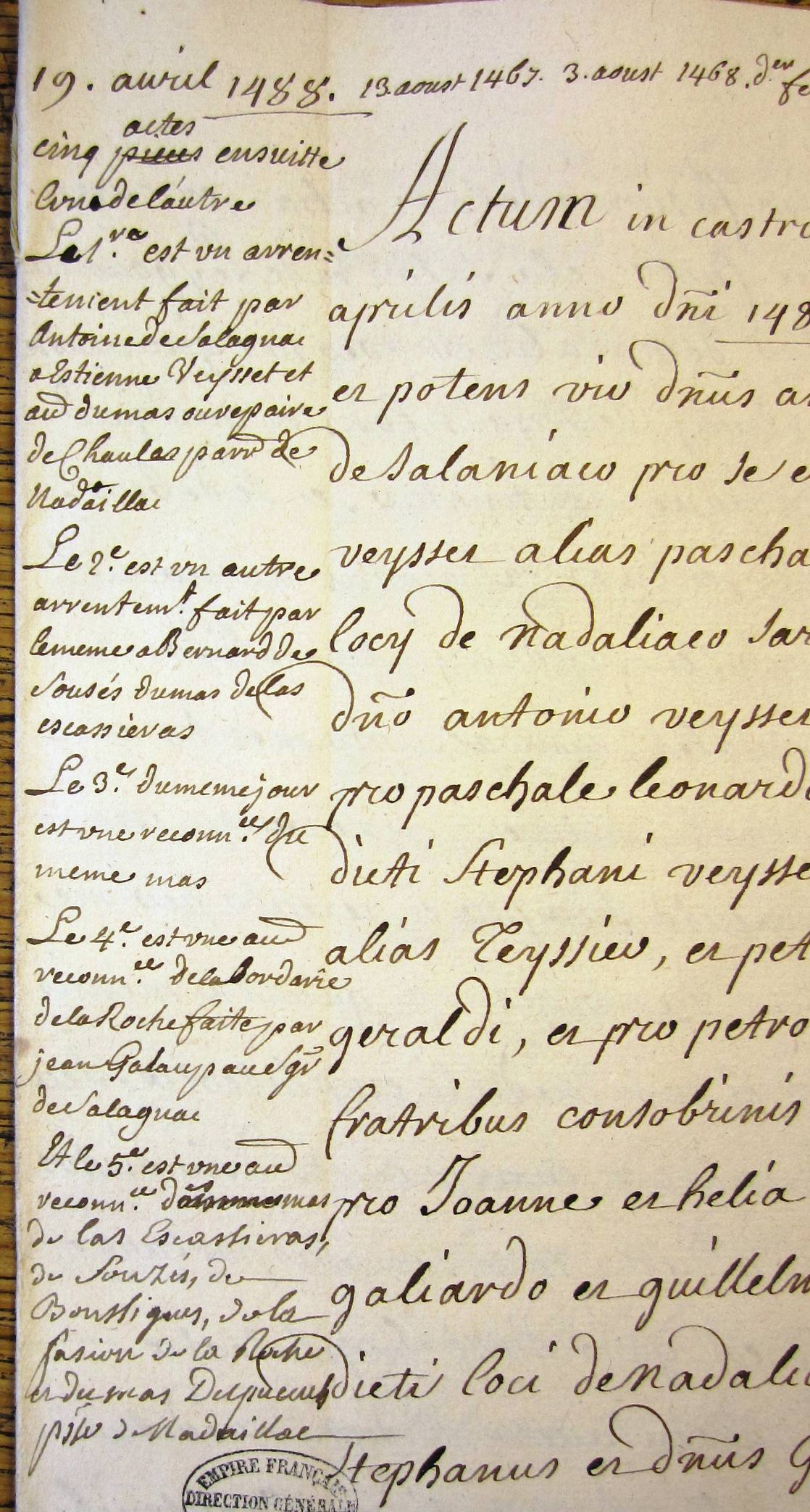 Titres du quinzième siècle (2ème moitié) et autres plus tardifs concernant la parroisse de Nadaillac (copies 18ème).