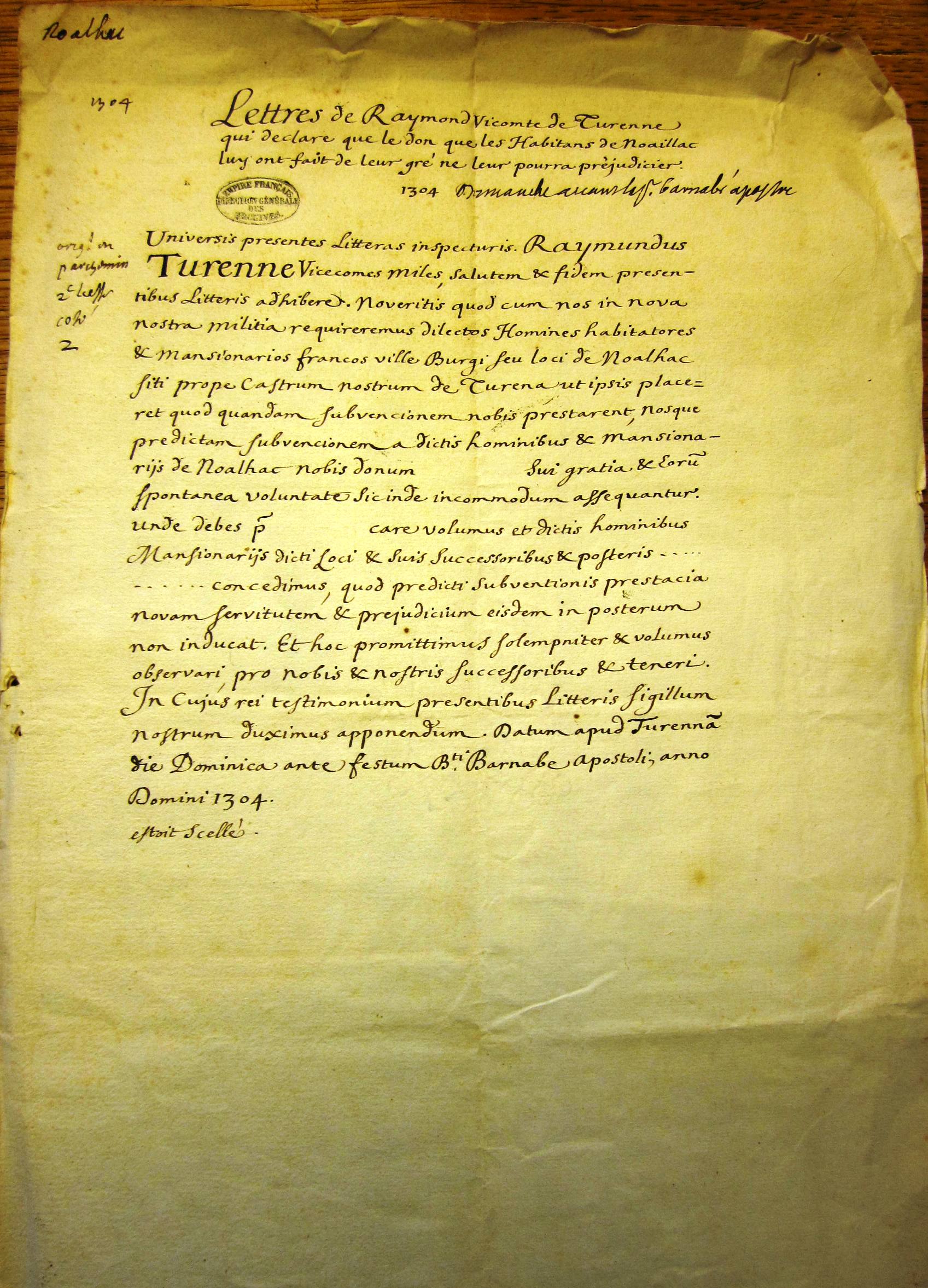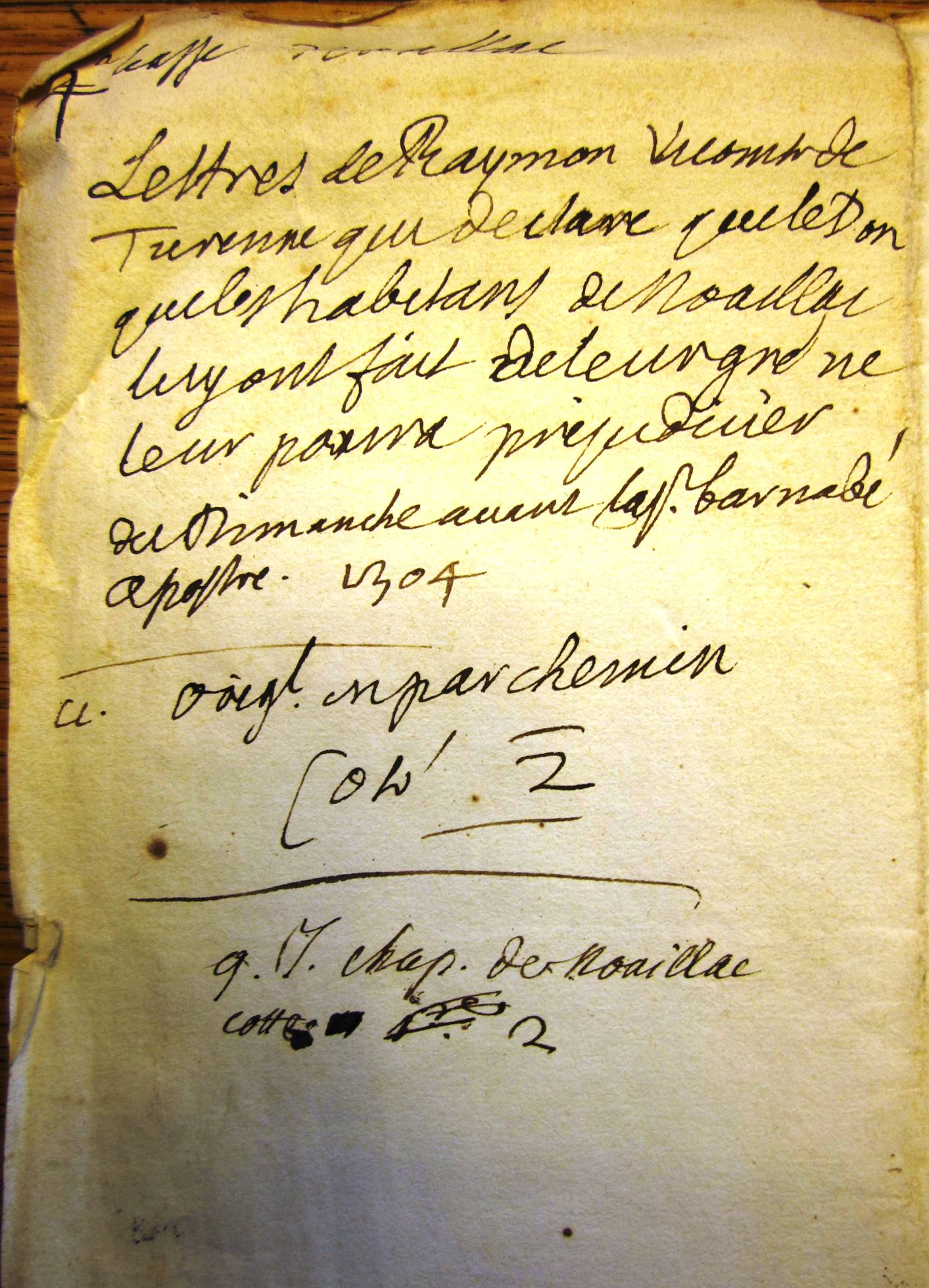 Lettre de Raymond vicomte de Turenne aux habitants de Noailhac (1304) .