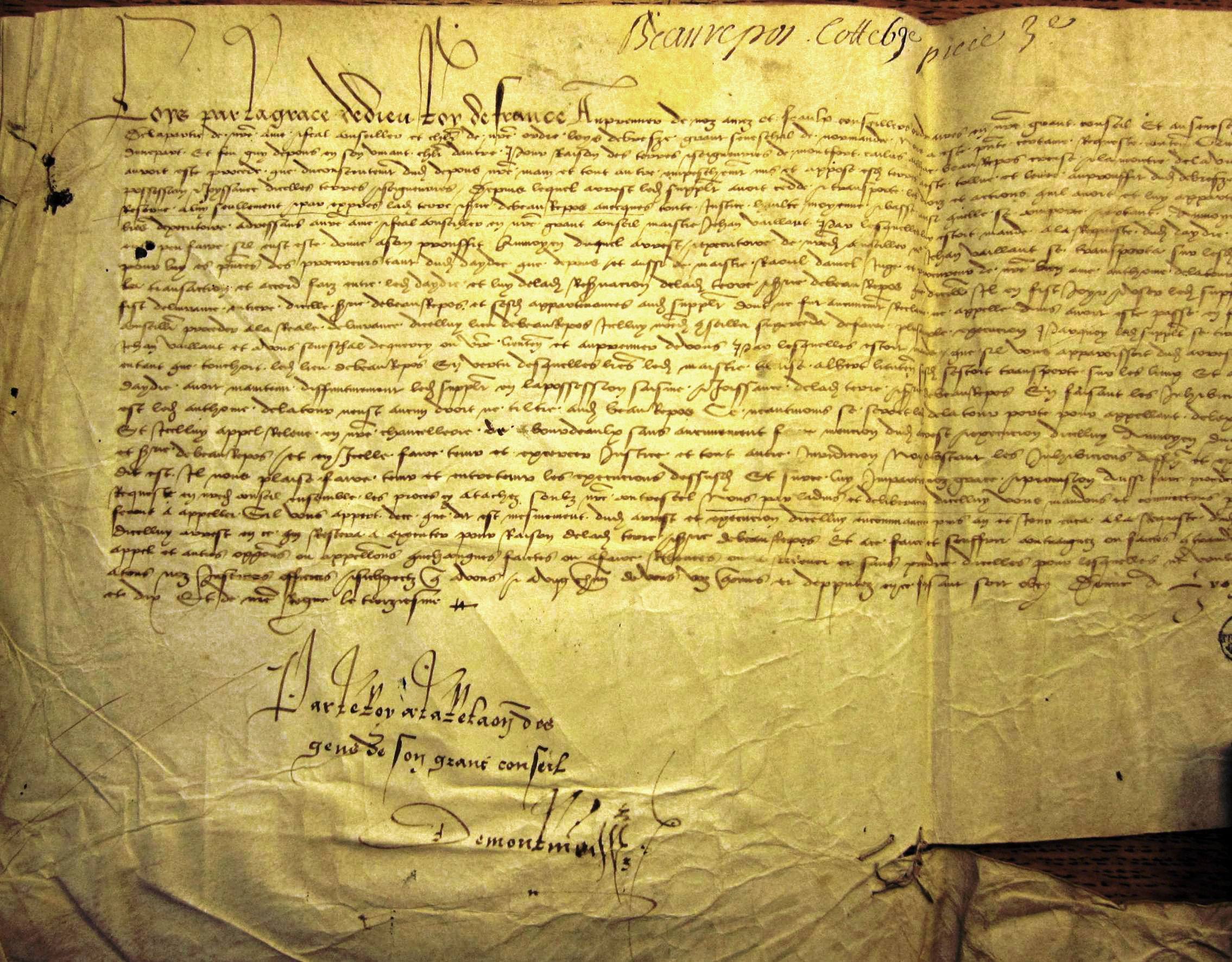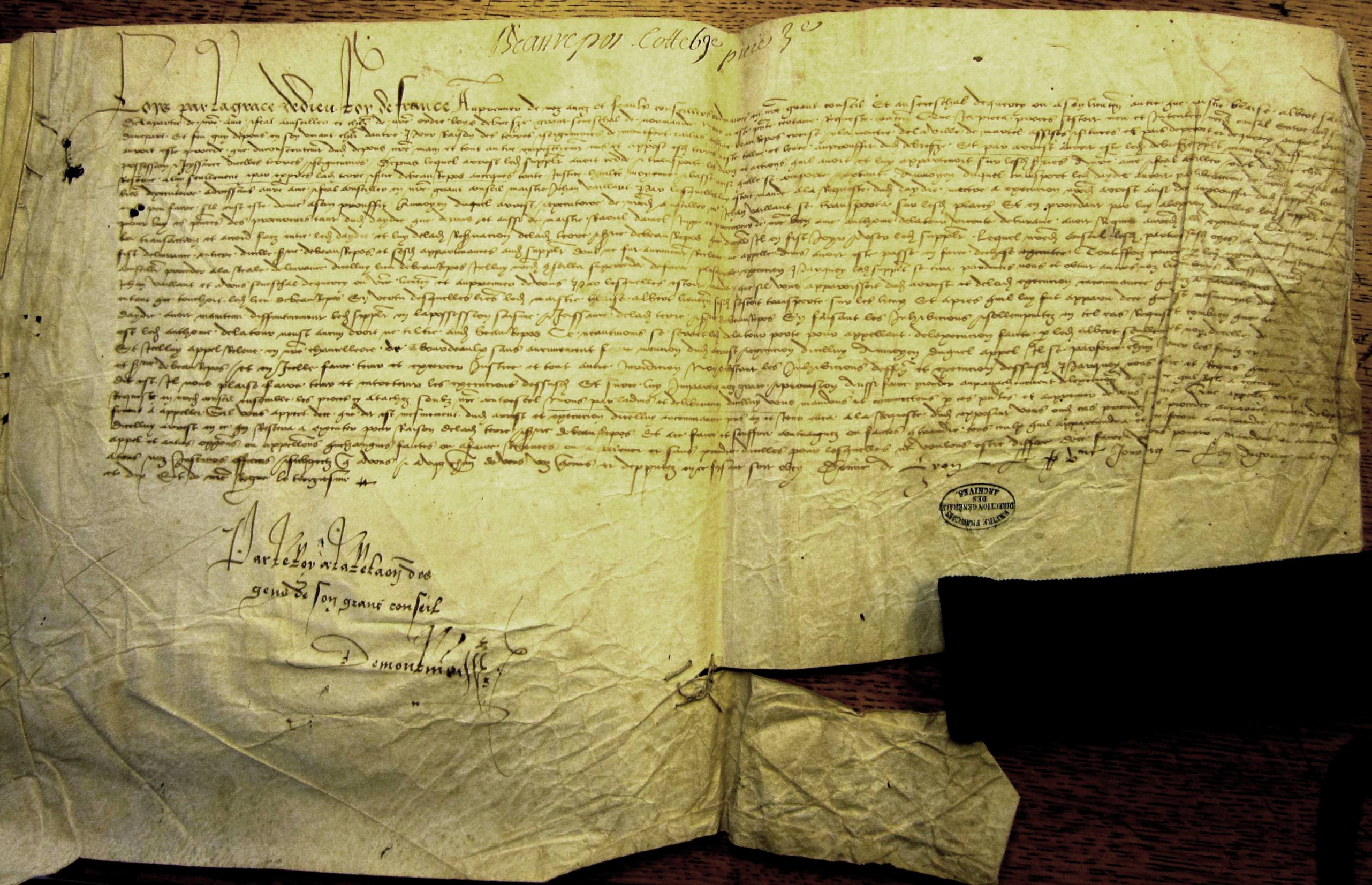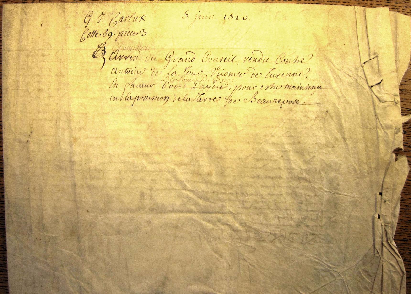 Mandement du roi Louis XII à l'adresse de Louis de Brezé et d'Antoine de La Tour et de ses enfans sur la terre de Beaurepos (5 juin 1510)