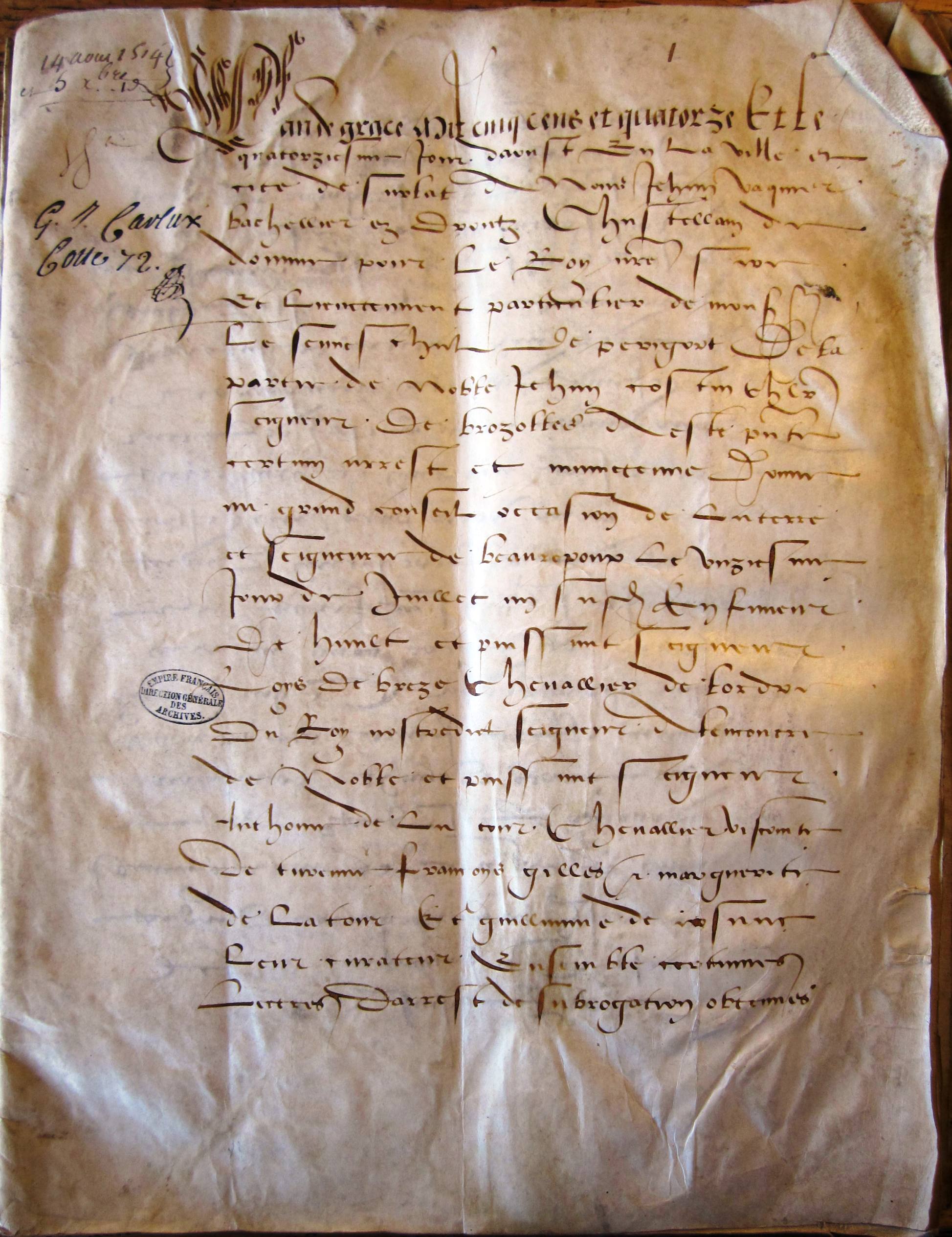 Procès-verbal d'exécution, daté de 1514, de l'arrêt sur la terre de Beaurepos en faveur de Louis de Brezé