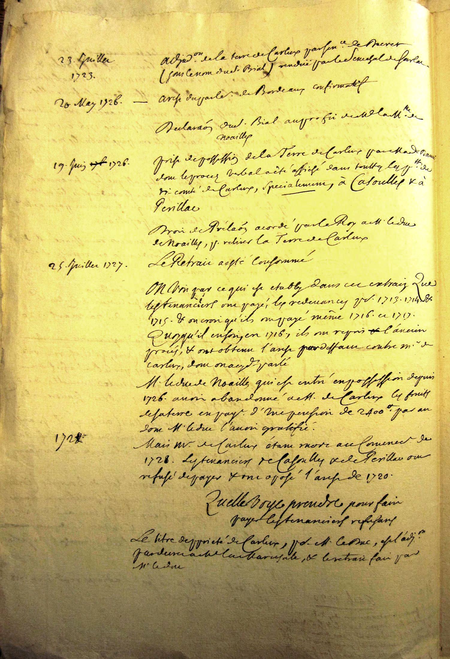 Evocation de baux à fief à Cazoules, Perillac datés de 1450 dans un document tardif (18ème)