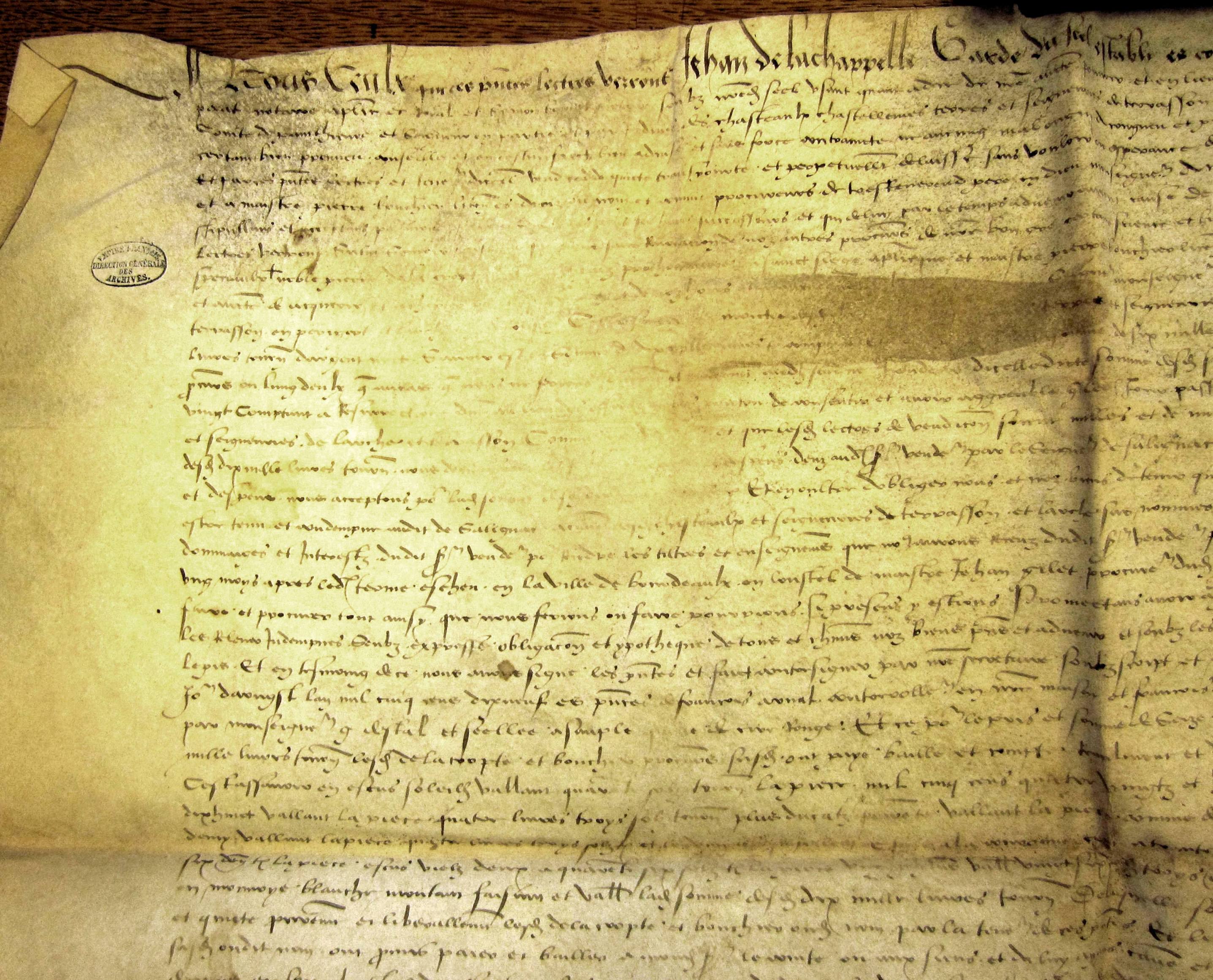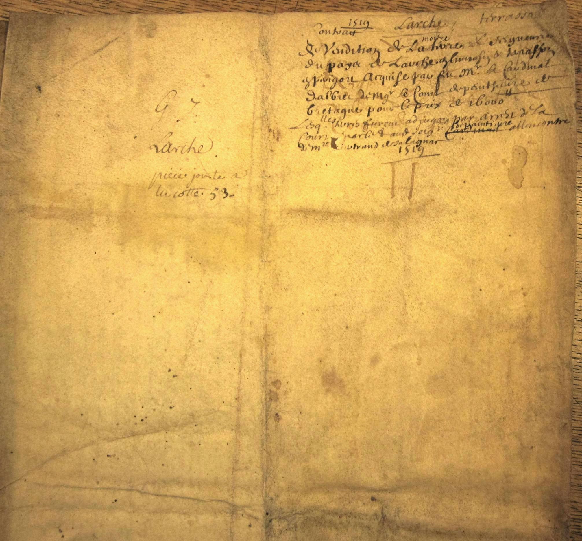 Vente de la moitié des seigneuries de Larche et Terrasson par René de Bretagne, comte de Penthièvre, à Amanieu, cardinal d'Albret, pour 16.000 livres (1519)