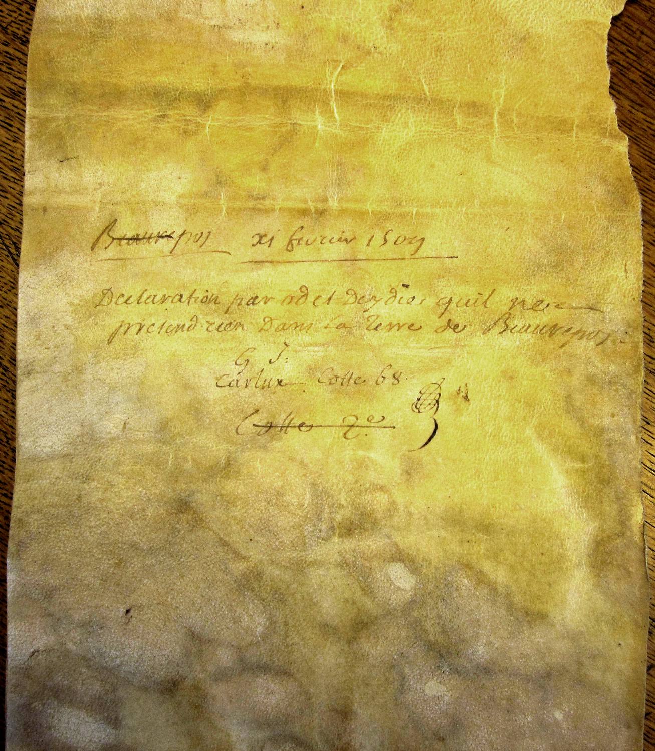 Déclaration par Odet d'Aydie qu'il ne prétend rien dans la terre de Beaurepos (11 février 1509)