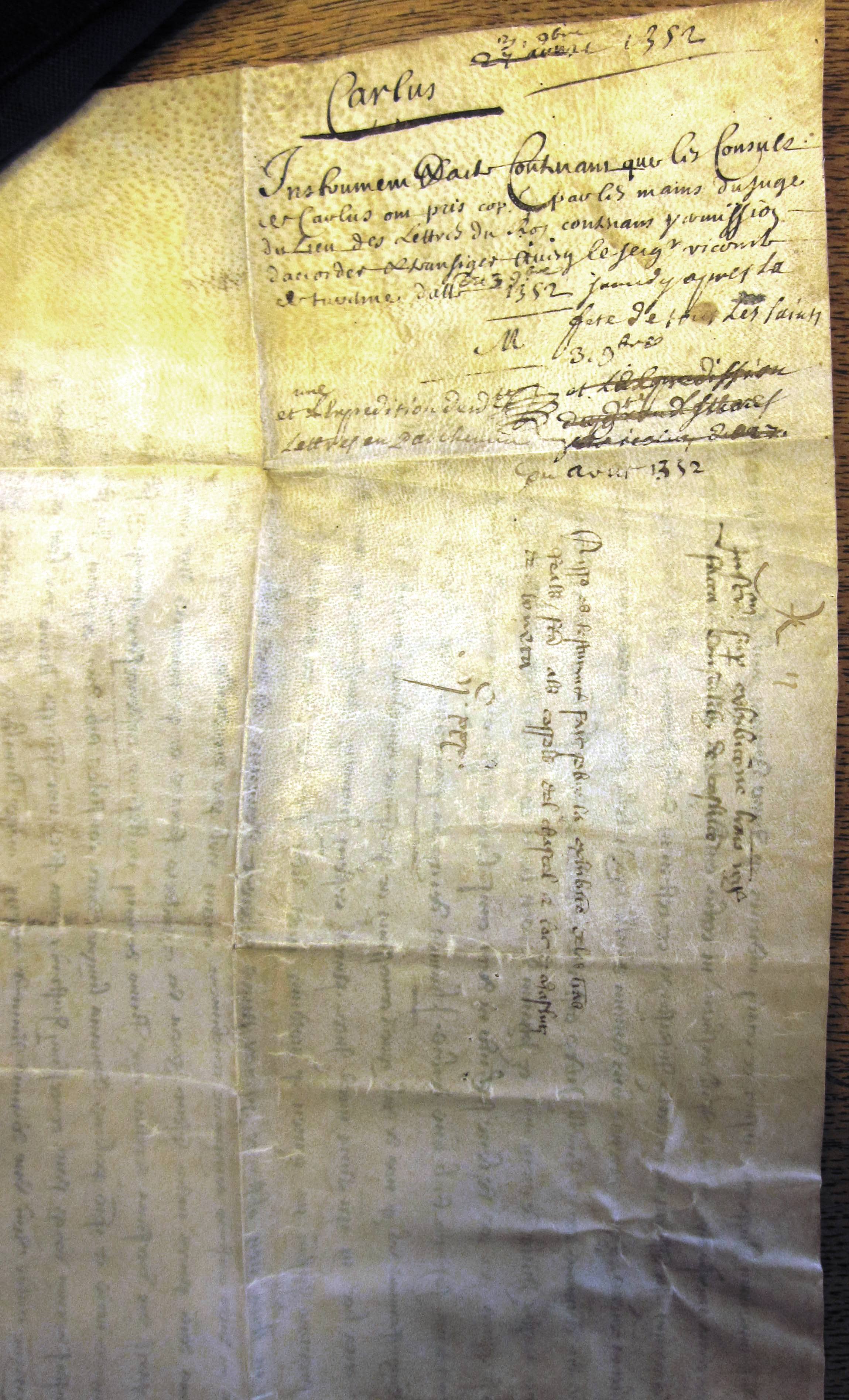 Remise de lettres royales aux consuls de Carlux par le juge du lieu (3 novembre 1352)