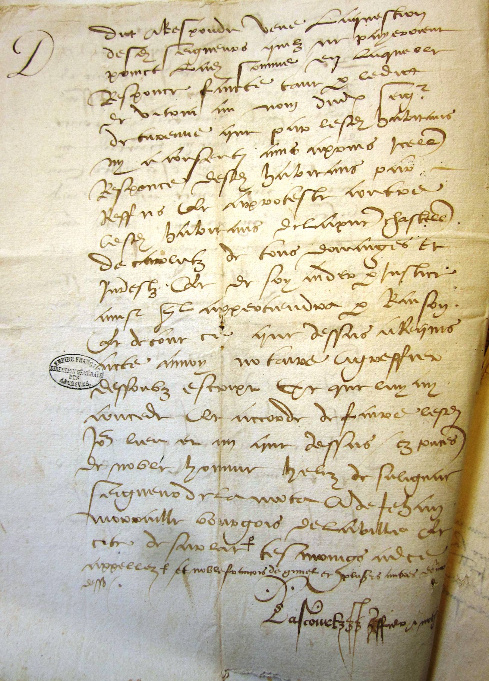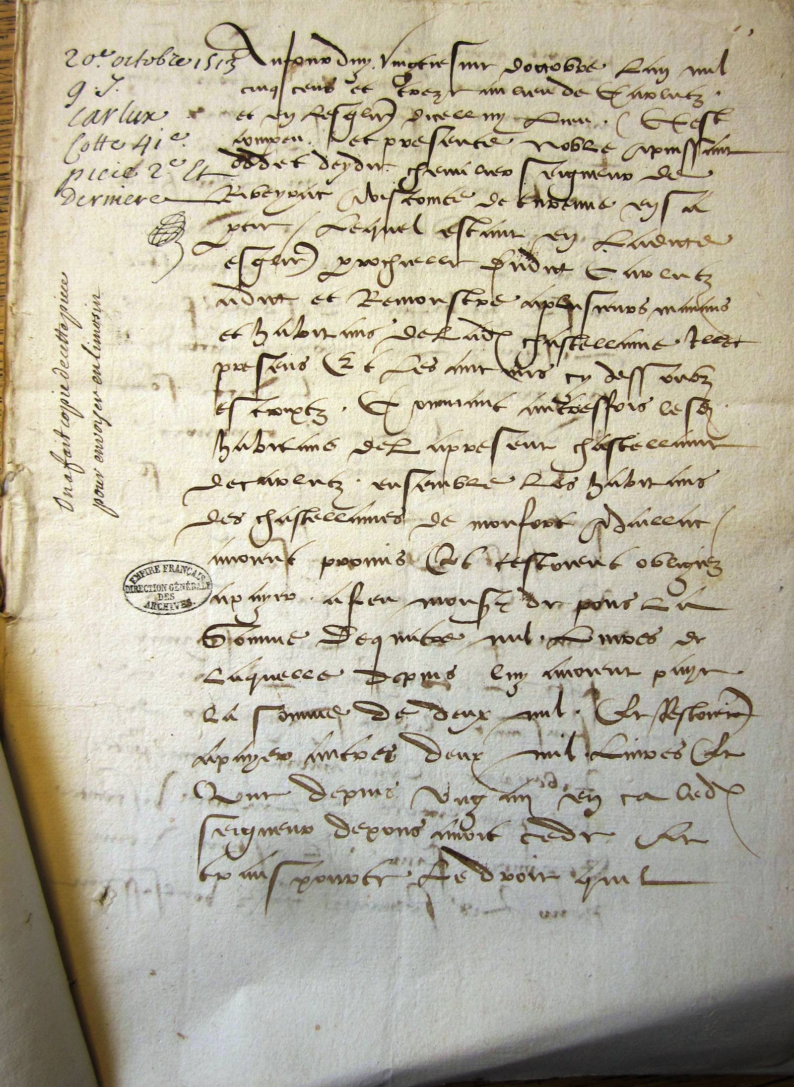 Odet d'Aydie réclame aux habitants de Carlux, Montfort et Aillac le paiement des redevances qu'ils devaient par le passé aux seigneurs de Pons (20 octobre 1513).