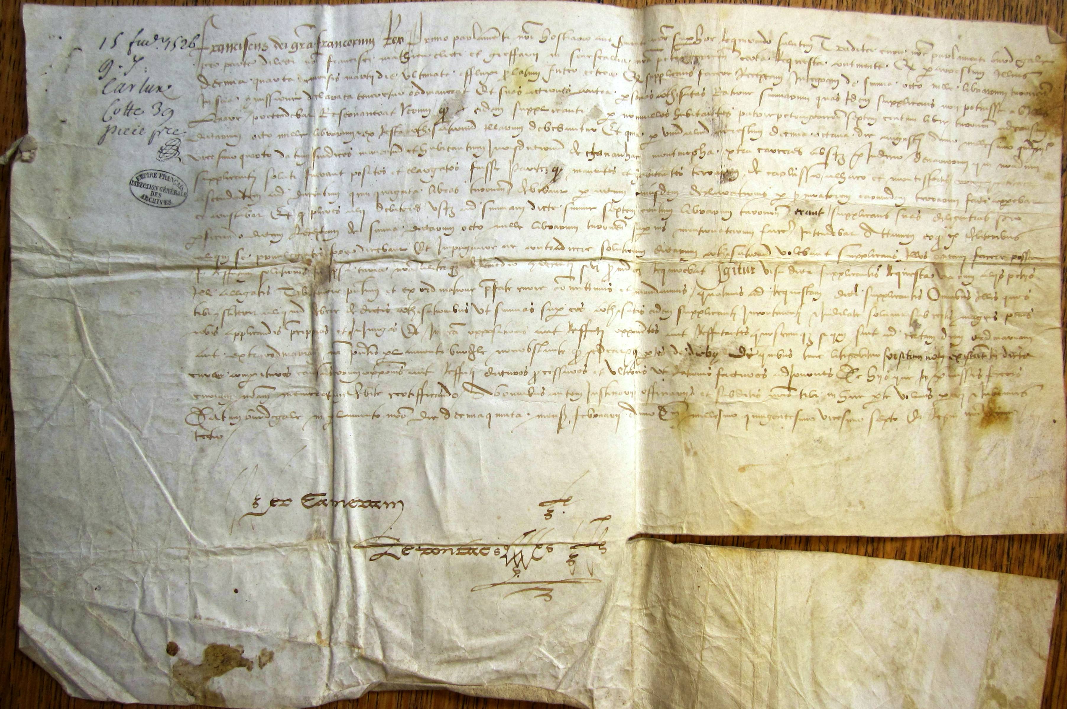 Commission du parlement de Bordeaux au nom de François Ier, et commandement aux habitants de Carlux (15 février 1526).
