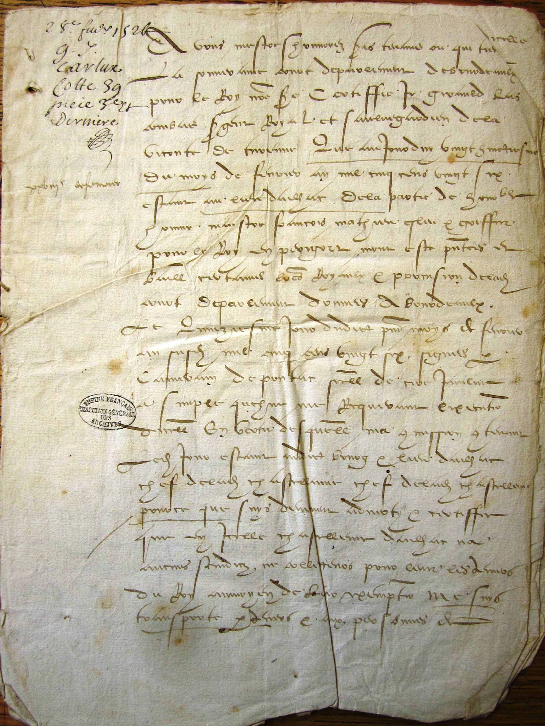 Commission du parlement de Bordeaux au nom de François Ier, et commandement aux habitants de Carlux (28 février 1526).