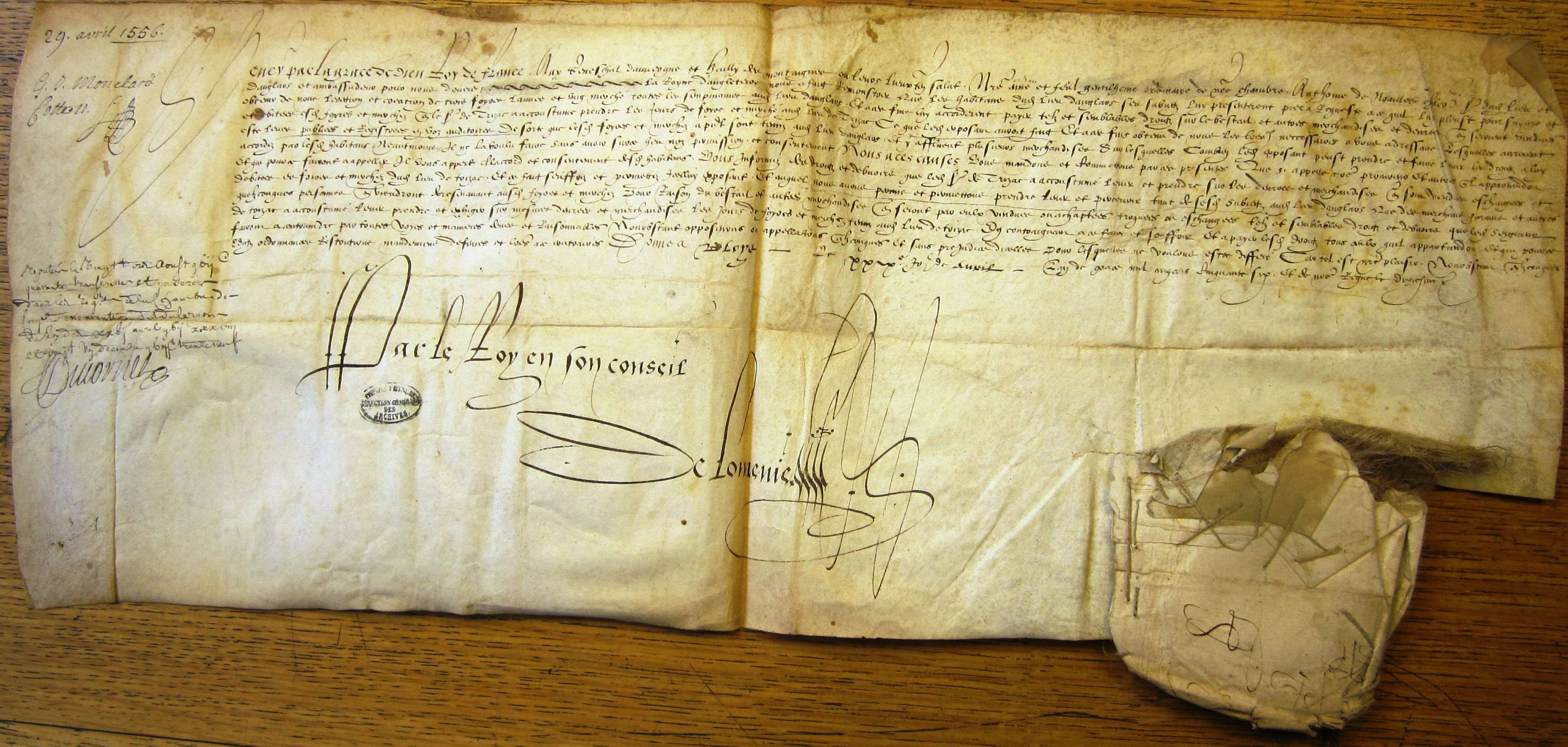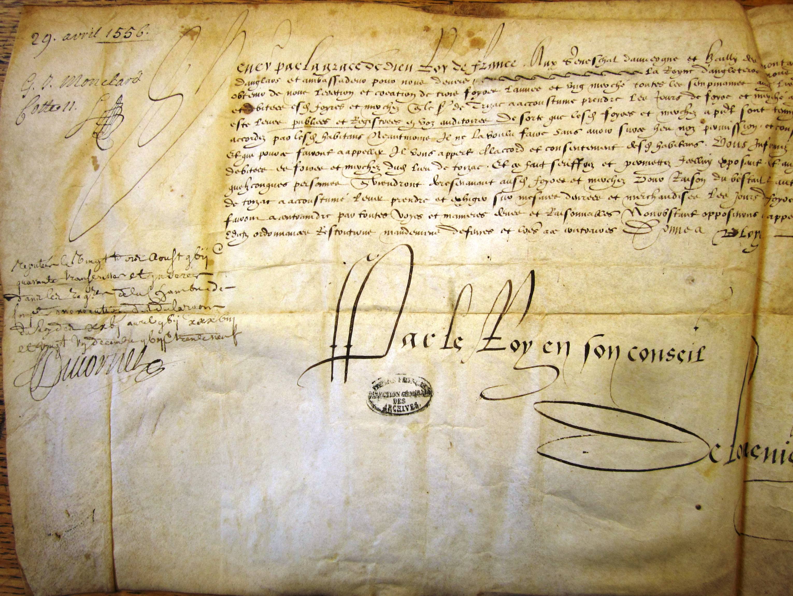 Acte royal (Henri II) concernant les marchés et foires d'Anglars (1556)
