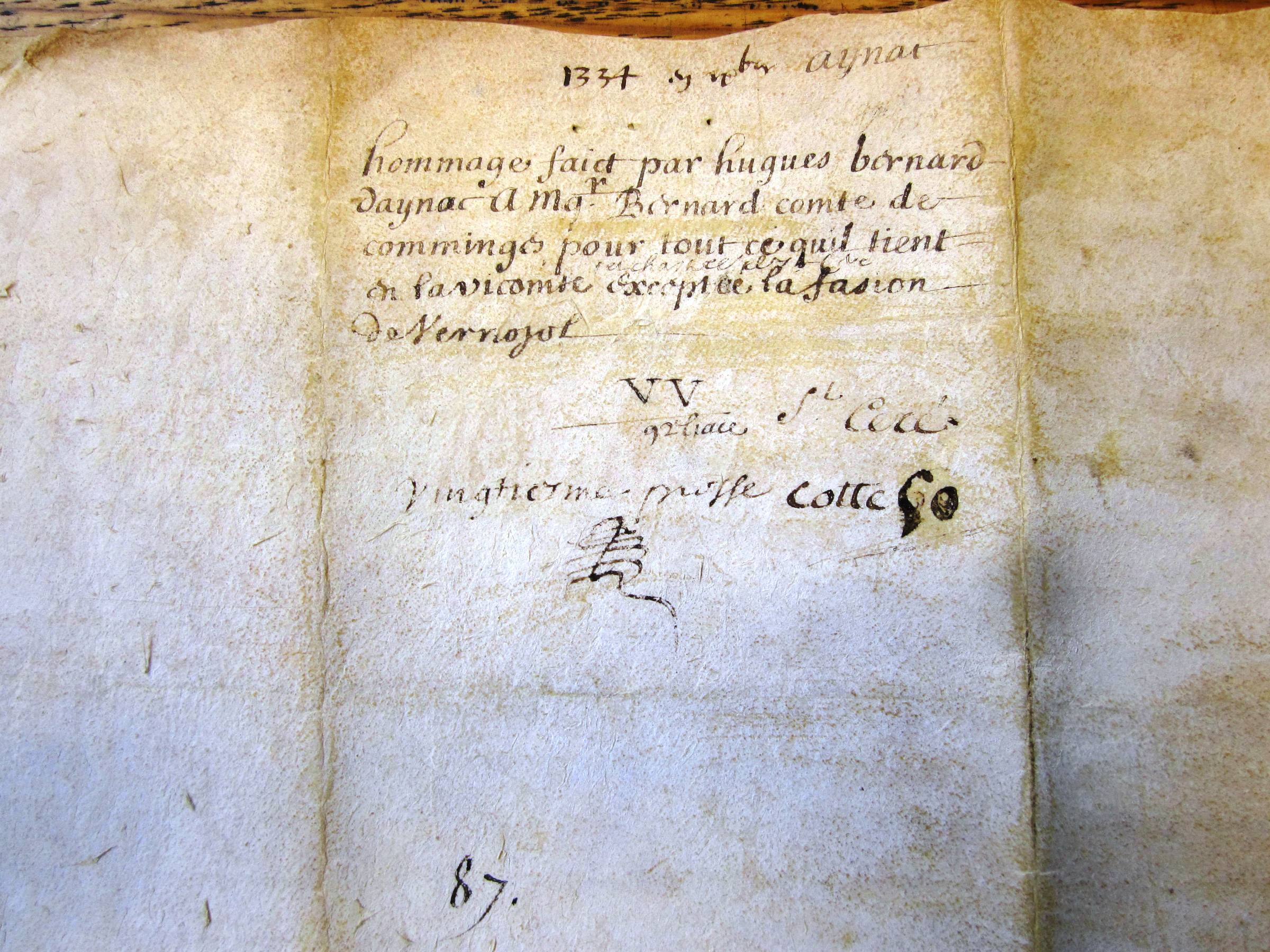 Hommage fait par Hugues-Bernard d'Aynac à Bernard comte de Comminges (1334)