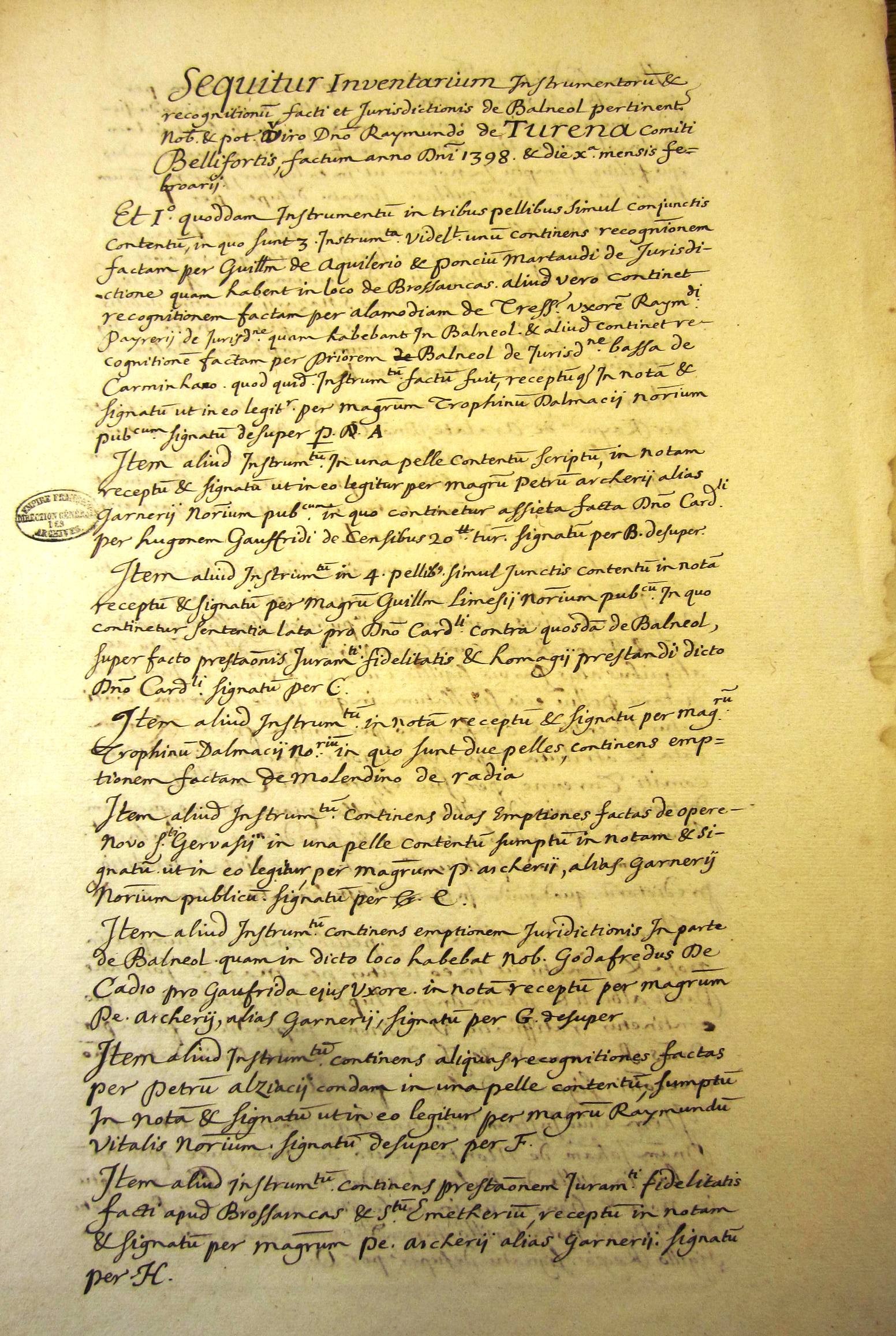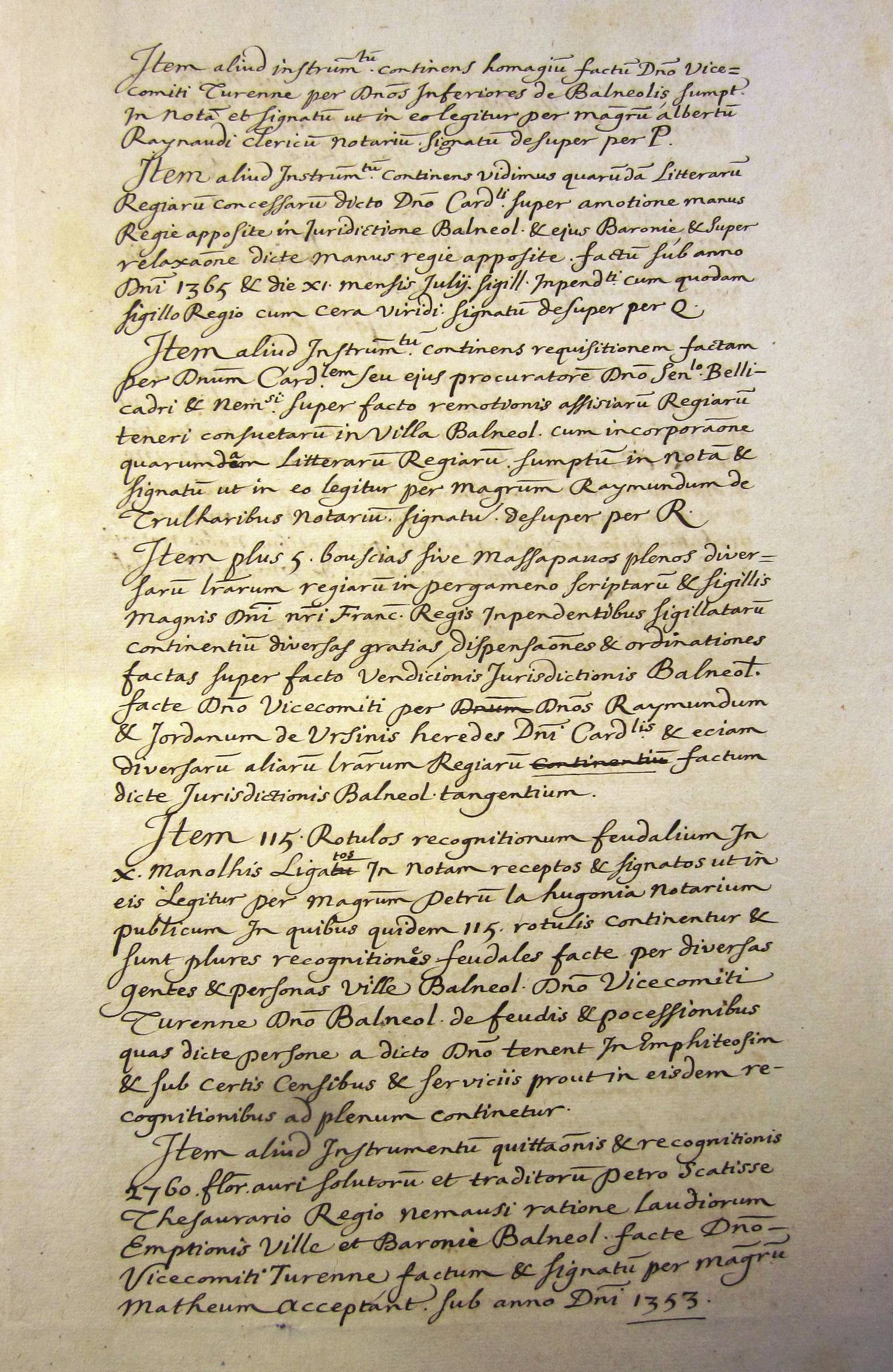 Deuxième inventaire de titres trouvés au château de Turenne concernant la baronie de Baignaux (actes du 14ème siècle)