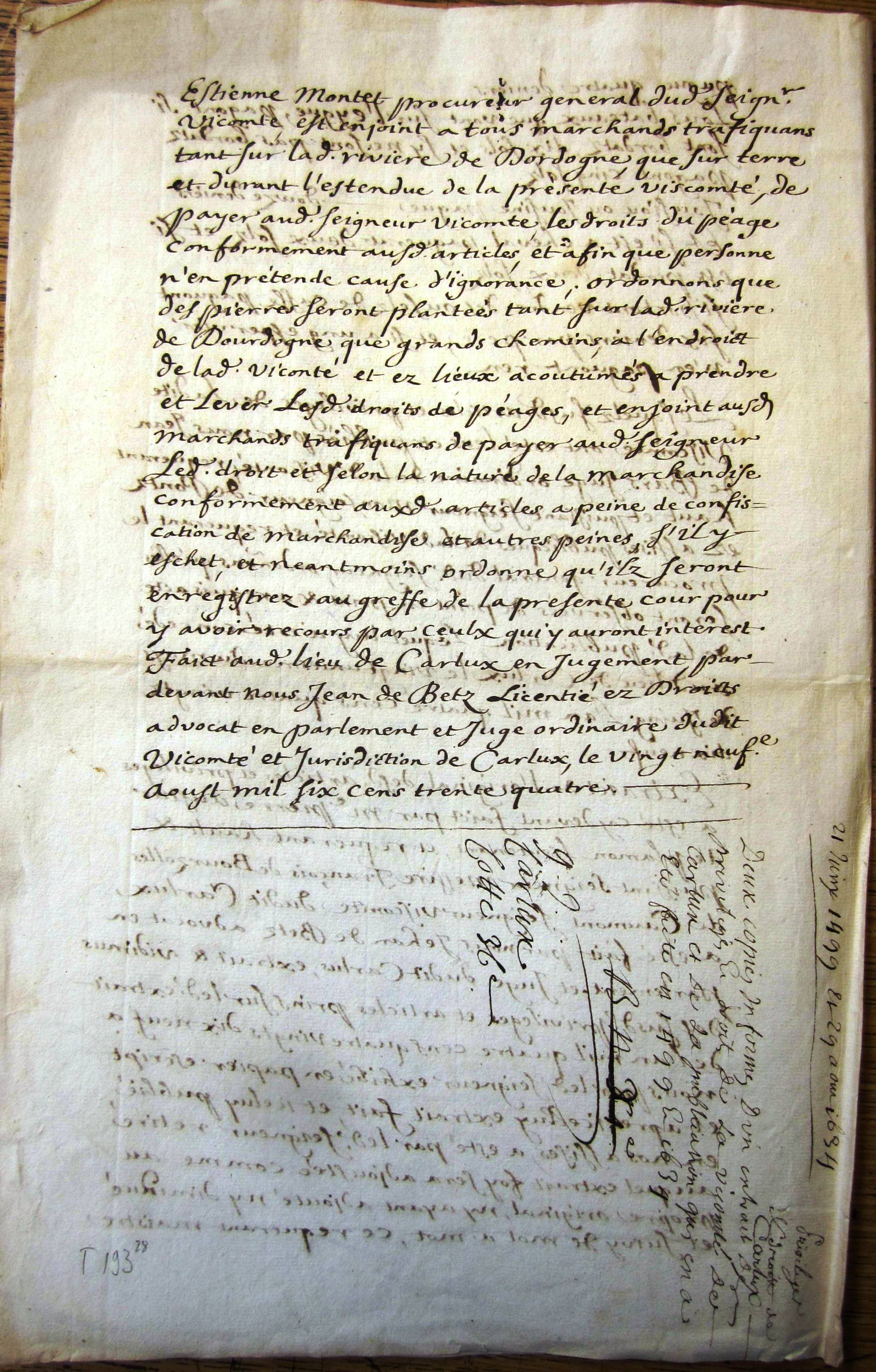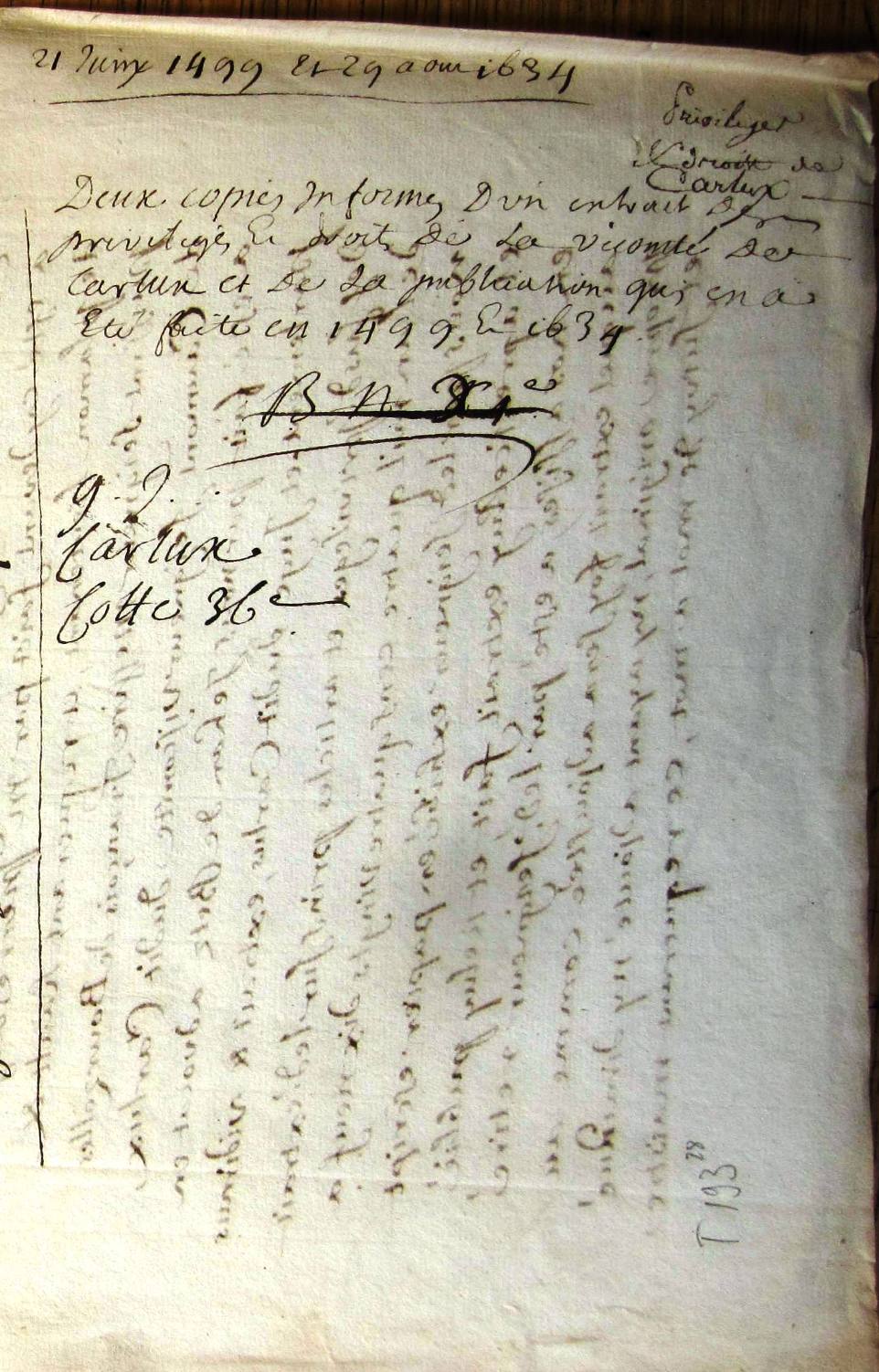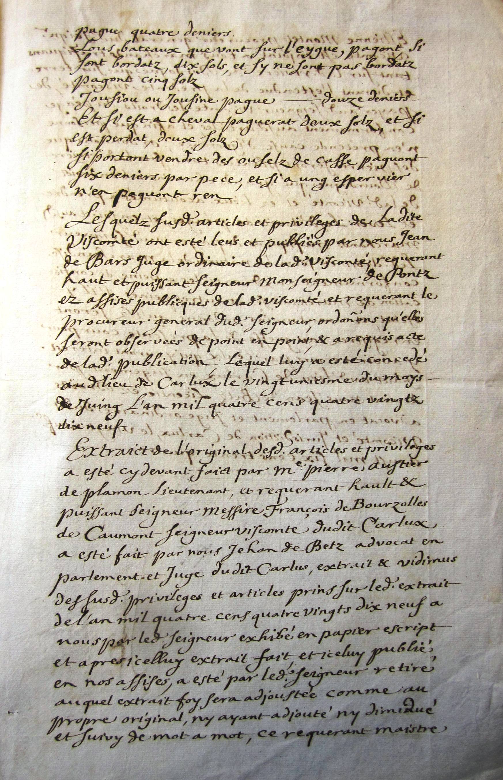 Extraits des privilèges et droits de Carlux (1499 & 1634) .