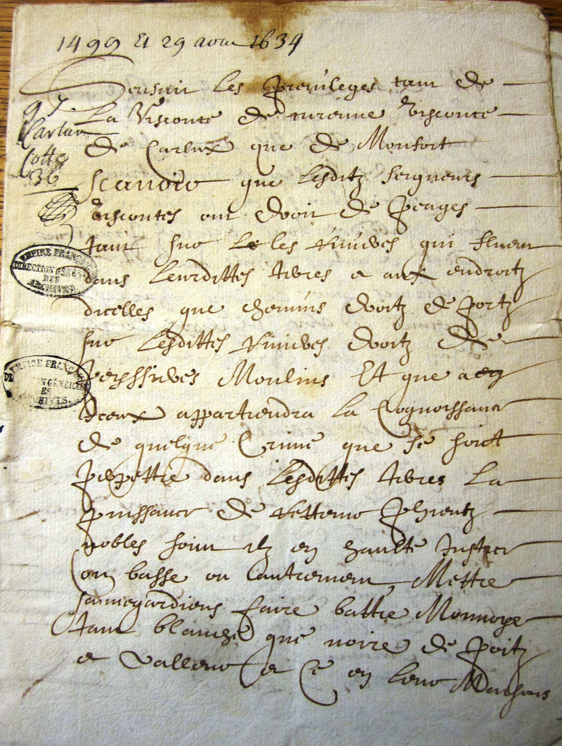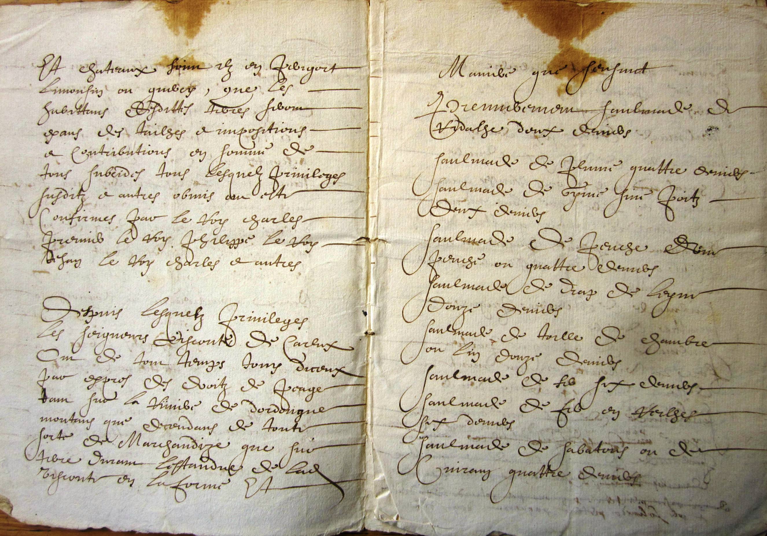 Extraits des privilèges et droits de Carlux (1499 & 1634).