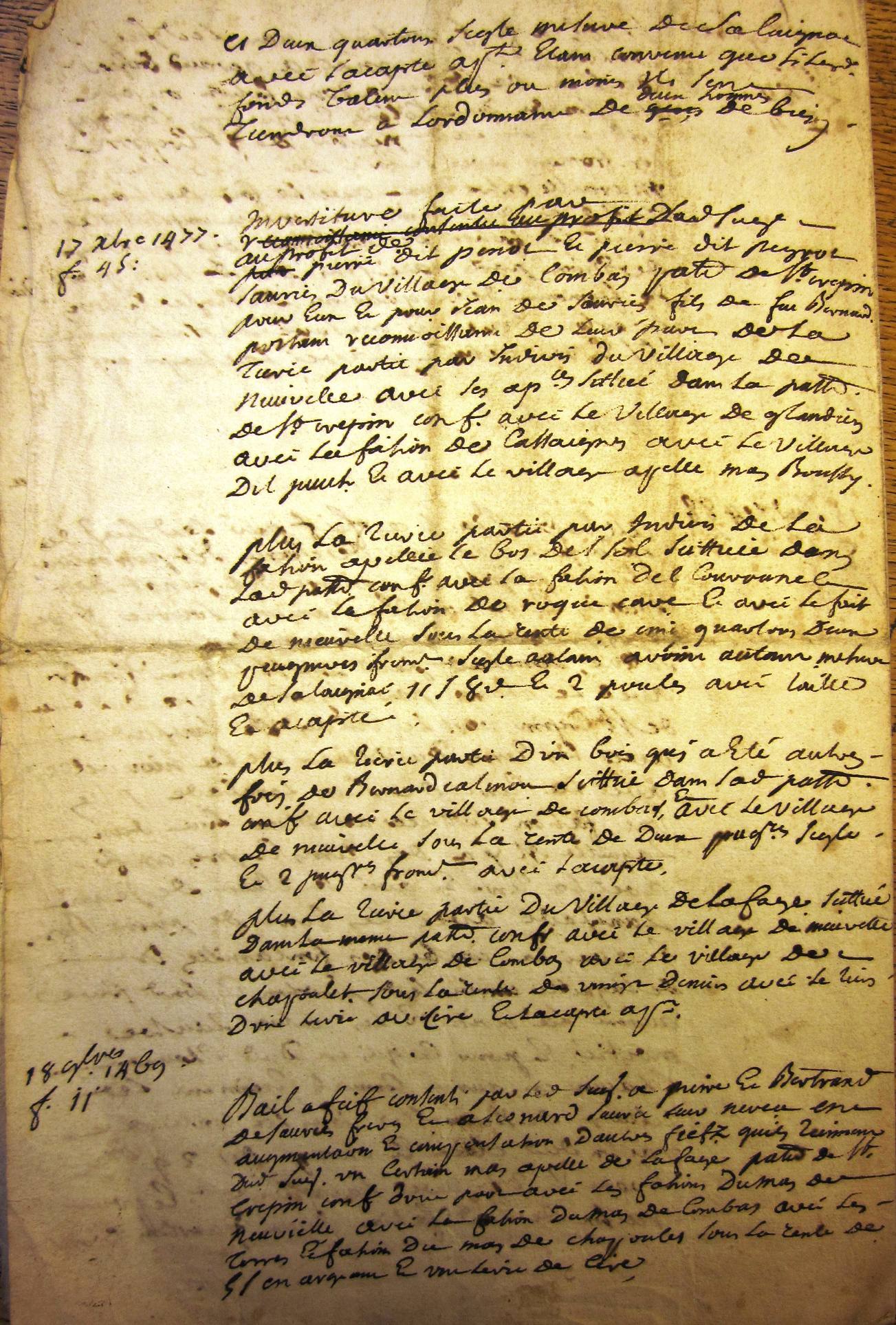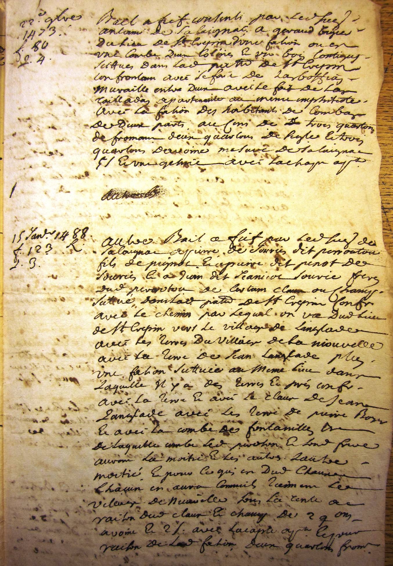 Extraits d'actes divers (baux, reconnaissances, etc.) (15ème siècle) (2ème partie).