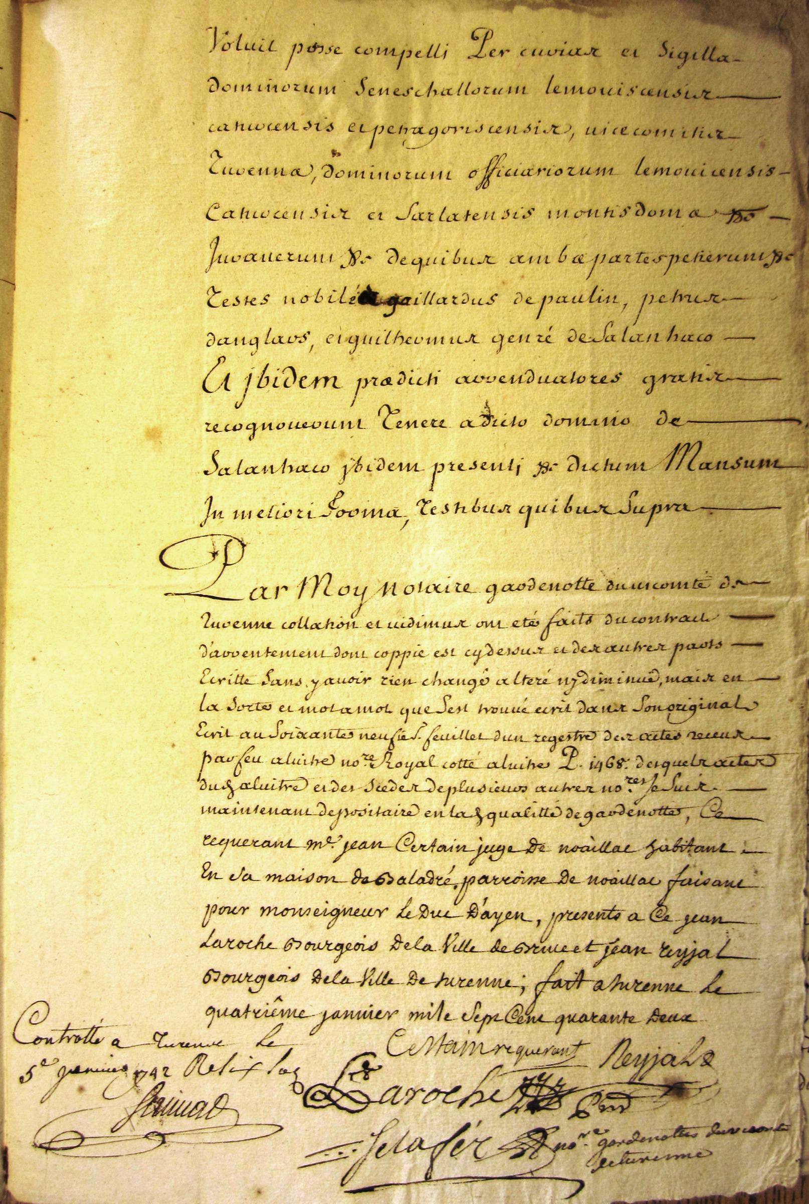 Arrentement fait par Antoine de Salaignac (1450) (transcription 18ème).