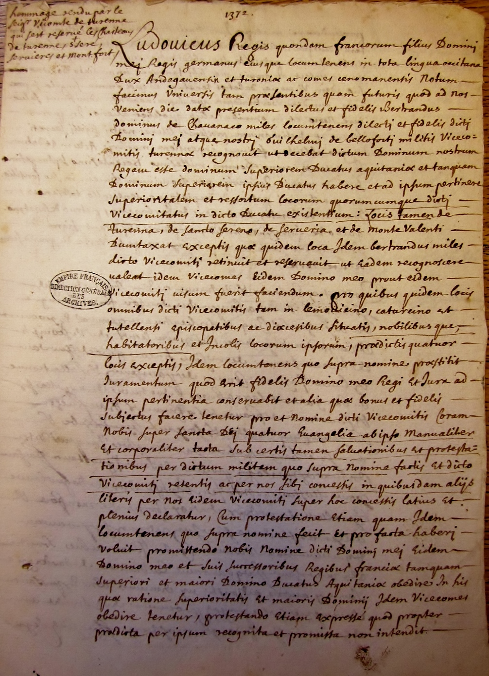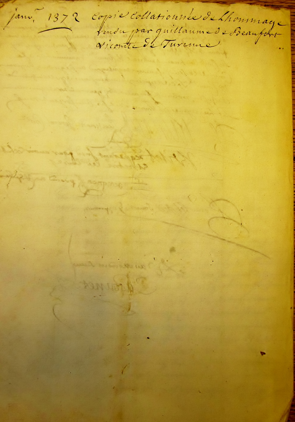 Hommage rendu par Guillaume de Beaufort vicomte de Turenne (janvier 1372).