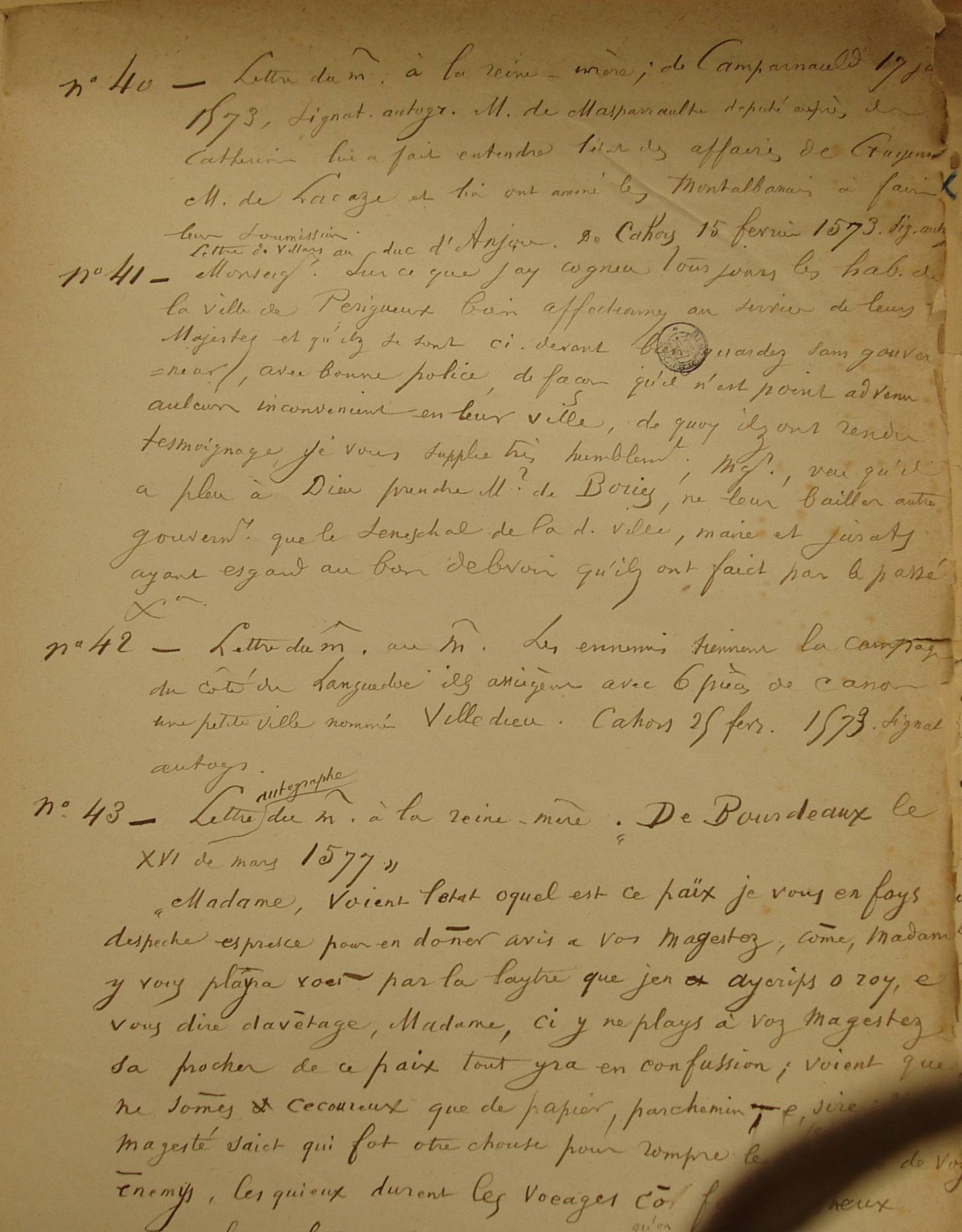 Lettres n°s 40, 41, 42 et 43