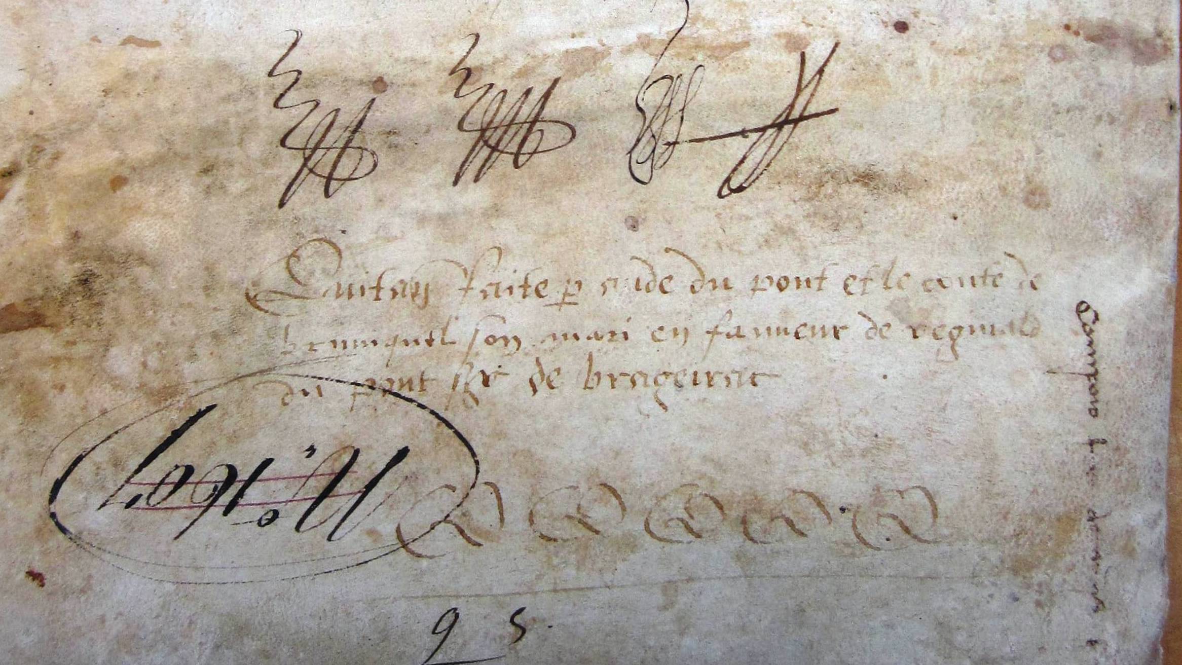 Aude, fille de Regnaud de Pons, et Guillaume, vicomte de Bruniquel, son mari, donnent quittance à autre Regnaud de Pons de tous droits successifs sur l'héritage de leurs parents (1304) .