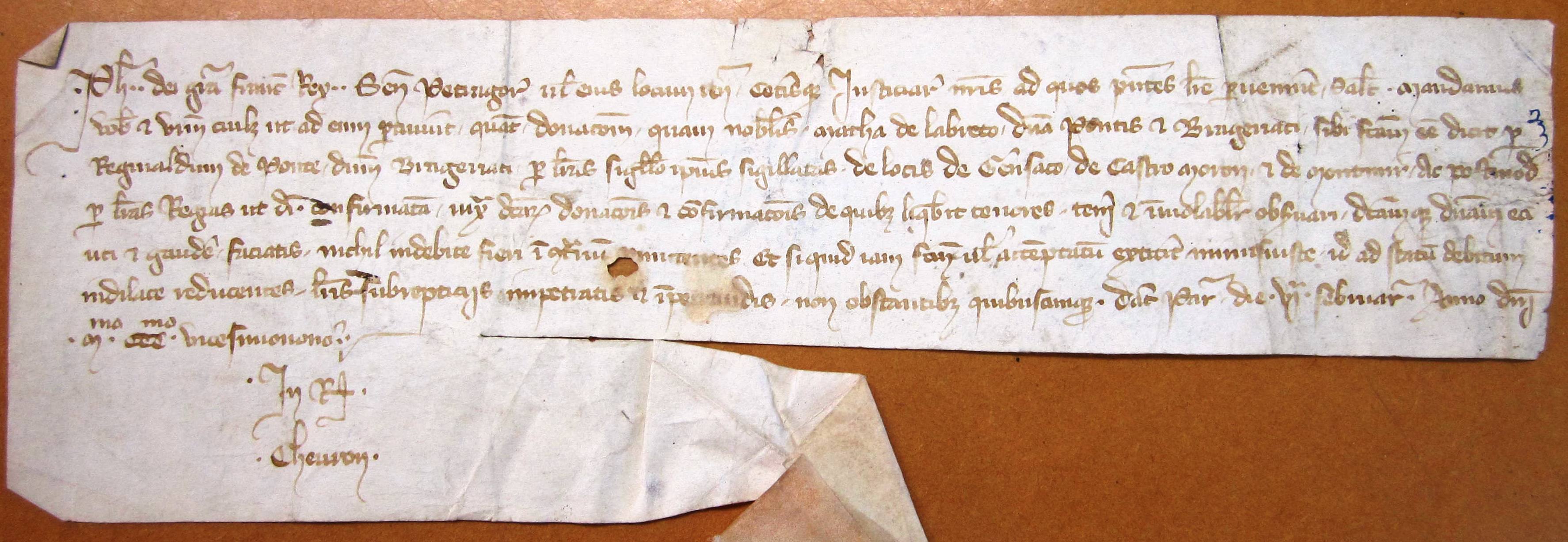 Confirmation par Philippe de Valois de la jouissance accordée à Mathe d'Albret des lieux de Gensac, Castelmoron etc. (1329 v. st.)