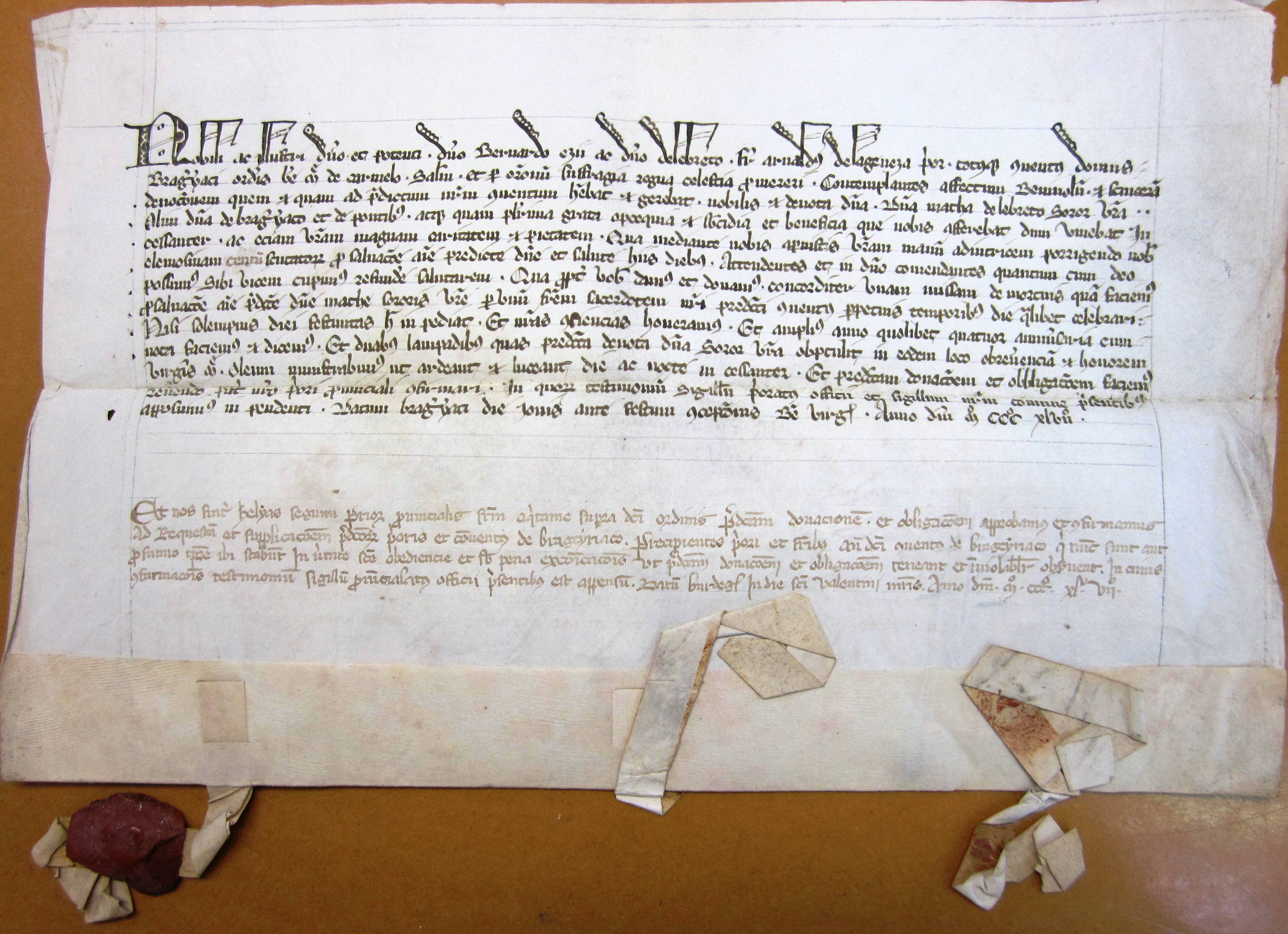 Arnaud de Lageneze, prieur des Carmes de Bergerac, s'engage vis-à-vis de Bernard-Ezi II, sire d'Albret, à prier pour l'âme de Mathe d'Albret, sa sœur; cette promesse est ratifiée par Hélie Séguin, provincial de l'Ordre en Aquitaine(1347).
