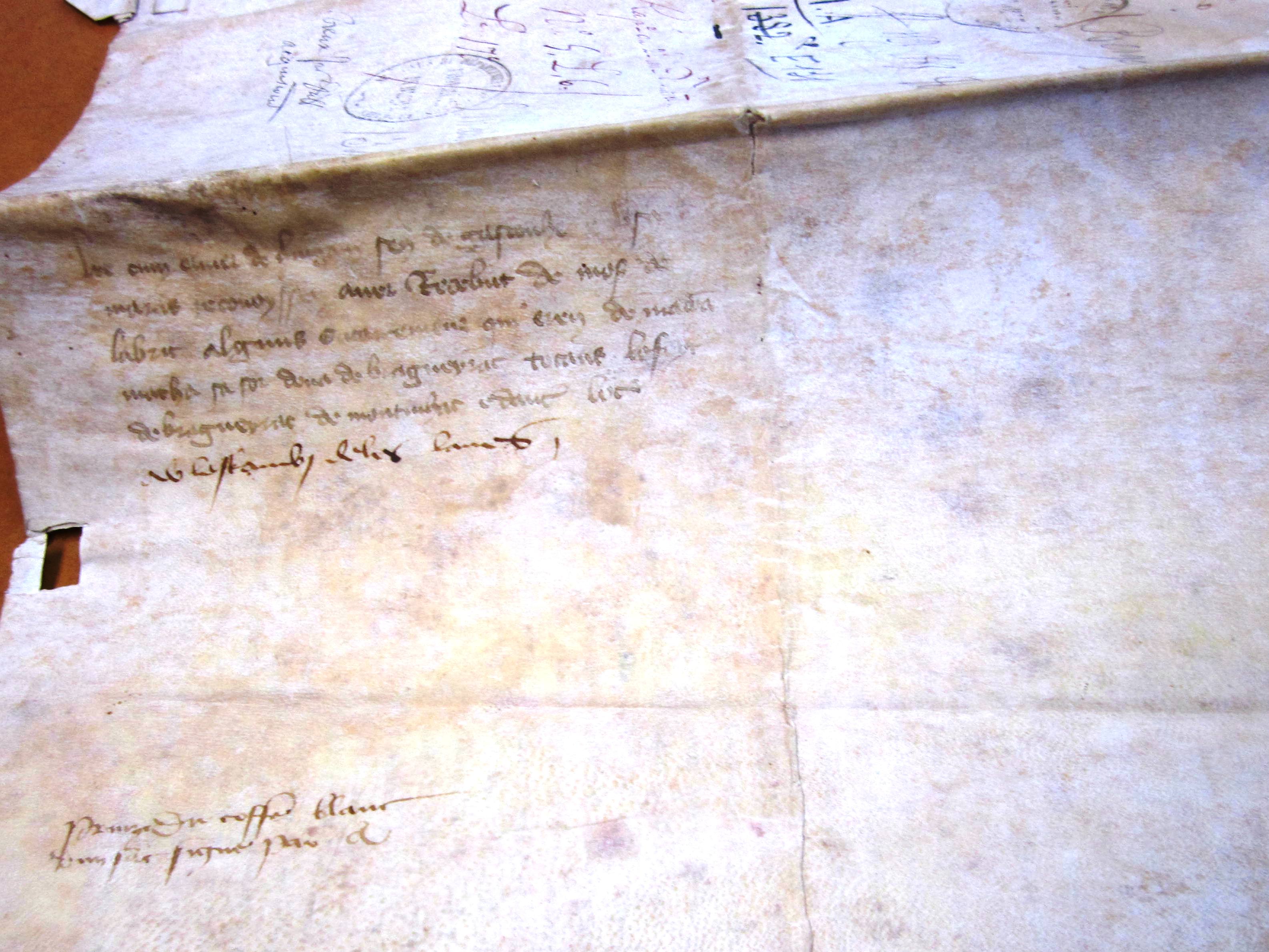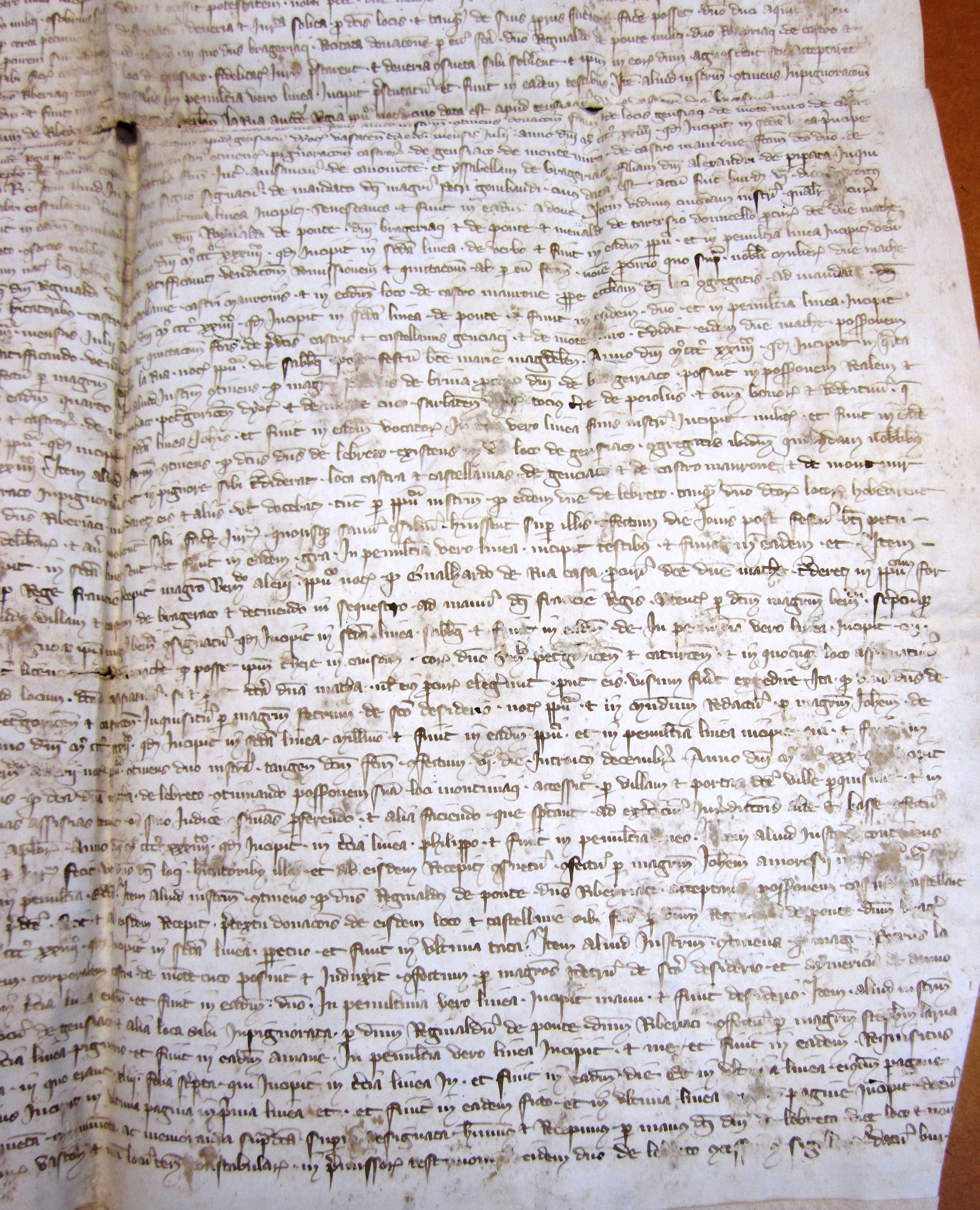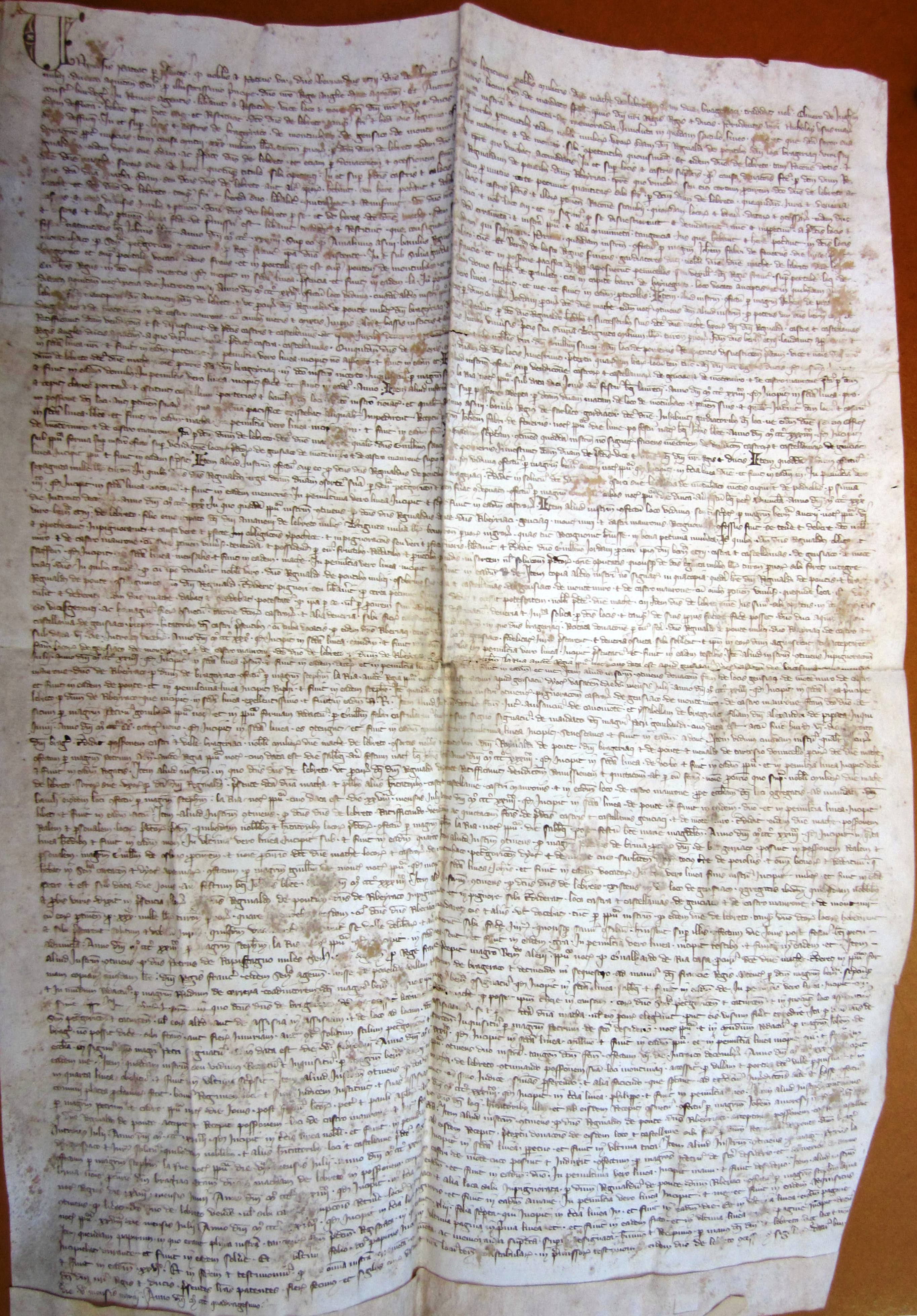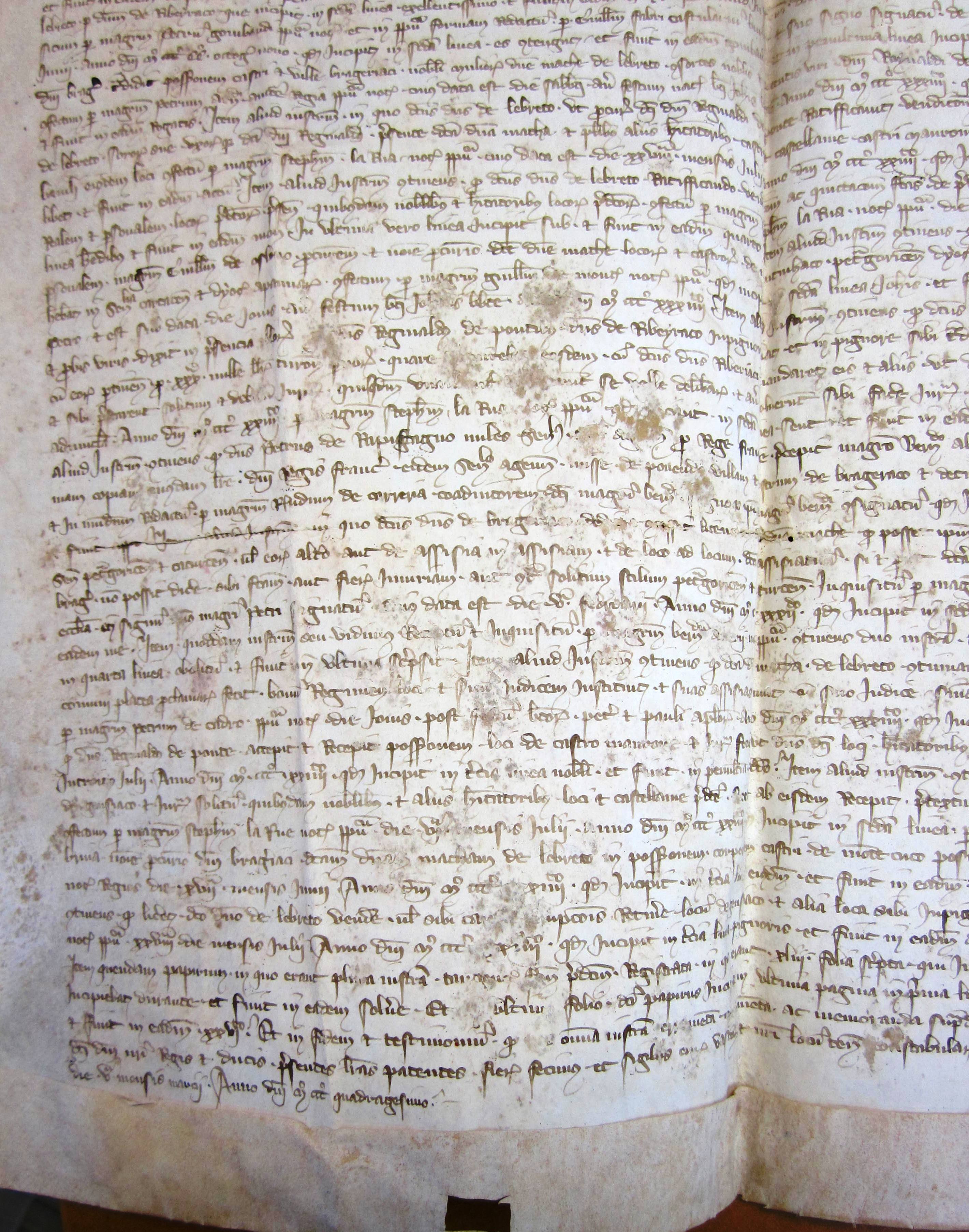 Olivier de Ingham, sénéchal d'Aquitaine, et Antoine de Ususmaris, lieutenant du connétable de Bordeaux, reconnaissent avoir reçu de Bernard-Ezi II, sire d'Albret, diverses chartes relatives à la seigneurie de Bergerac (1340).