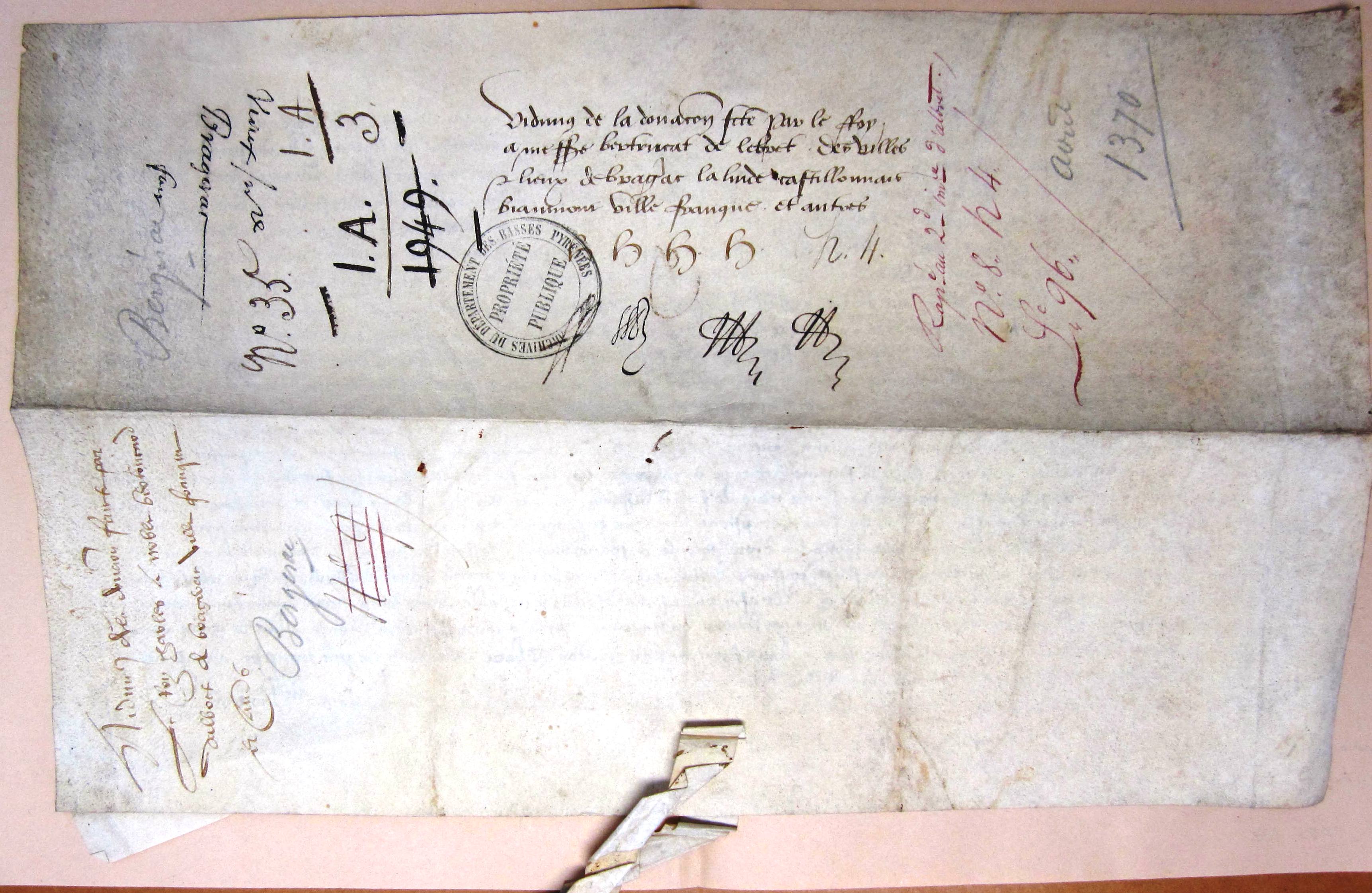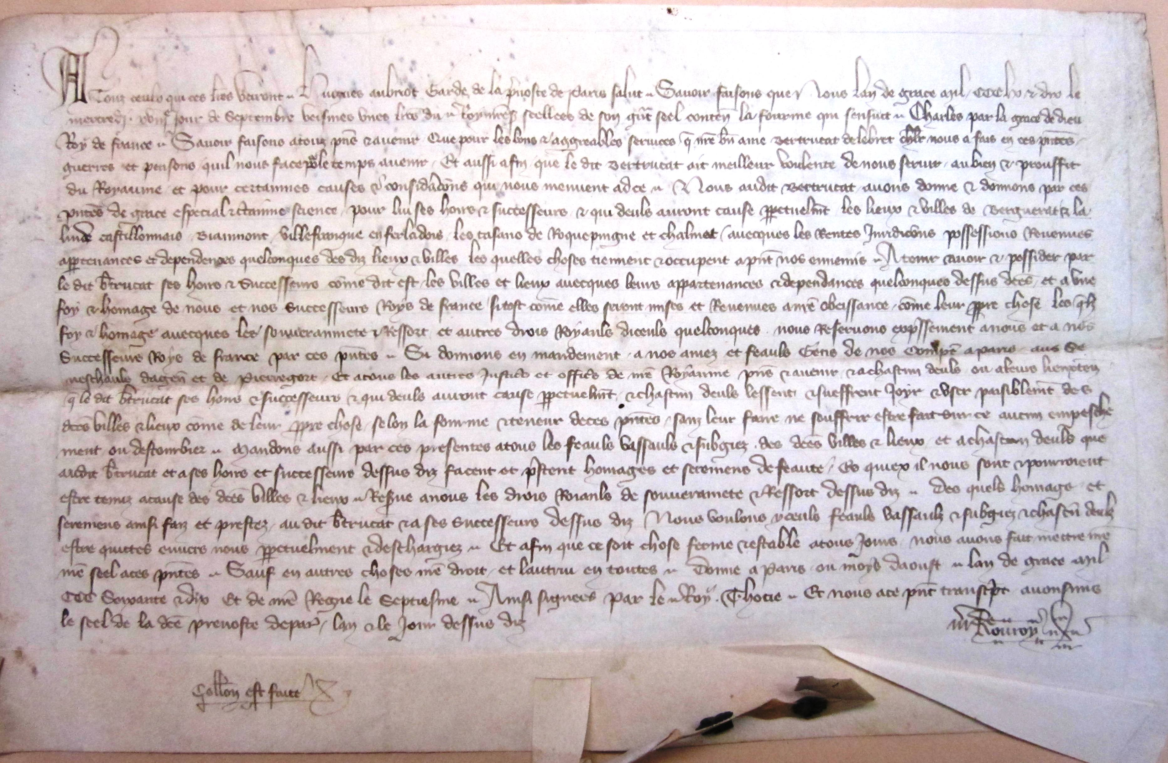 Charles V donne à Bertrucat d'Albret les seigneuries de Bergerac, La Linde, Castillonnès, Beaumont, Villefranque, etc.(1370).