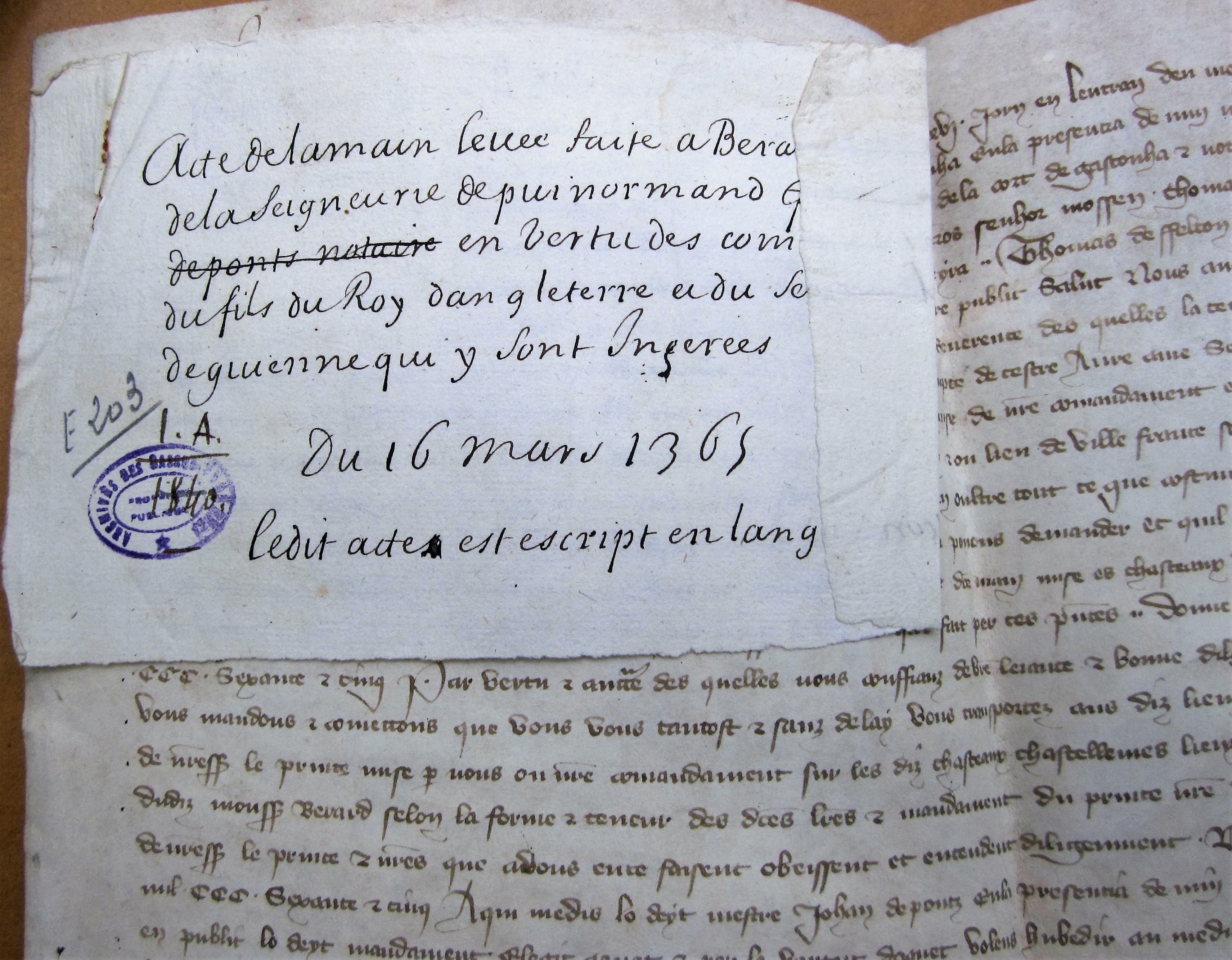 Main levée du roi d'Angleterre sur Puynormand et Cubzac (16 mars 1365 (v.st.))