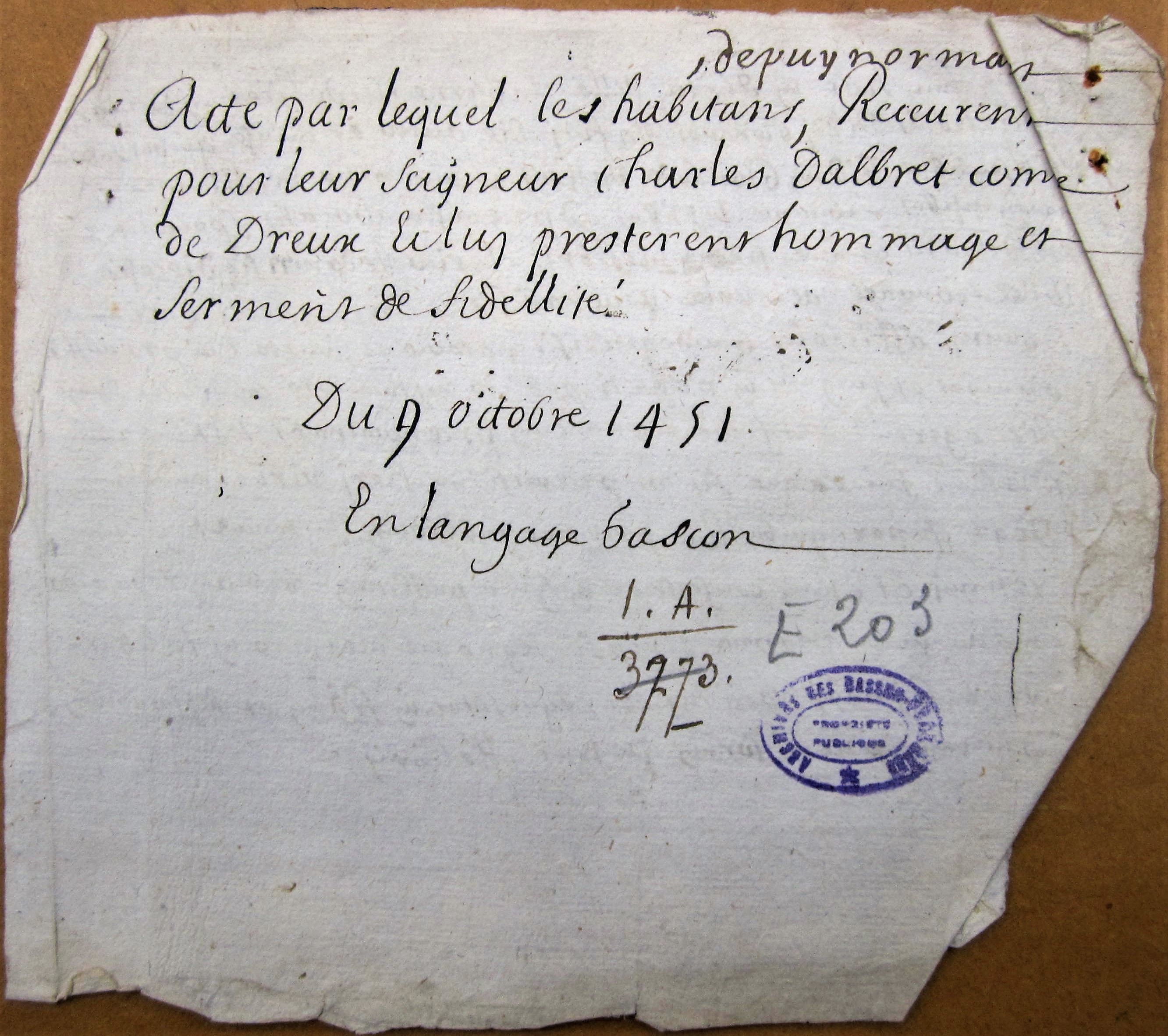 Charles II, sire d'Albret, prend possession de la seigneurie de Puynormand