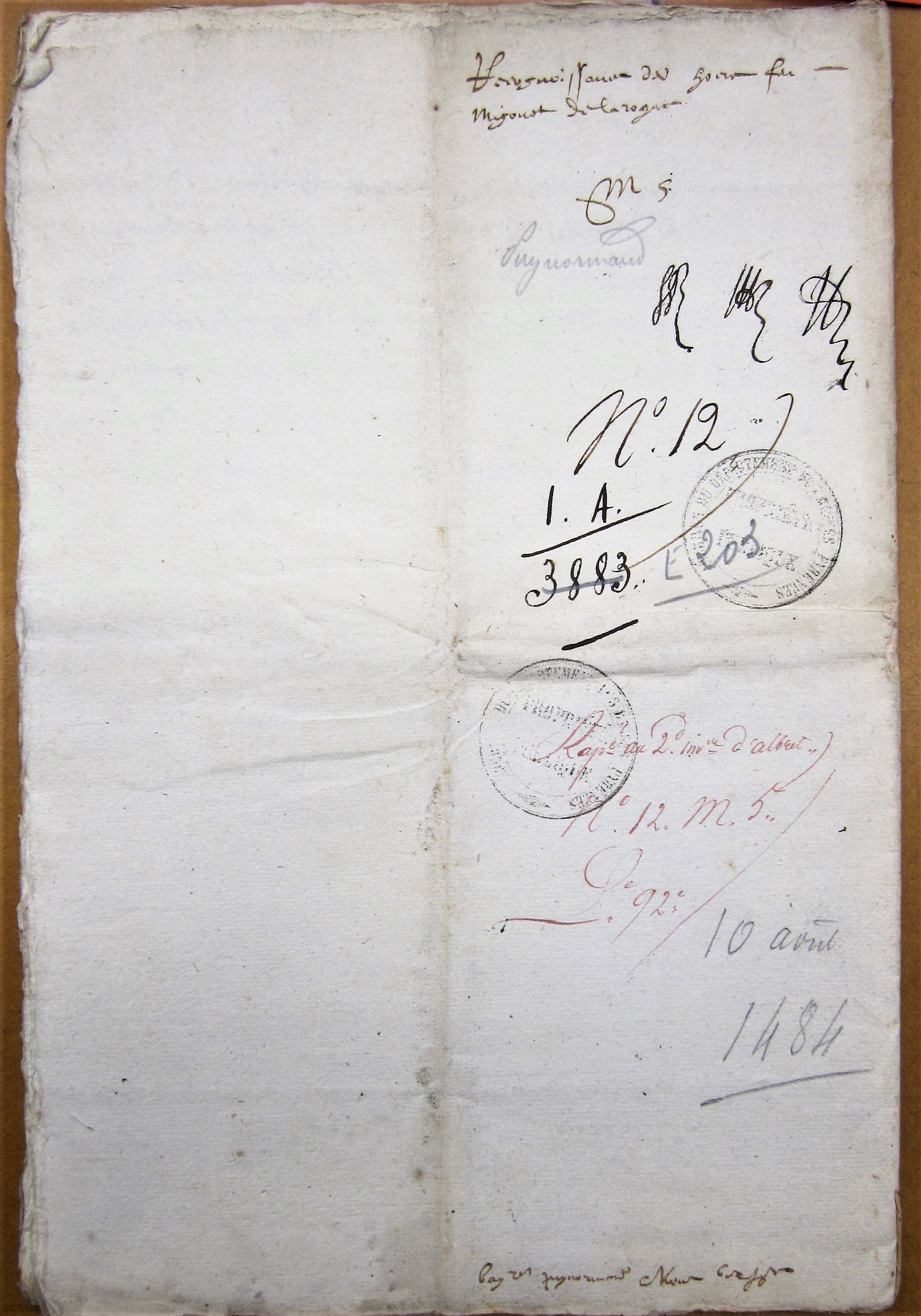 Reconnaissance faite par les les héritiers de feu Migonnet de La Roque, paroisse de Puisseguin, seigneurie de Puynormand (10 aout 1484)