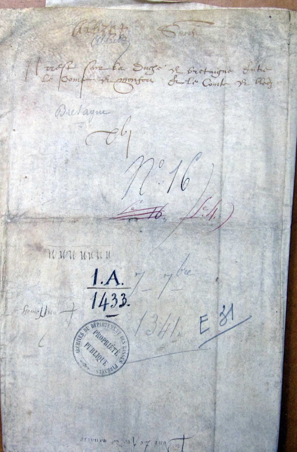 Jean de Bretagne, dit Jean de Montfort, devant le Parlement du roi (Conflans, 7 sept. 1341) (copie n° 1).