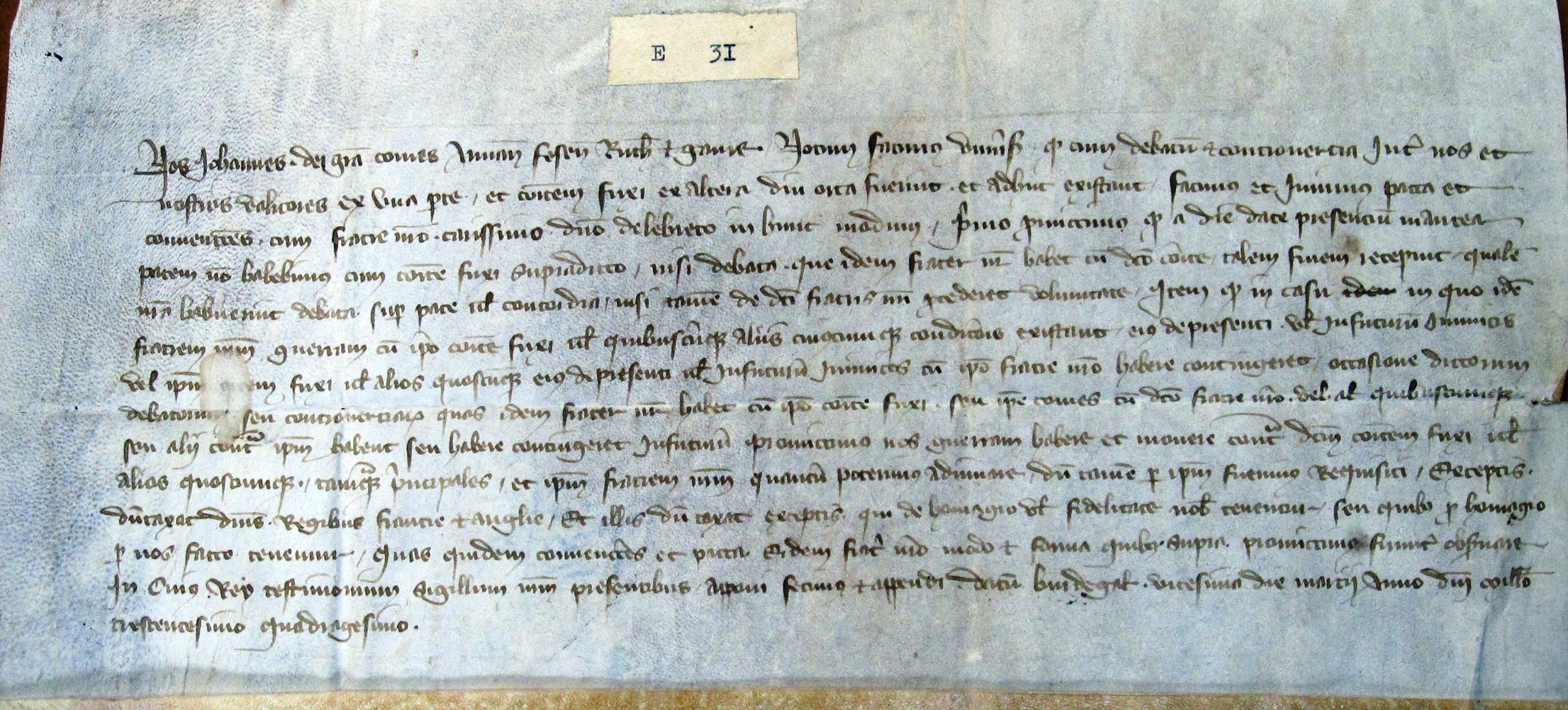 Nos, Johannes Dei gratia comes Armaniacensis, Fesensis,