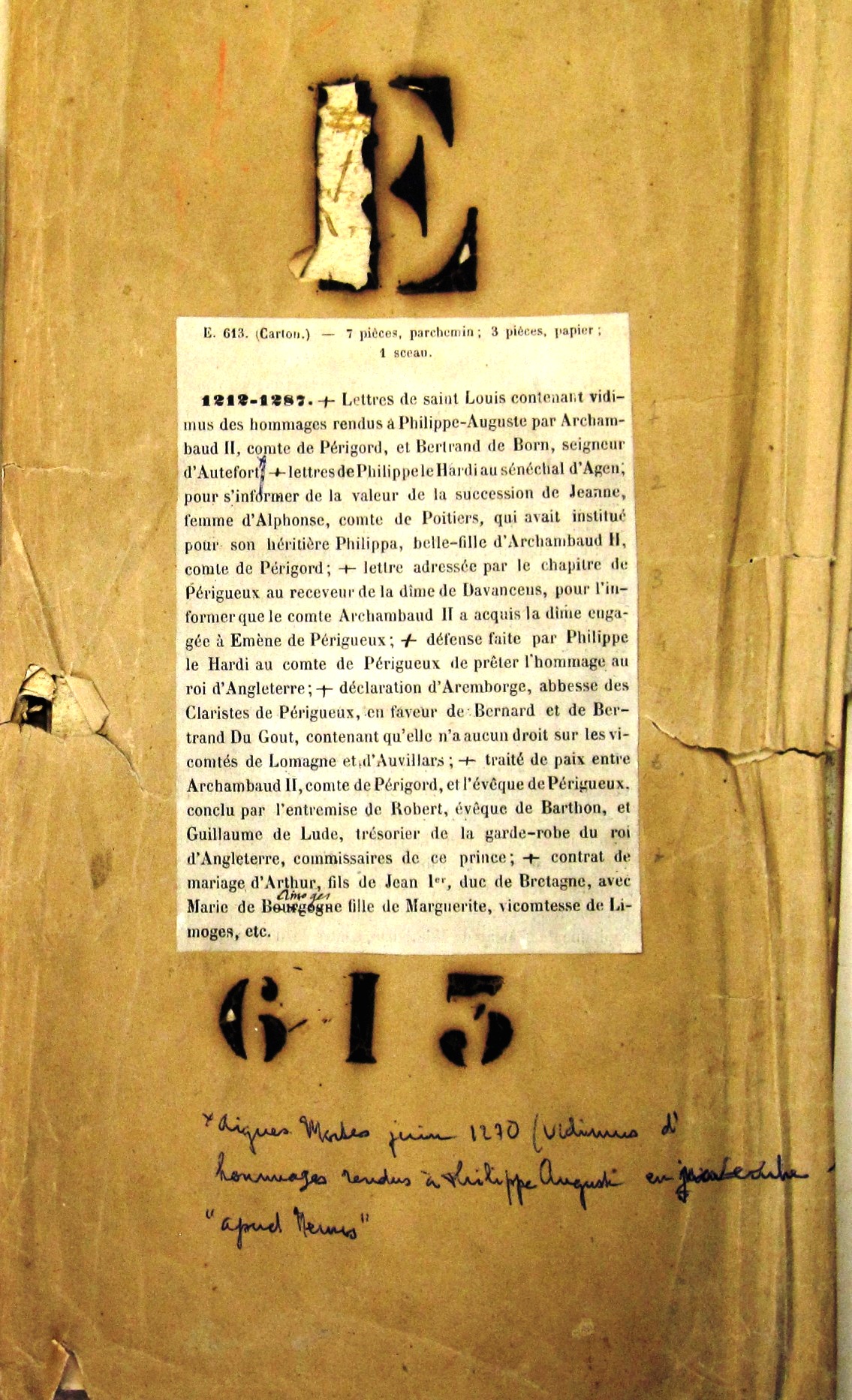 - Lettres de Louis IX / (saint Louis) contenant vidimus des hommages rendus à Philippe-Auguste par Archambaud II (III), comte de Périgord, et Bertrand de Born, seigneur d'Hautefort (1270)